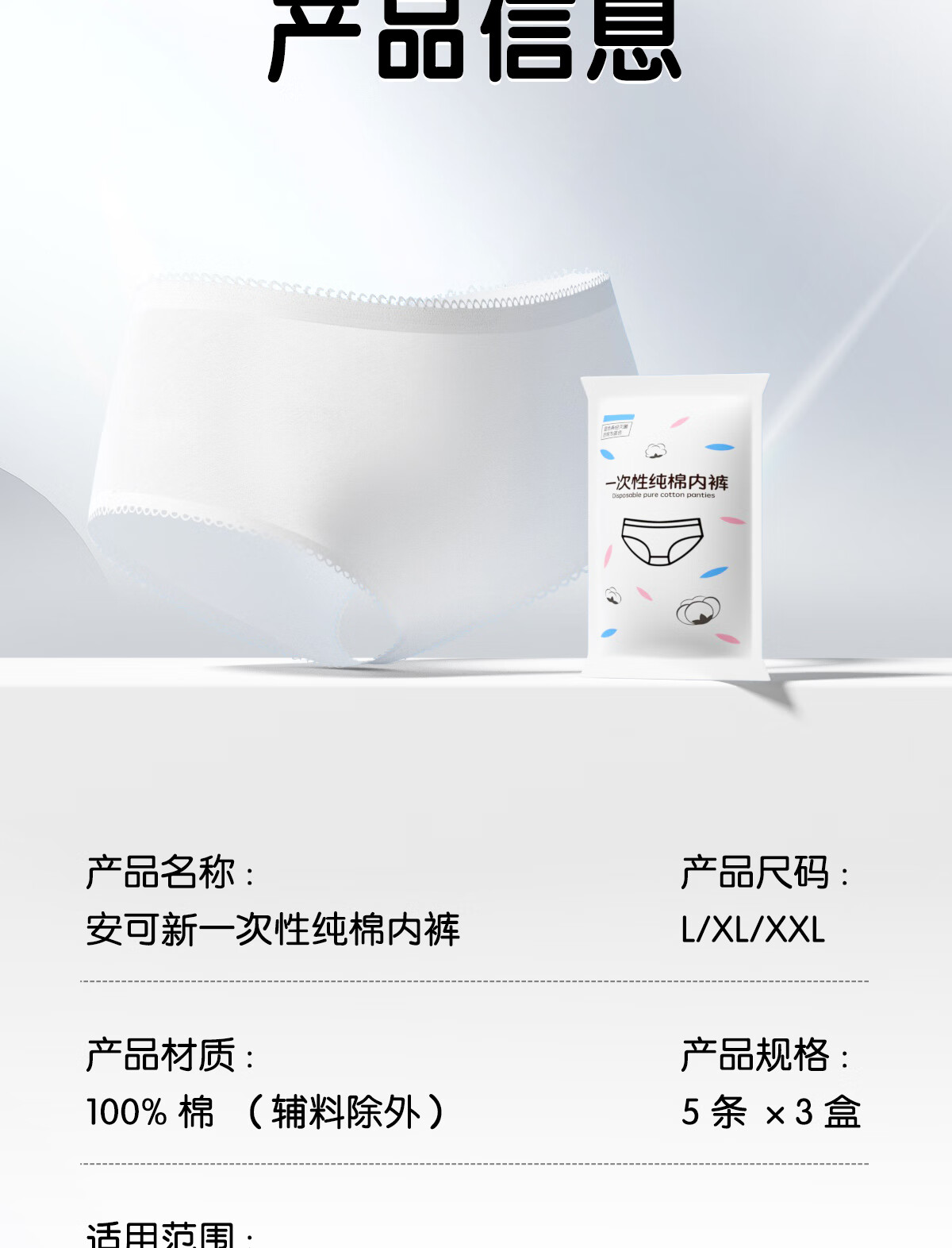 安可新纯棉一次性内裤女全棉免洗15条独立装孕产妇生理期旅行出差XXL码