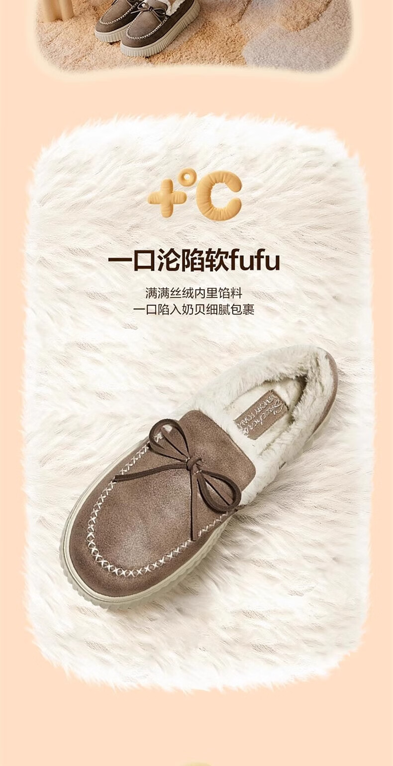 朴西加绒保暖可拆卸博肯棉拖鞋女冬室内居家防滑静音不掉毛情侣棉拖男 博肯棕 【防水防滑】 36-37 适合(35-36)