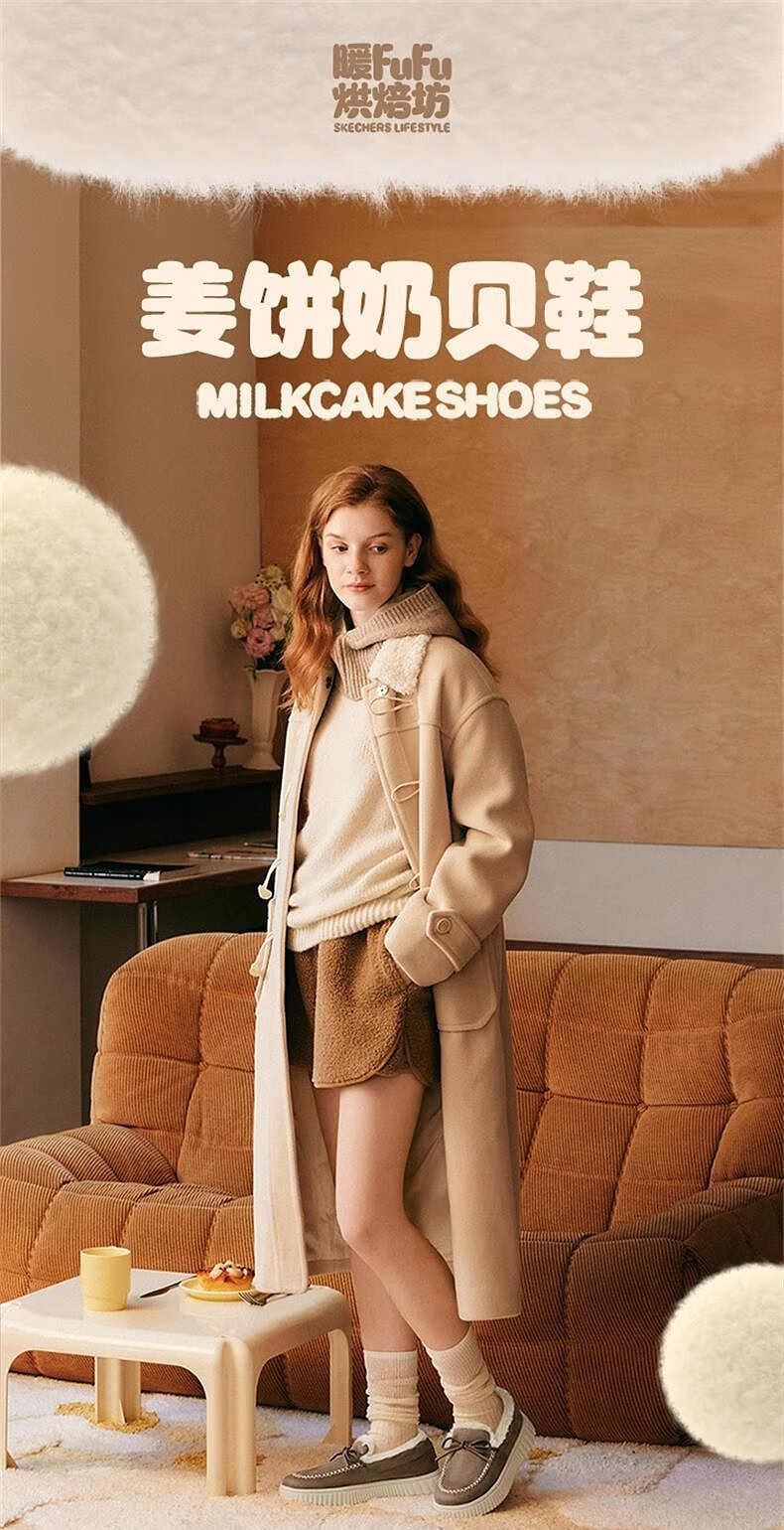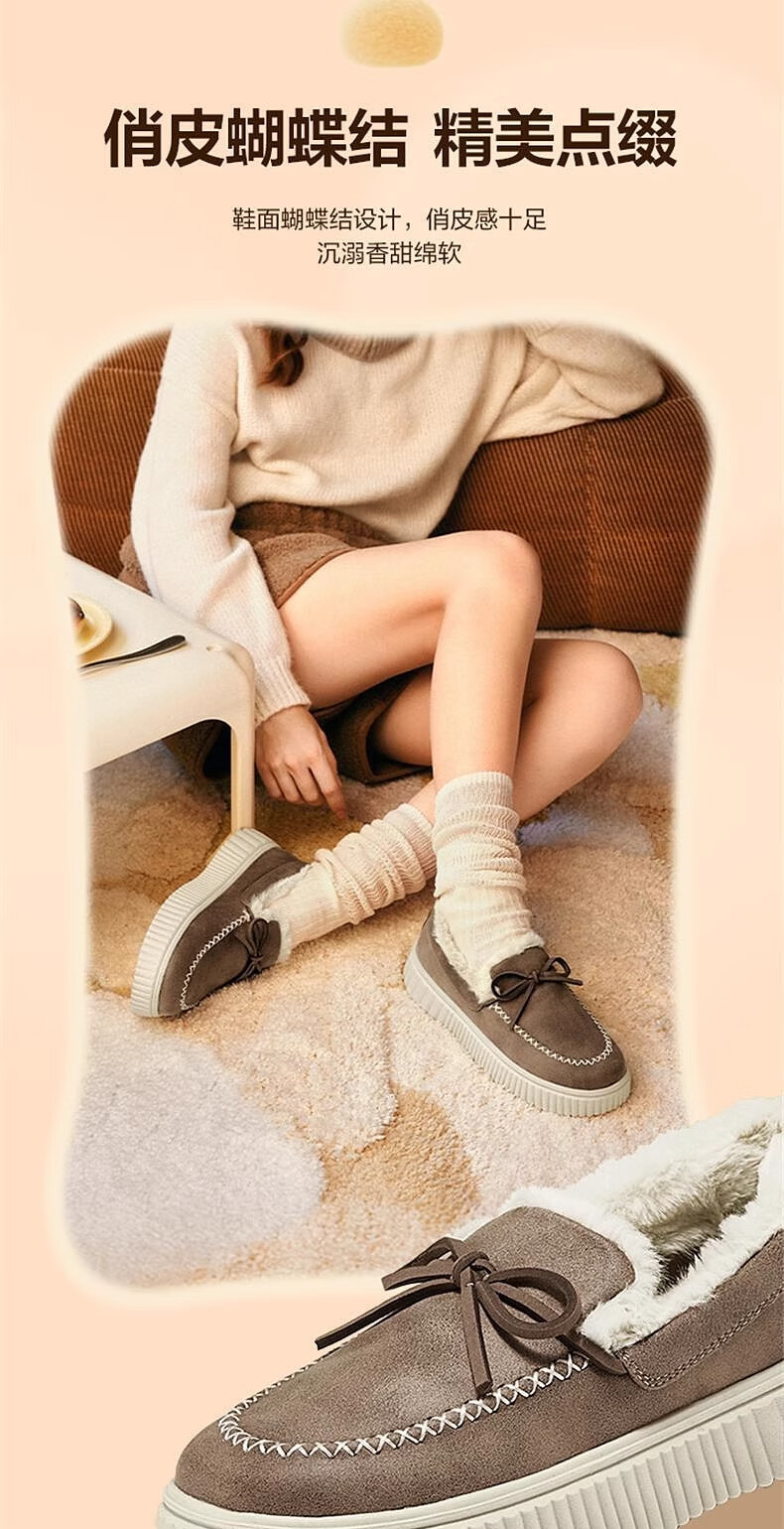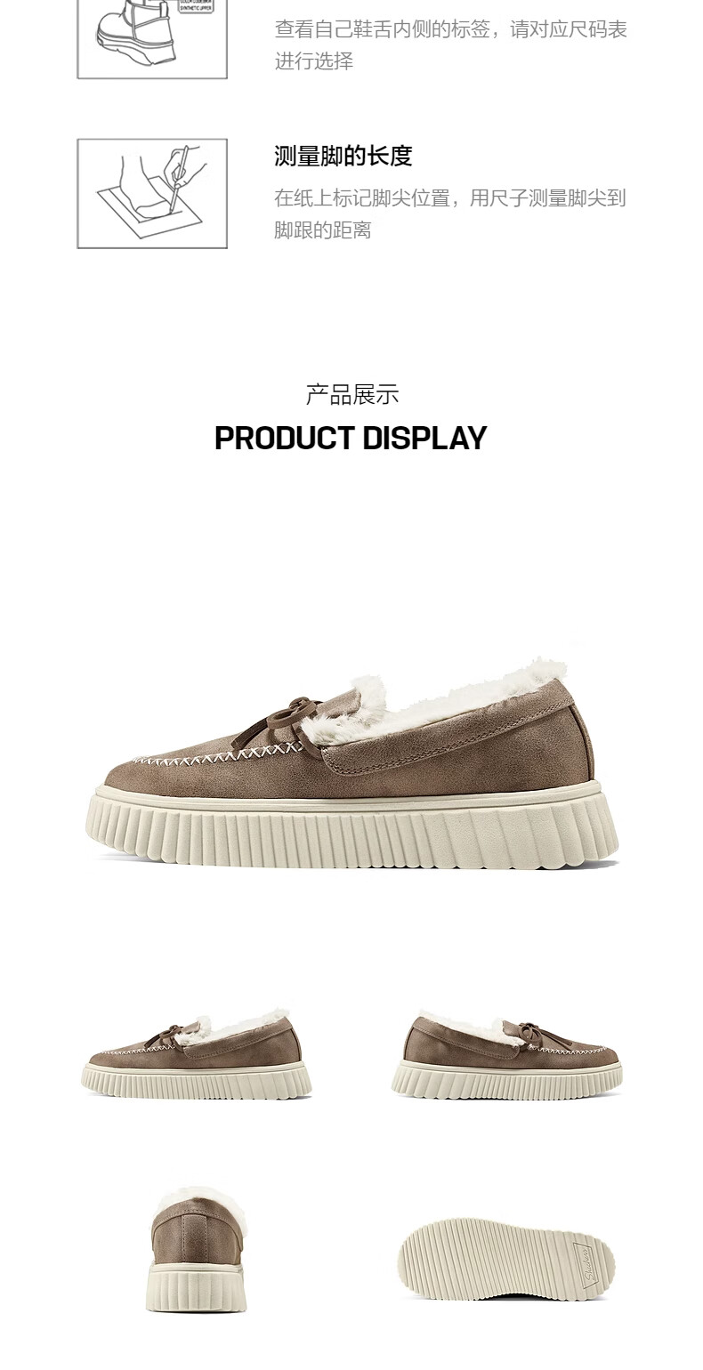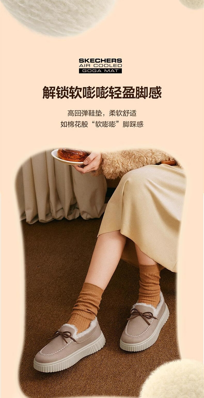 斯凯奇(Skechers)女鞋加绒乐福鞋保暖厚底一脚蹬软底不累脚休闲鞋蝴蝶结单鞋169030