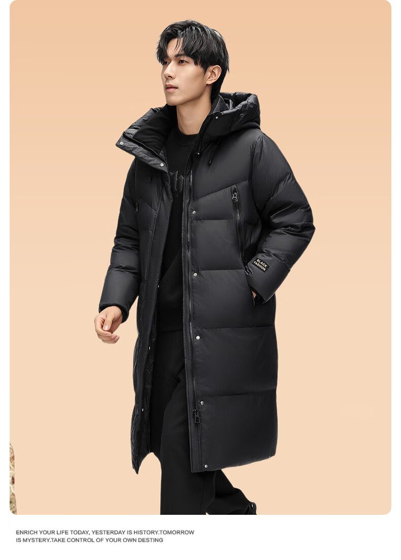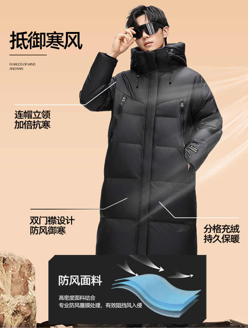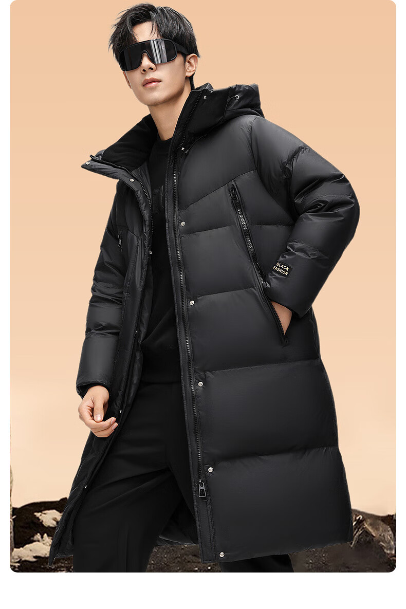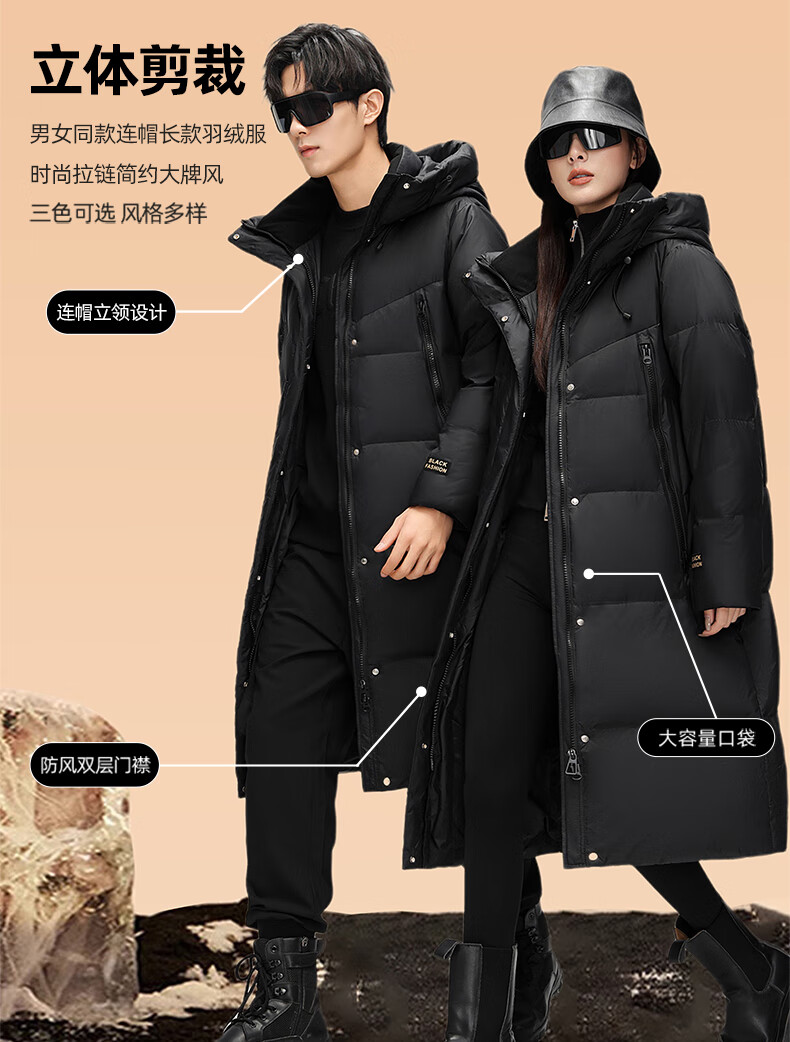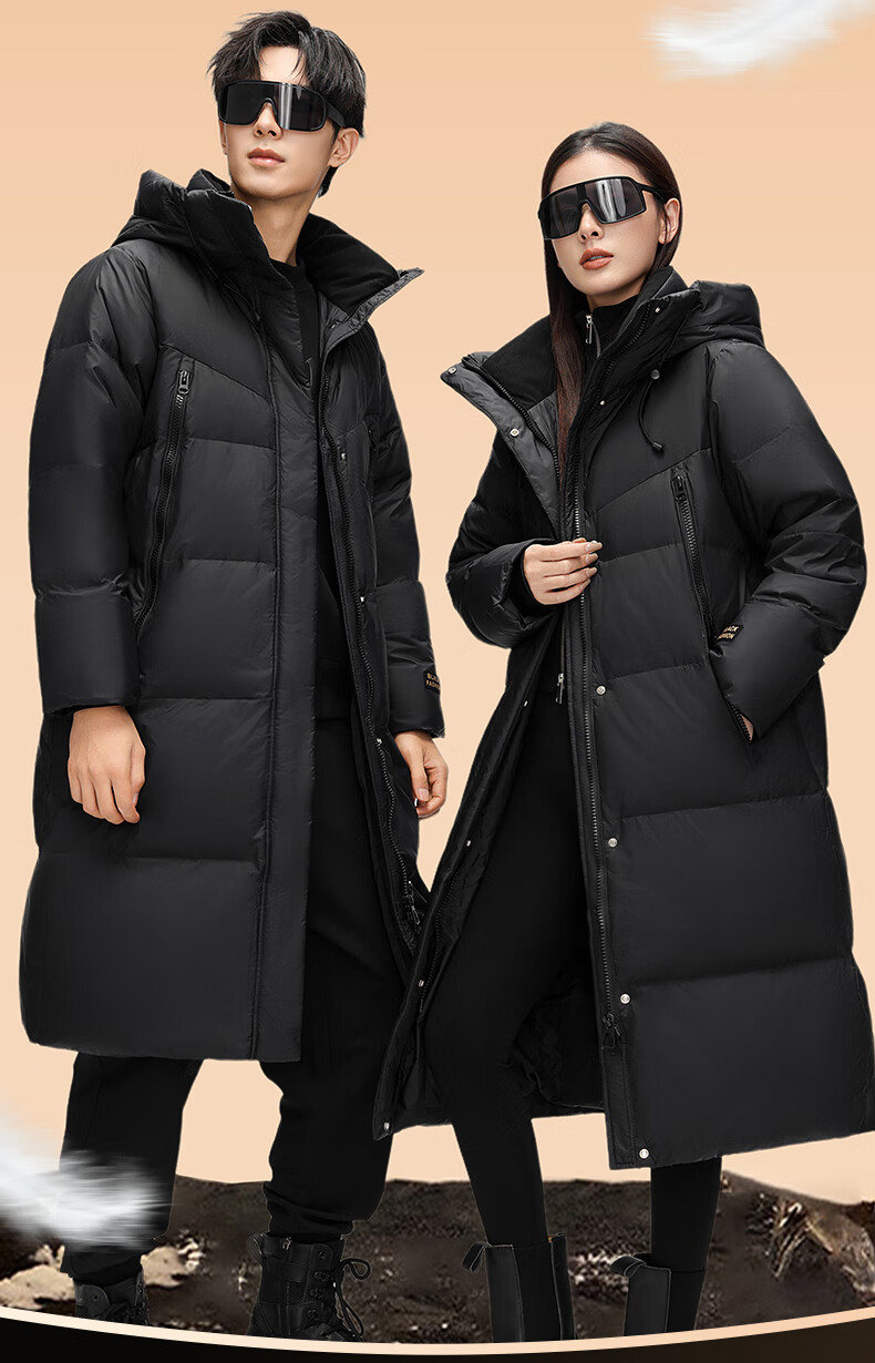鸭鸭(YAYA)羽绒服男女同款2024冬季新品长款过膝高克重极寒保暖加厚鸭绒外套 黑色 L (175) 【适合130-145斤】