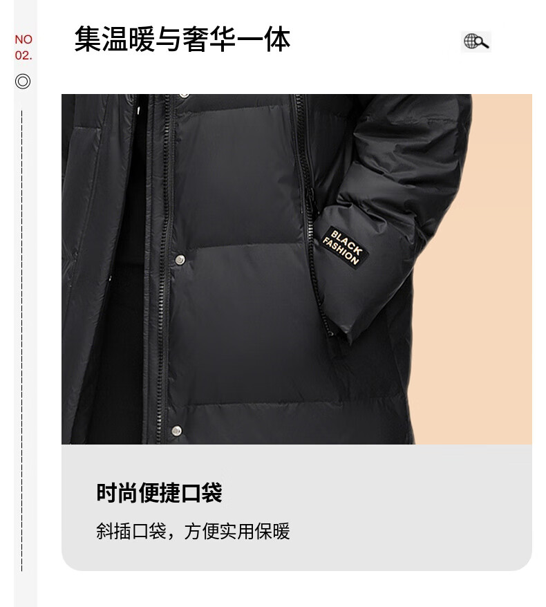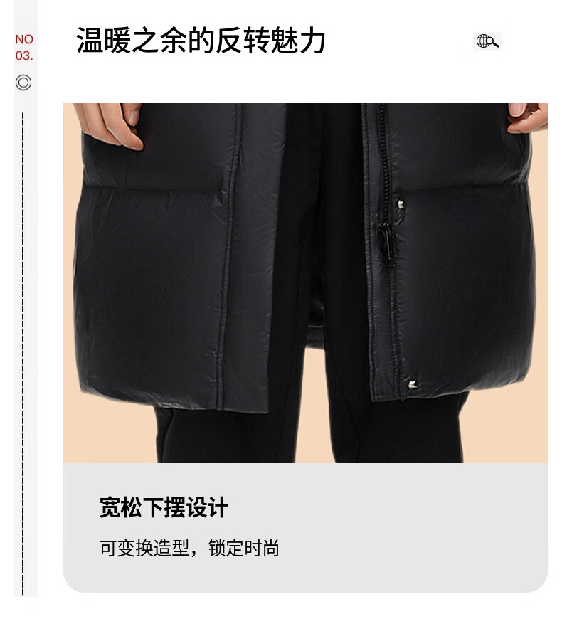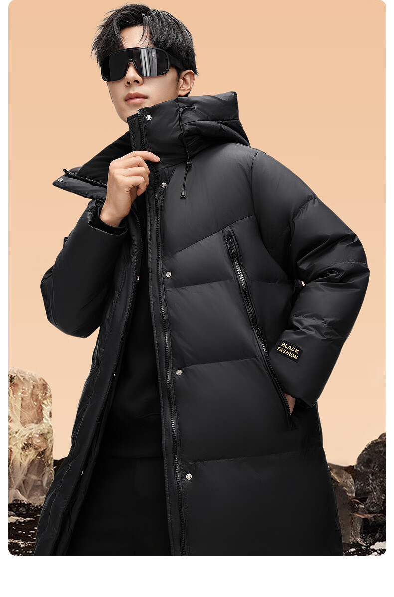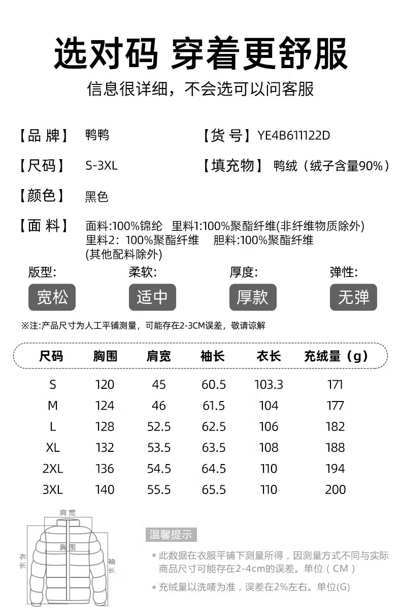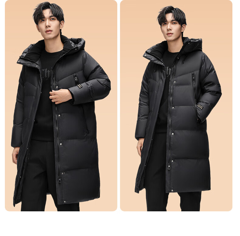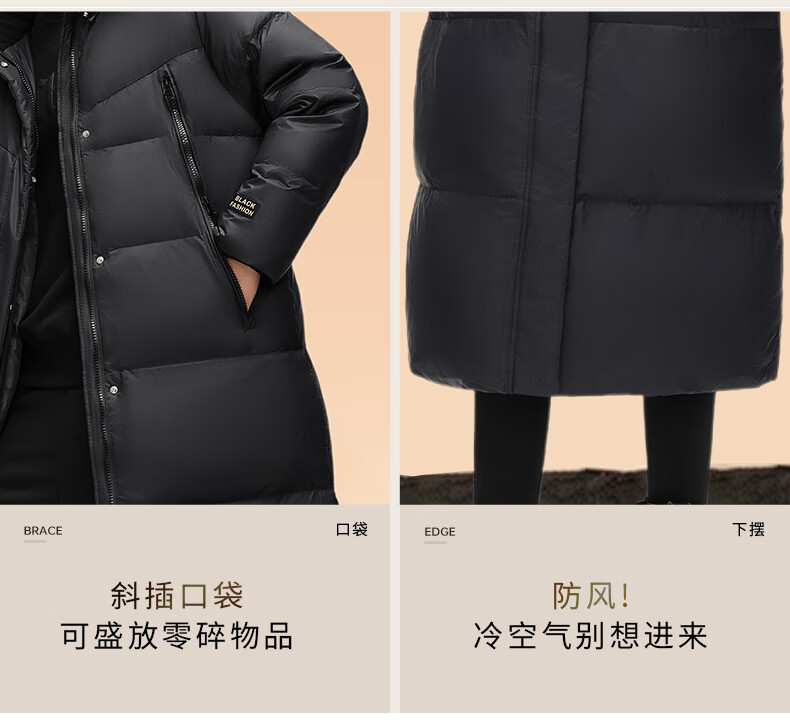 鸭鸭(YAYA)羽绒服男女同款2024冬季新品长款过膝高克重极寒保暖加厚鸭绒外套 黑色 L (175) 【适合130-145斤】