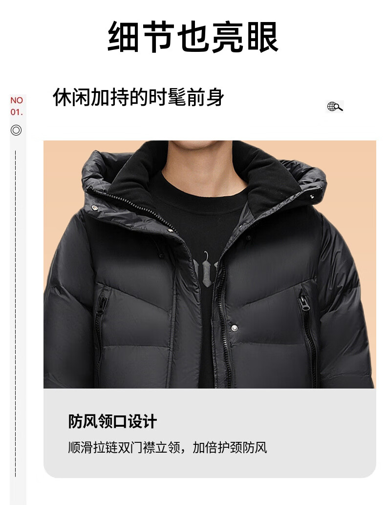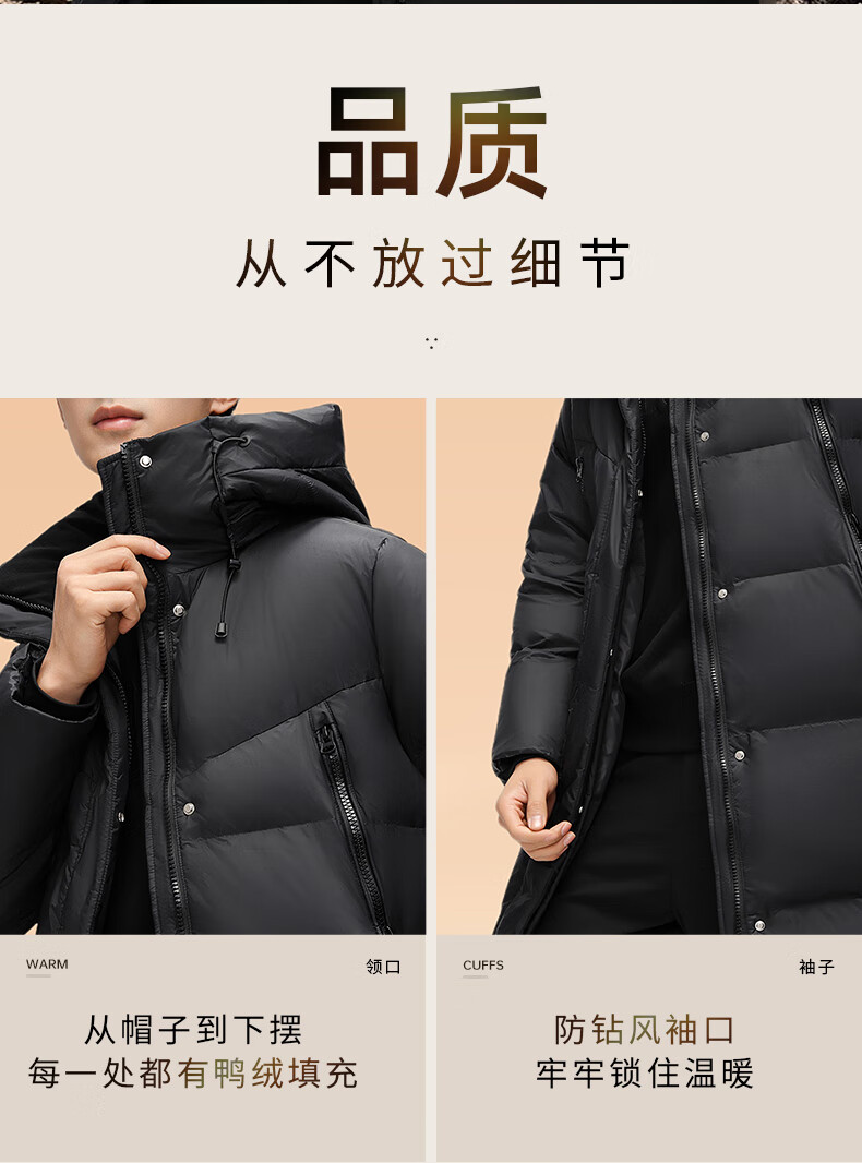 海澜之家(HLA)羽绒服男25新款运动SPORTSDAY抗静电外套男冬季 黑色3C L 175/92A 推荐140-160斤