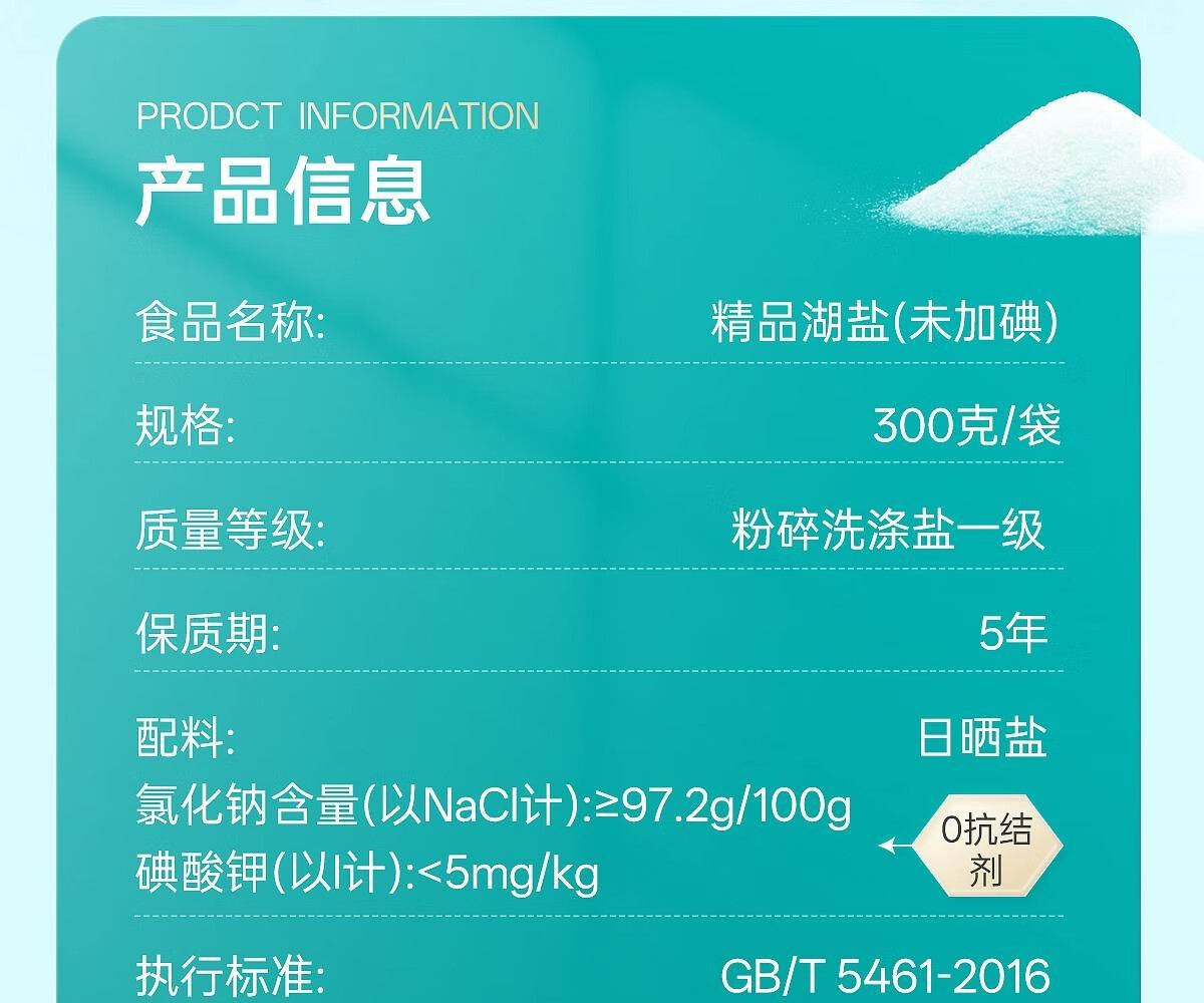 中湖盐【家用囤货】精品湖盐天然湖盐无抗结剂家用炒菜盐300g 精品湖盐300g*10袋(加碘)
