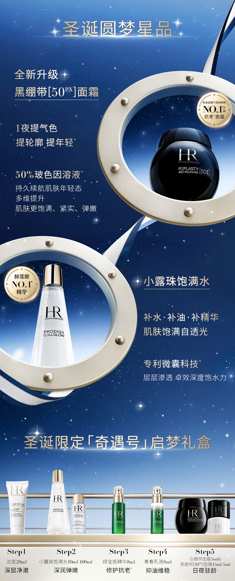 赫莲娜HR圣诞奇遇号黑绷带小露珠启梦款倒计时限定礼盒护肤品套装化妆品