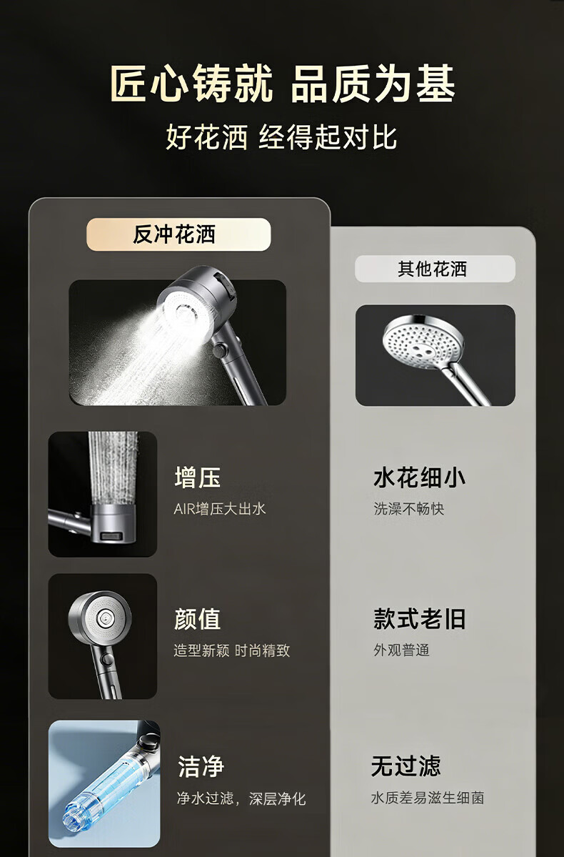 【甄选百货】通用淋浴花洒喷头增压大出水淋雨套装家用洗澡手持花 增压花洒【十年质保】 无规格