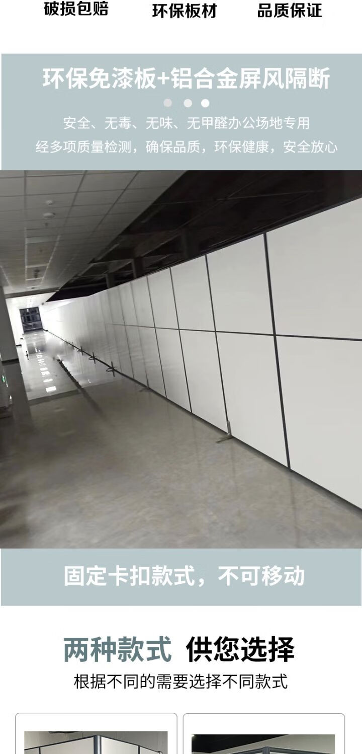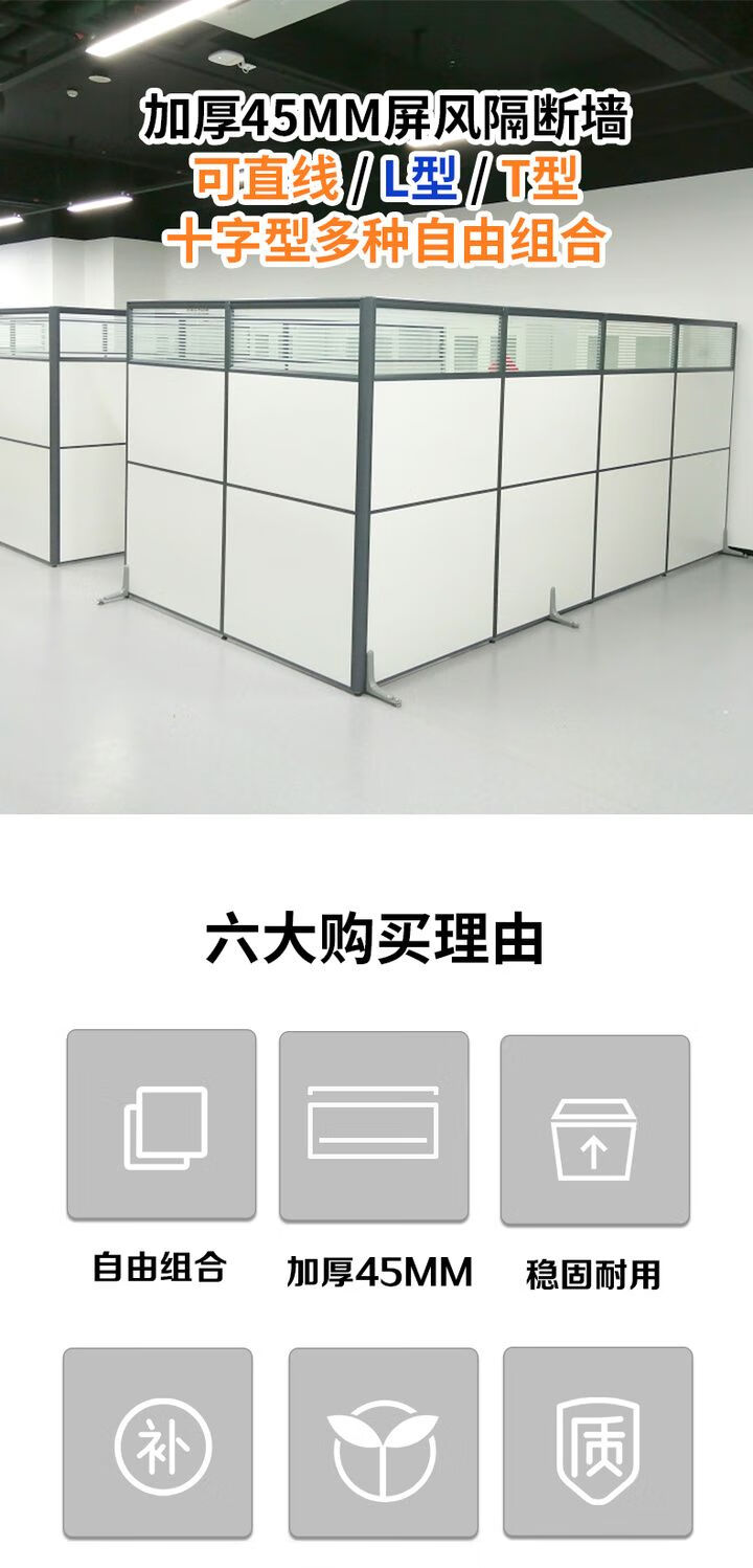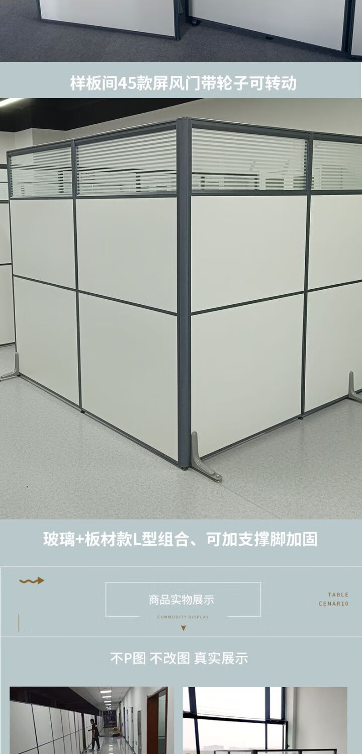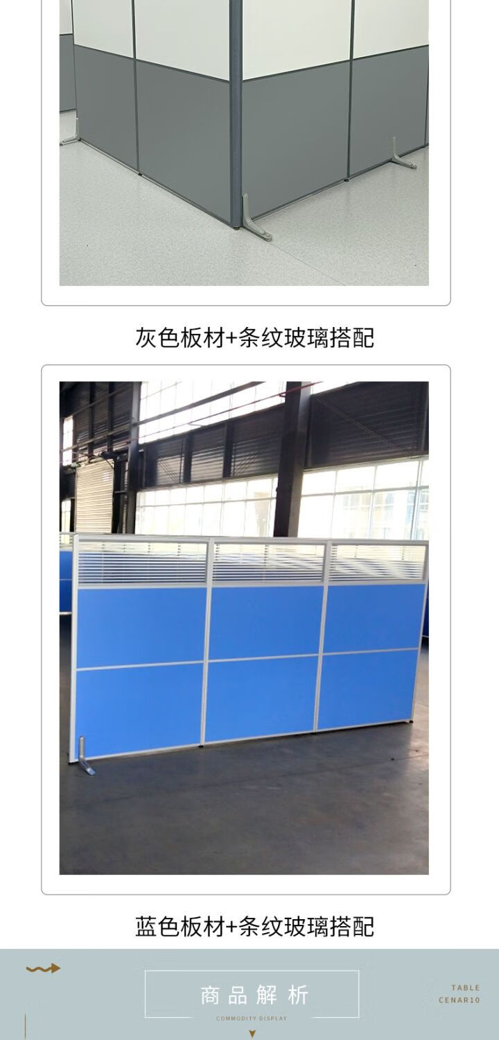 欣慕雅办公室固定板式玻璃屏风隔断墙工厂车间临时办公简易拆卸隔离档板 1*1.5米板材屏风含配件