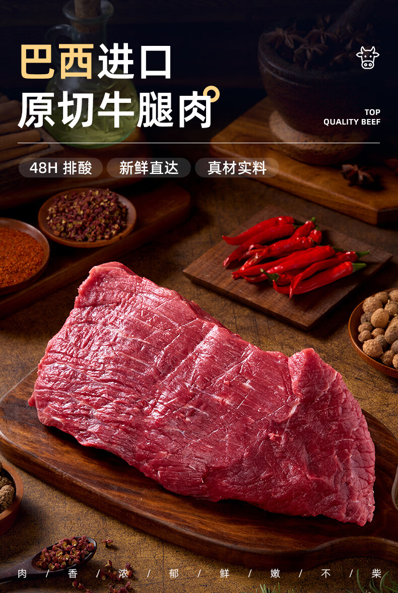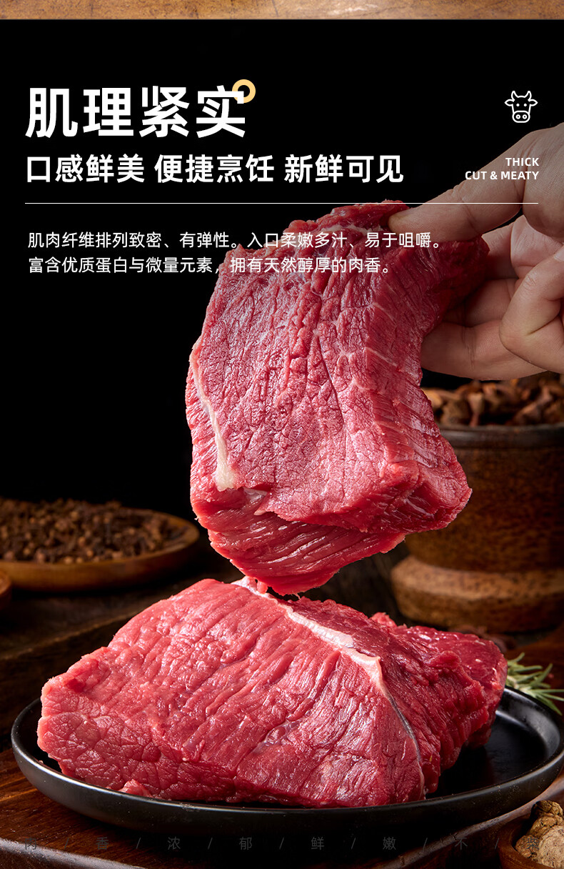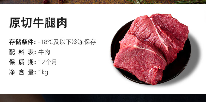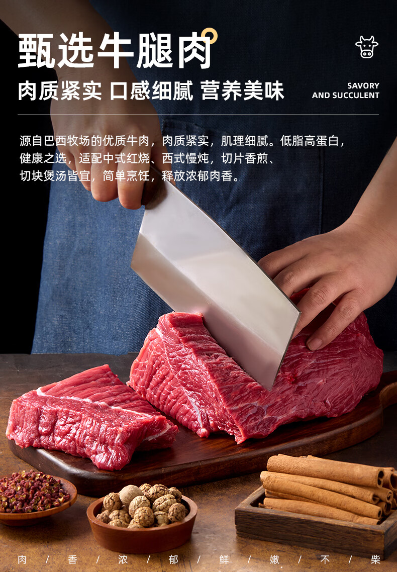 飞熊领鲜原切牛腿肉 牛肉生鲜进口原切牛腿牛瘦肉炖煮烹饪食材 原切牛腿肉1kg*2