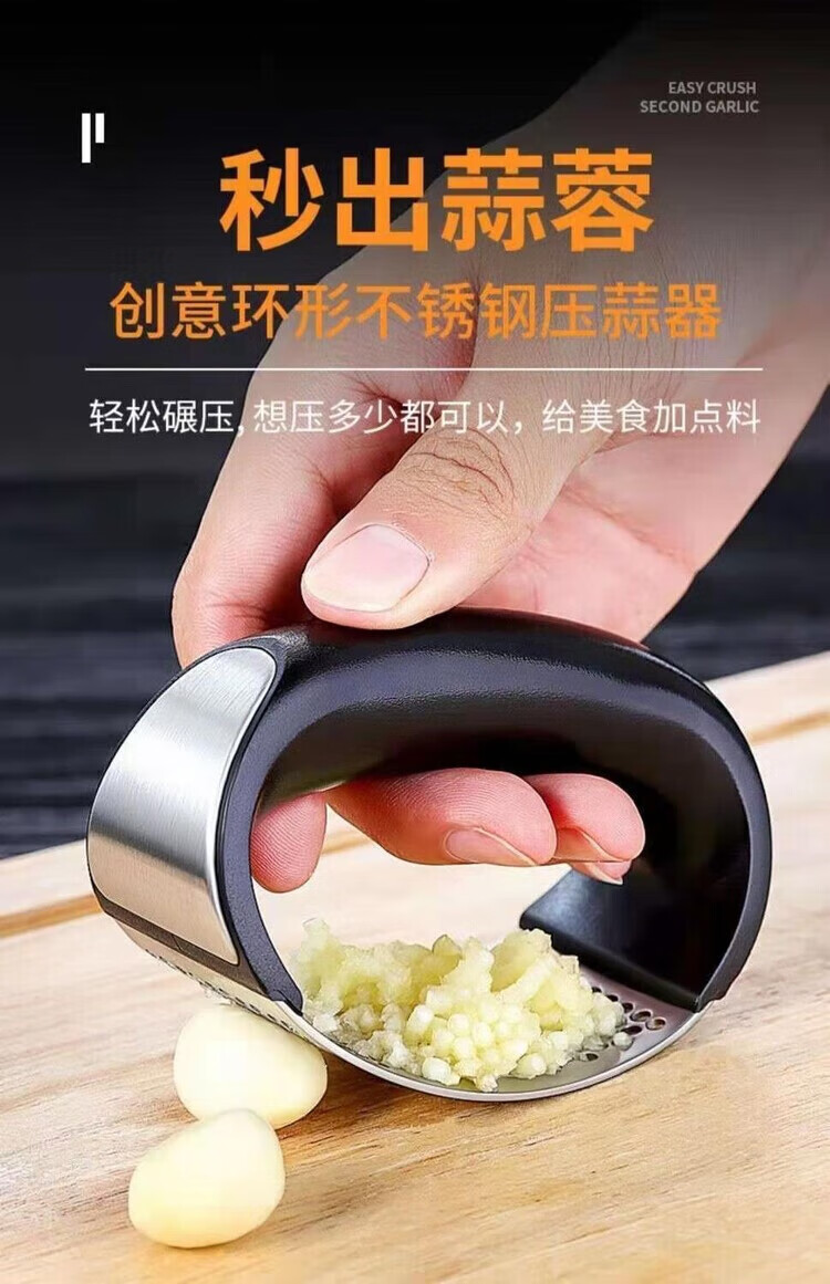 不锈钢压蒜器多功能家用拍大蒜压蒜泥挤蒜末工具手动捣蒜剥蒜 304压蒜器【1个】