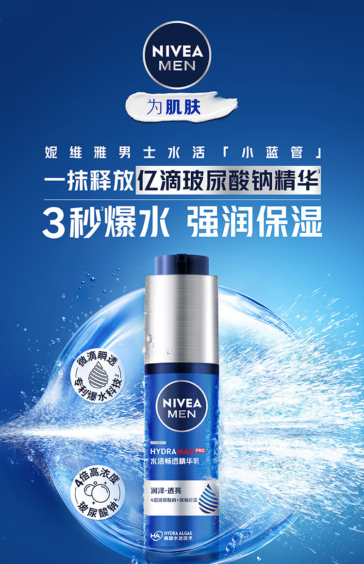 妮维雅(NIVEA)新升级护肤品水活保湿精华乳双支小蓝管 生日礼物送男友
