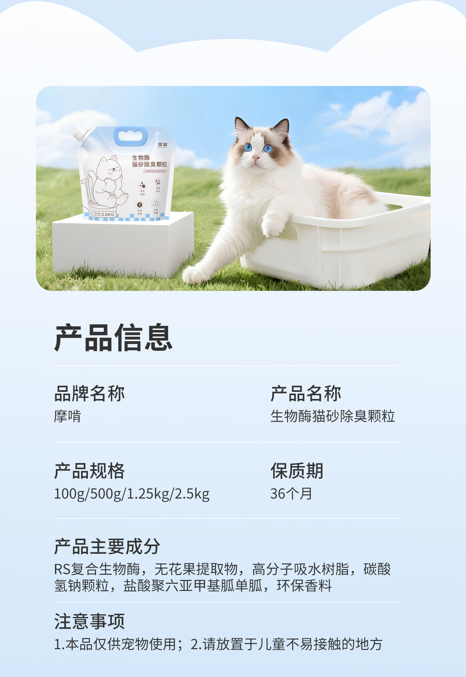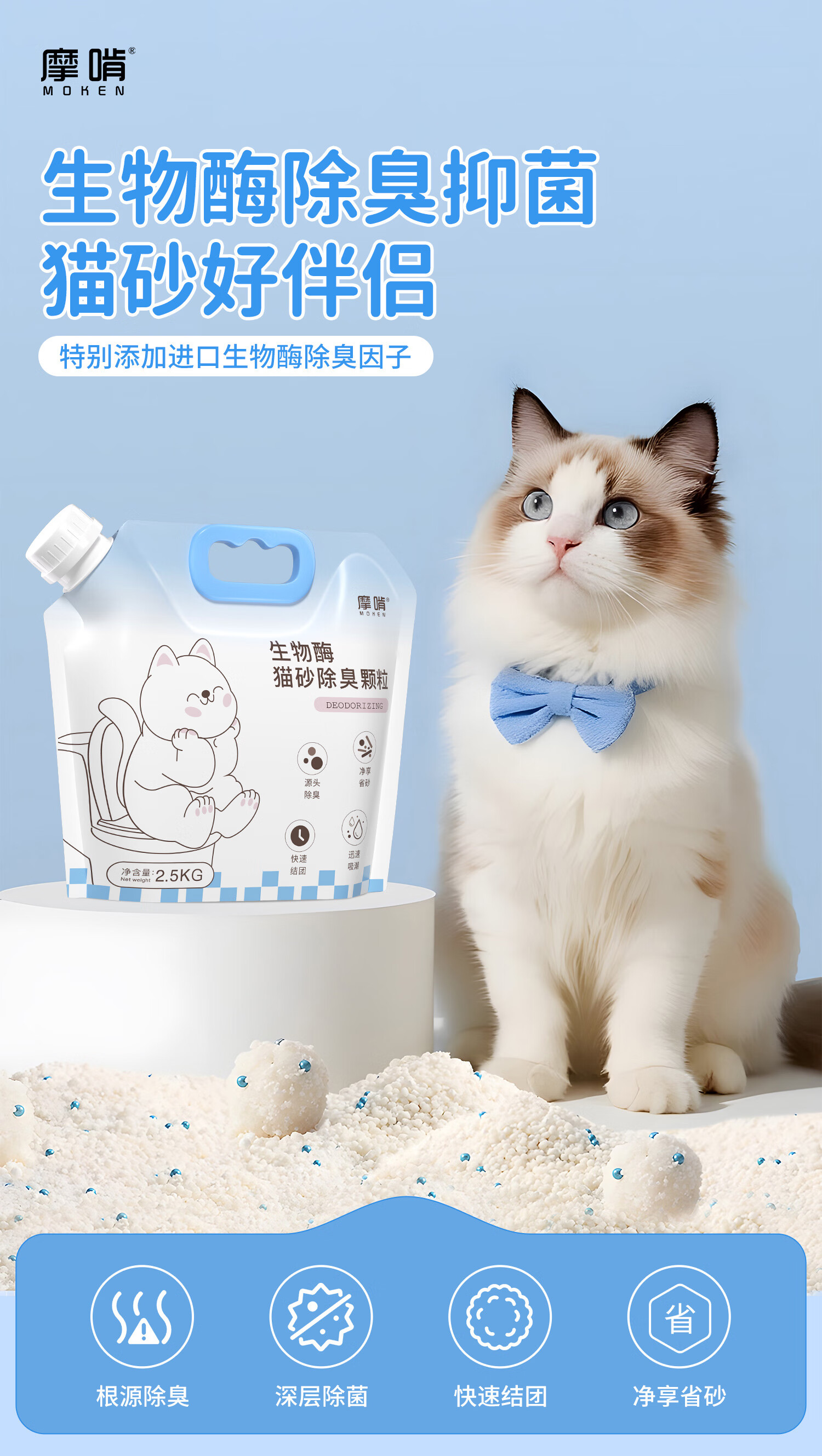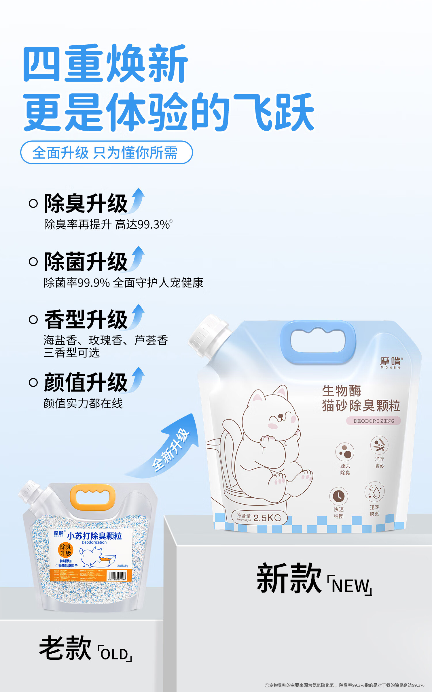 摩啃生物酶小苏打猫砂除臭颗粒【除臭除菌更省砂 海盐香1斤装】