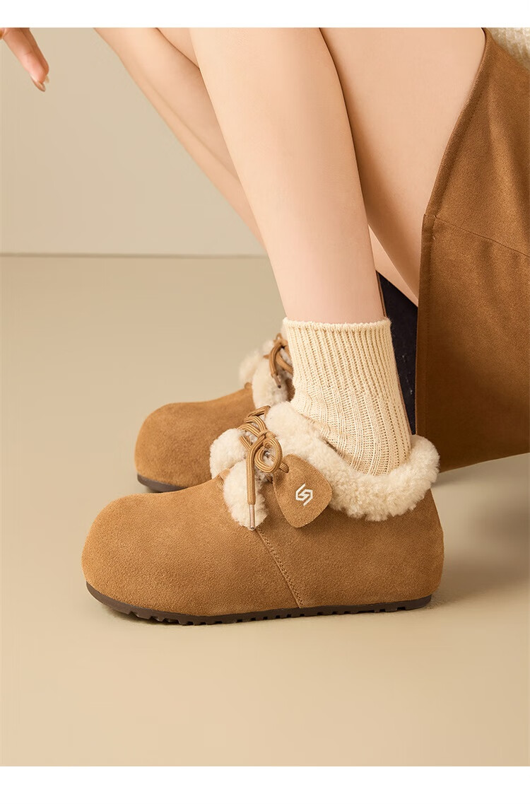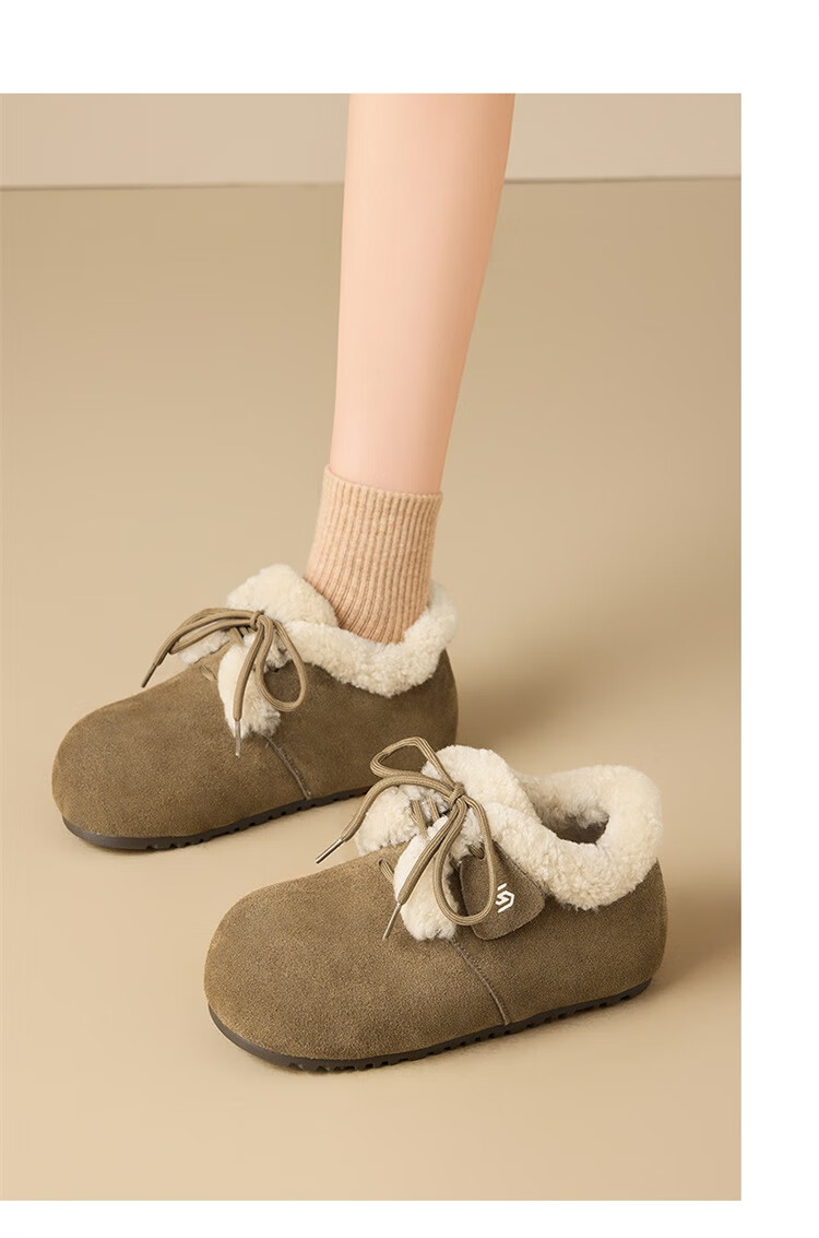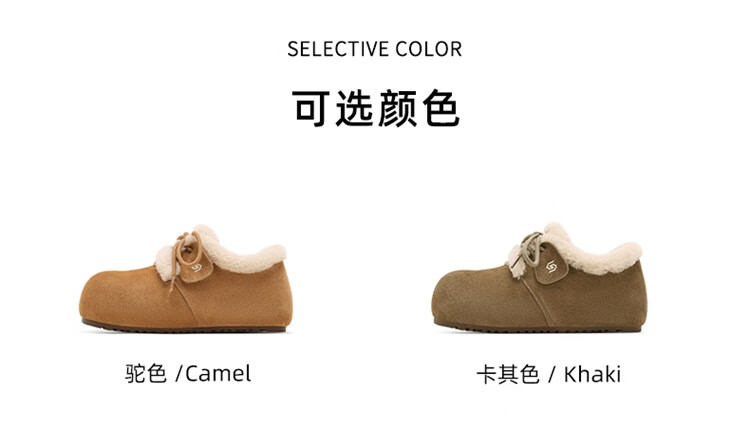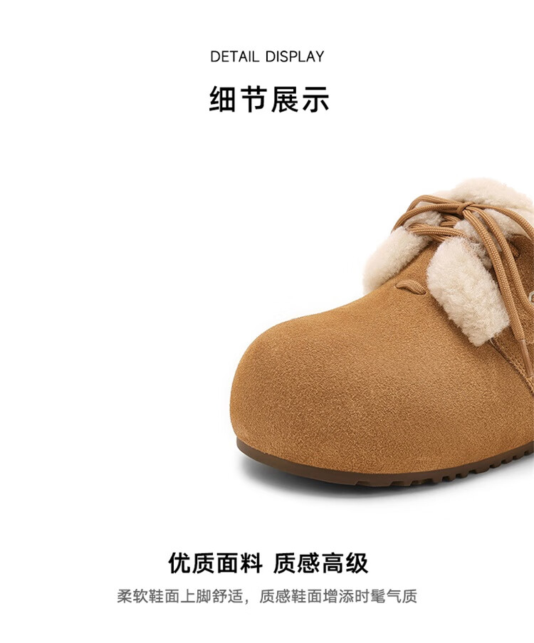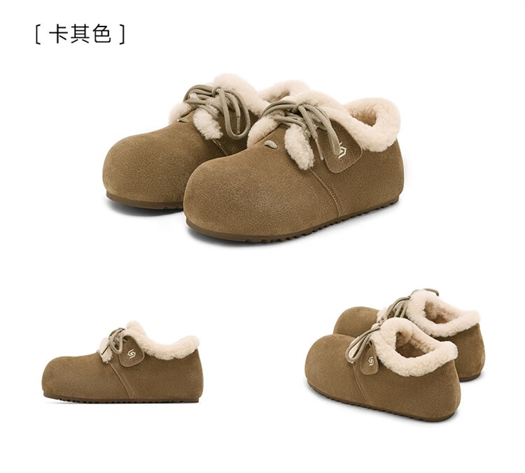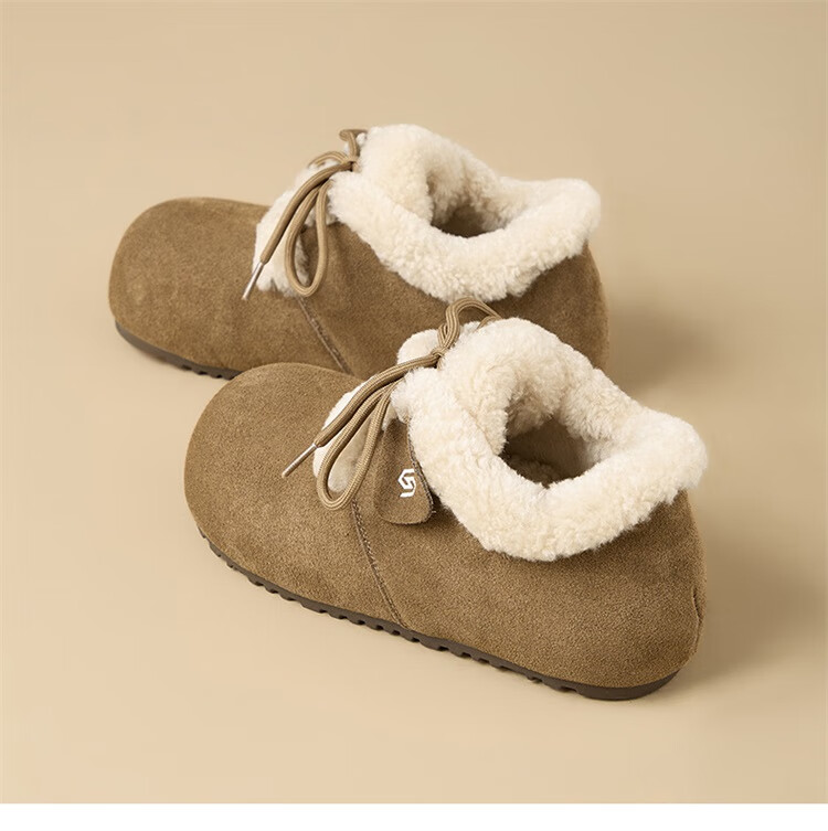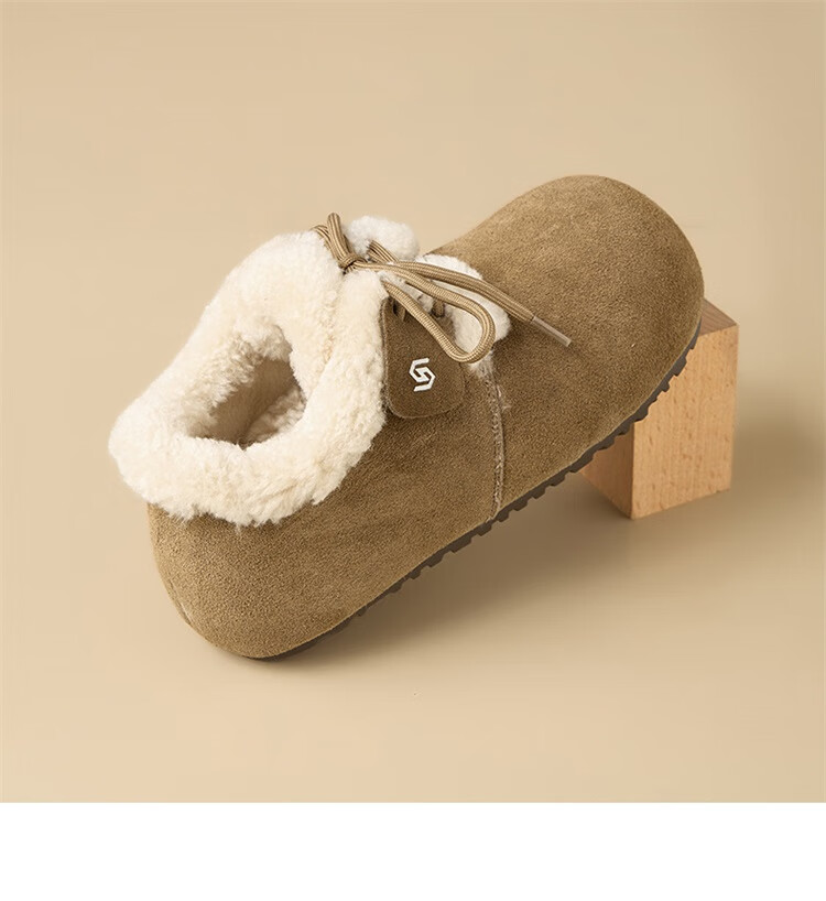 星期六加绒勃肯鞋女2025新款冬季厚底保暖一脚蹬毛毛棉鞋雪地靴爆 卡其色 35