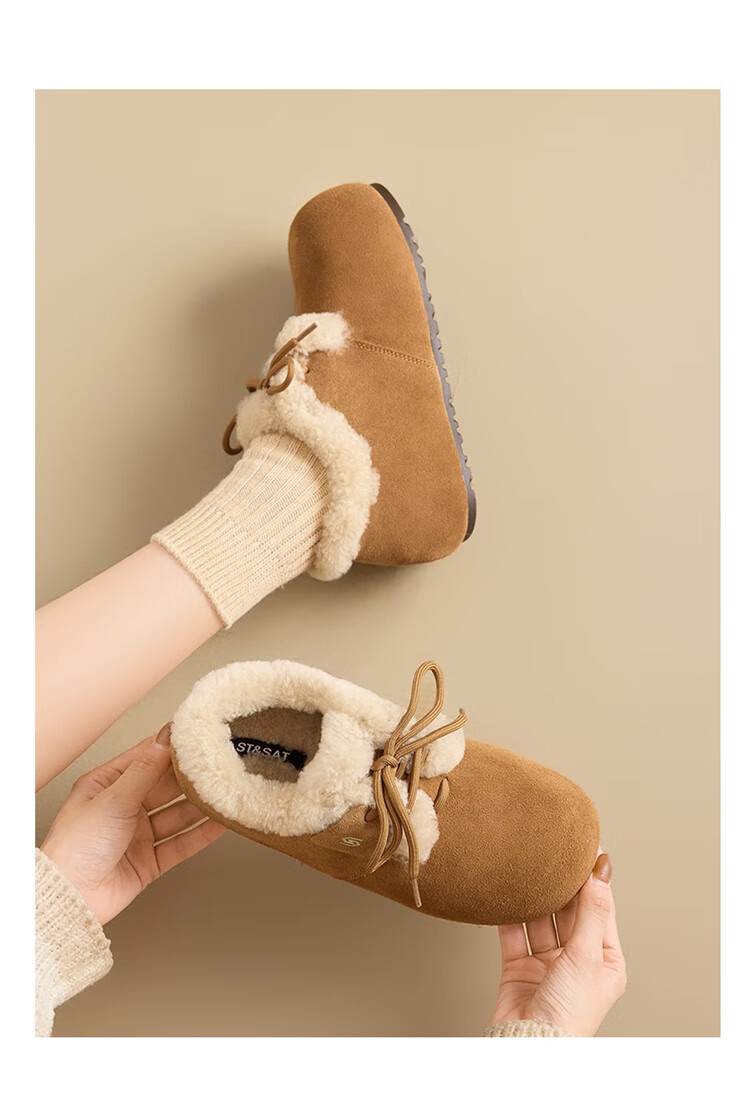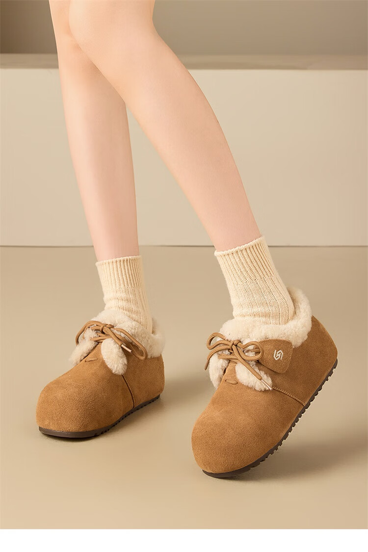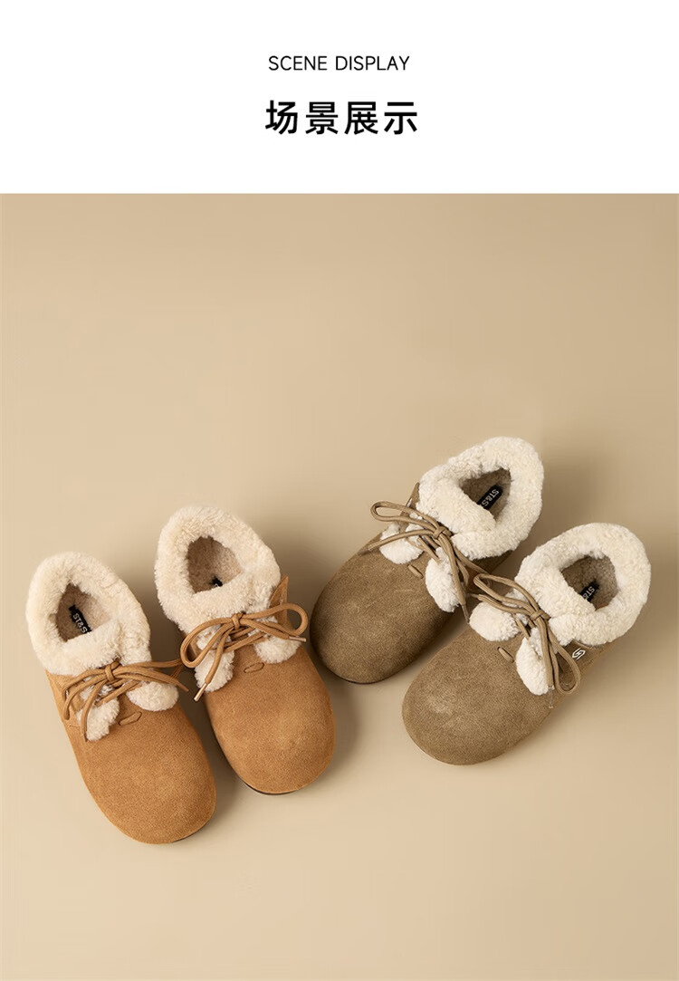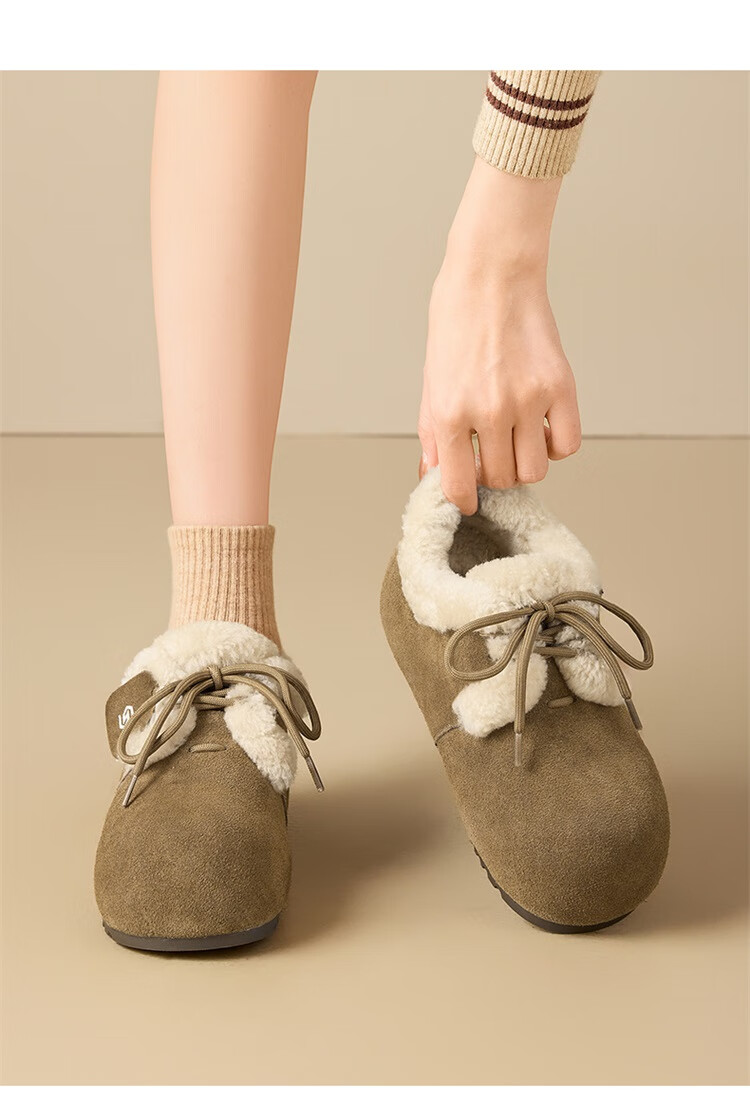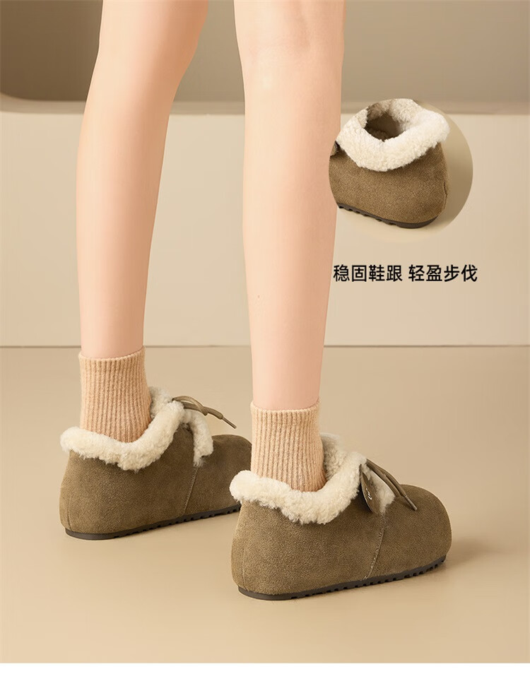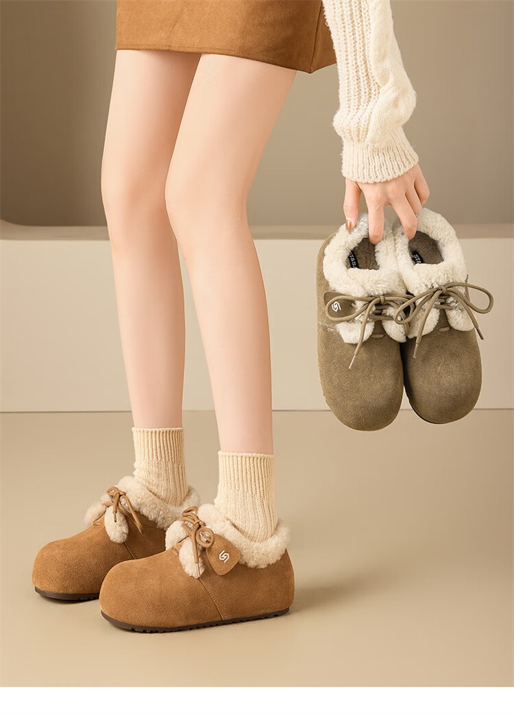 星期六加绒勃肯鞋女2025新款冬季厚底保暖一脚蹬毛毛棉鞋雪地靴爆 卡其色 35
