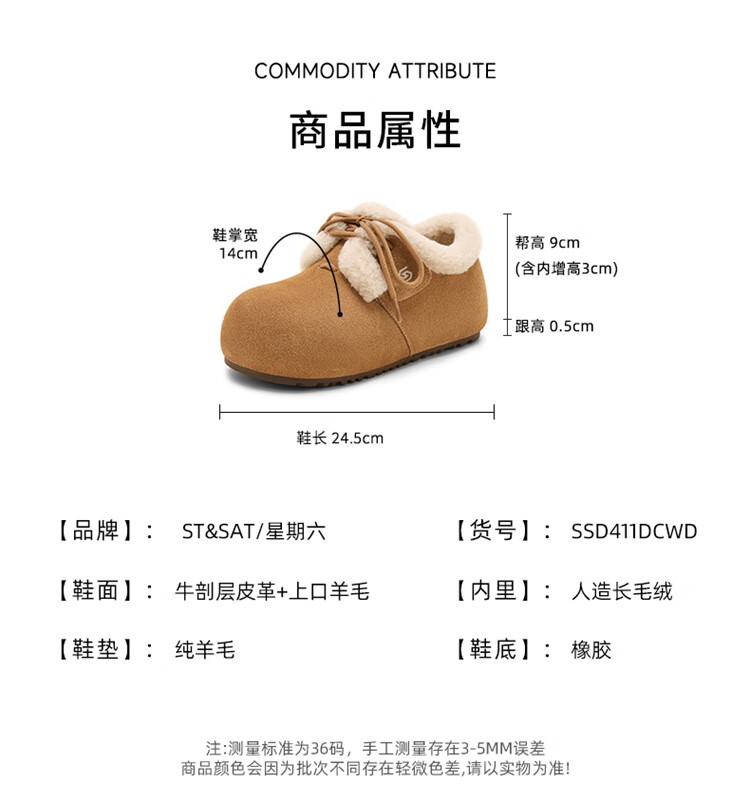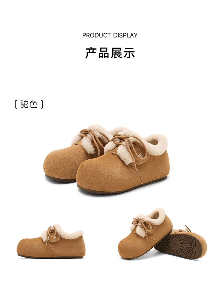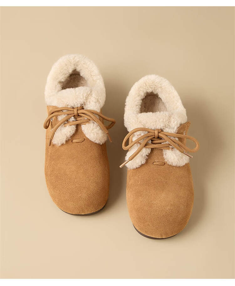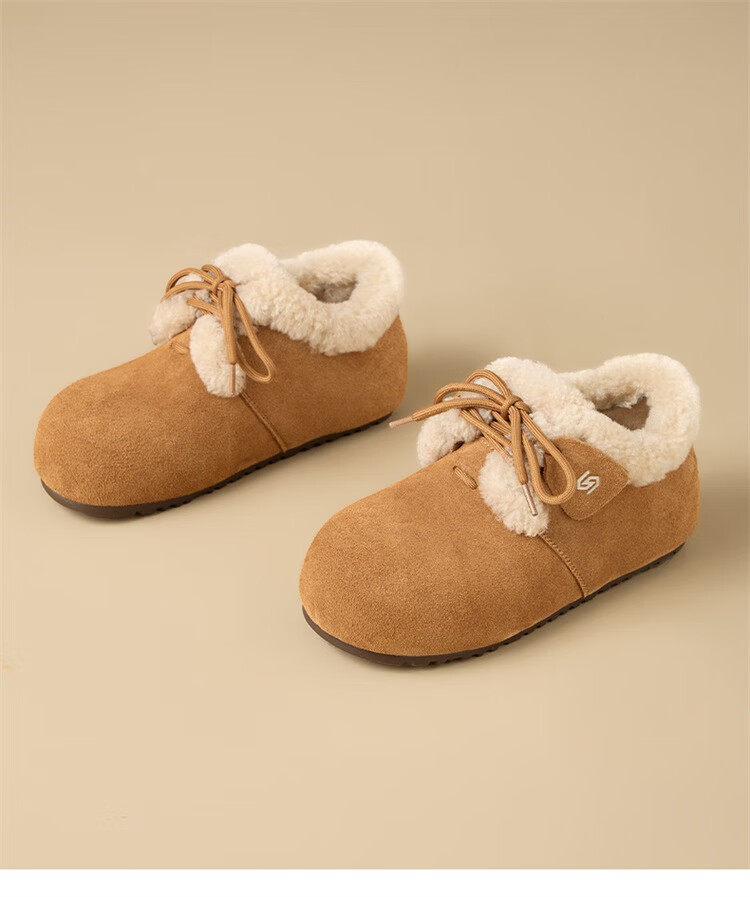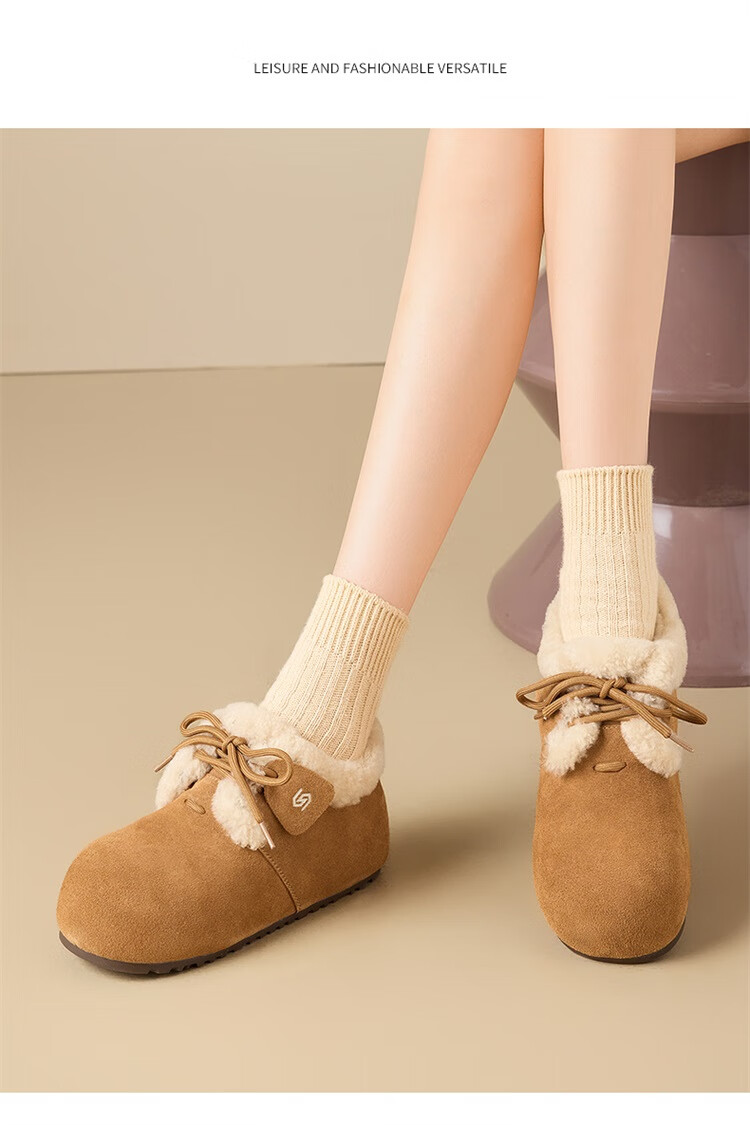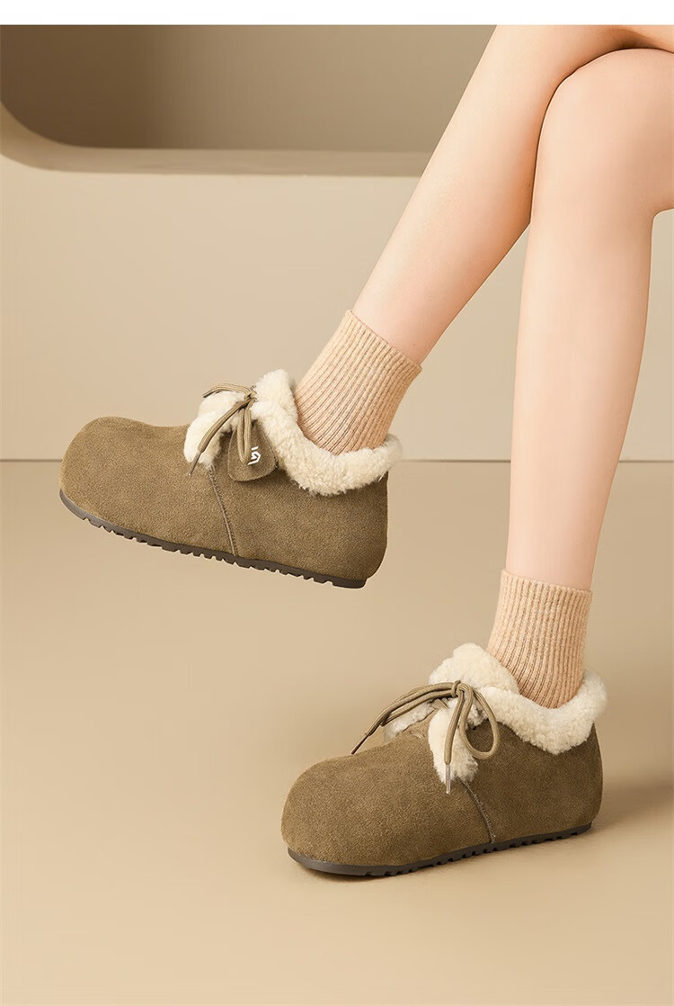 星期六加绒勃肯鞋女2025新款冬季厚底保暖一脚蹬毛毛棉鞋雪地靴爆 卡其色 35