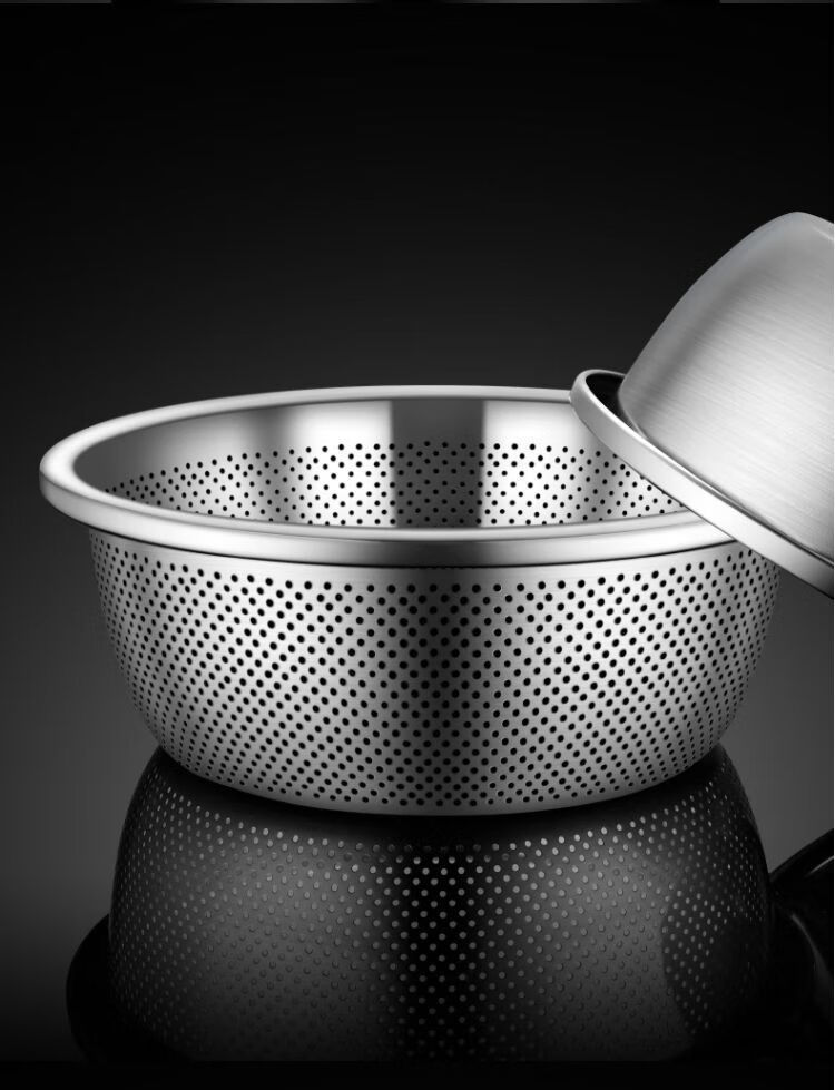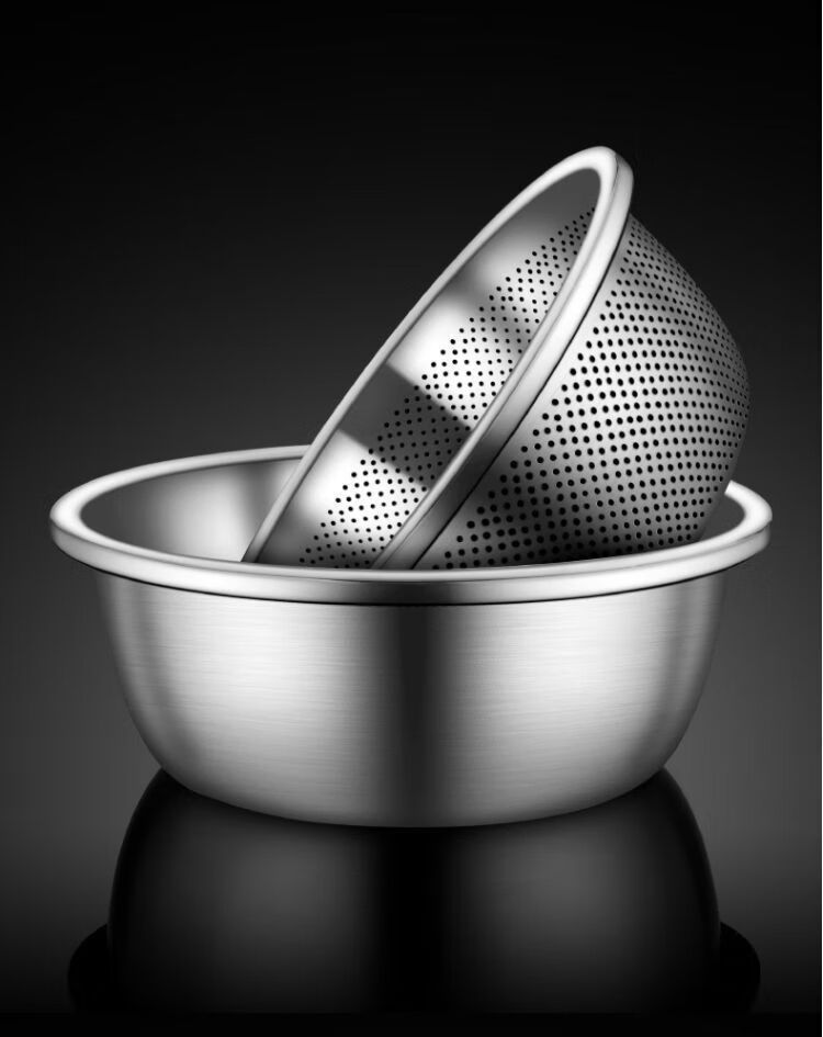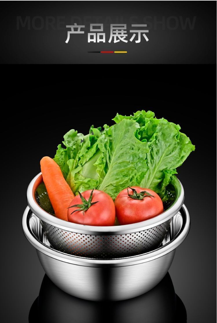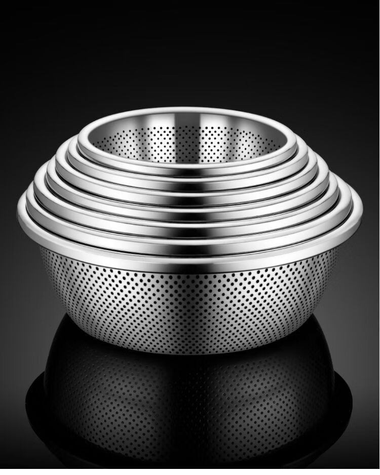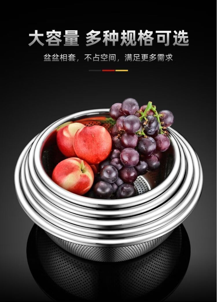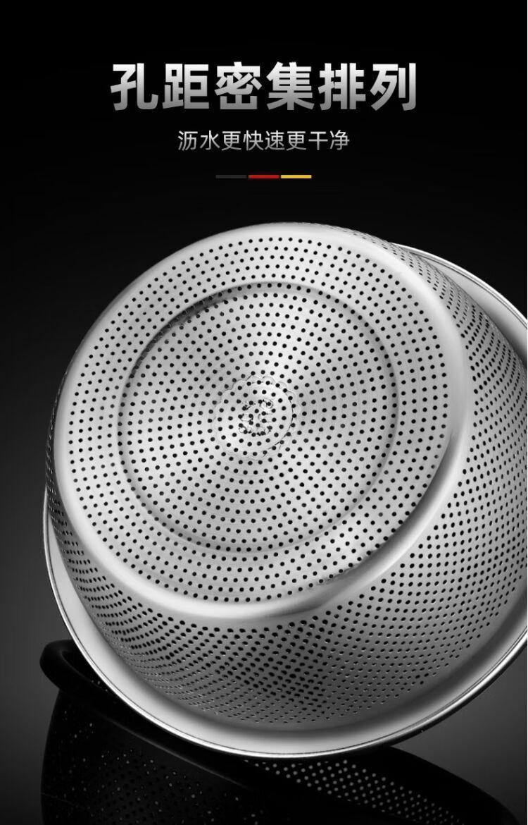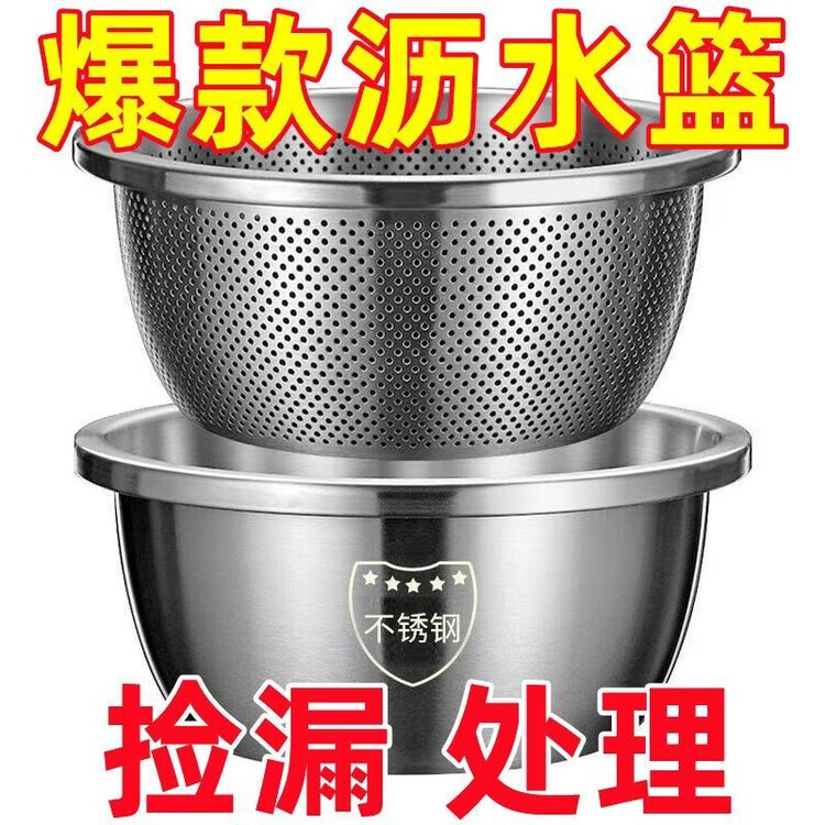 简漾不锈钢沥水篮洗菜盆厨房家用洗水果洗菜篮淘米盆筛加厚和面盆婴儿 顶级钢+特厚特深 买一送一【32cm+8000ML】实盆送漏盆
