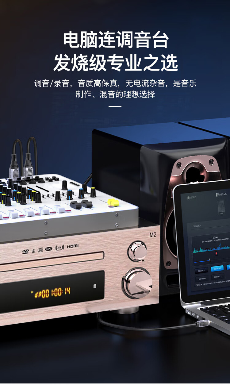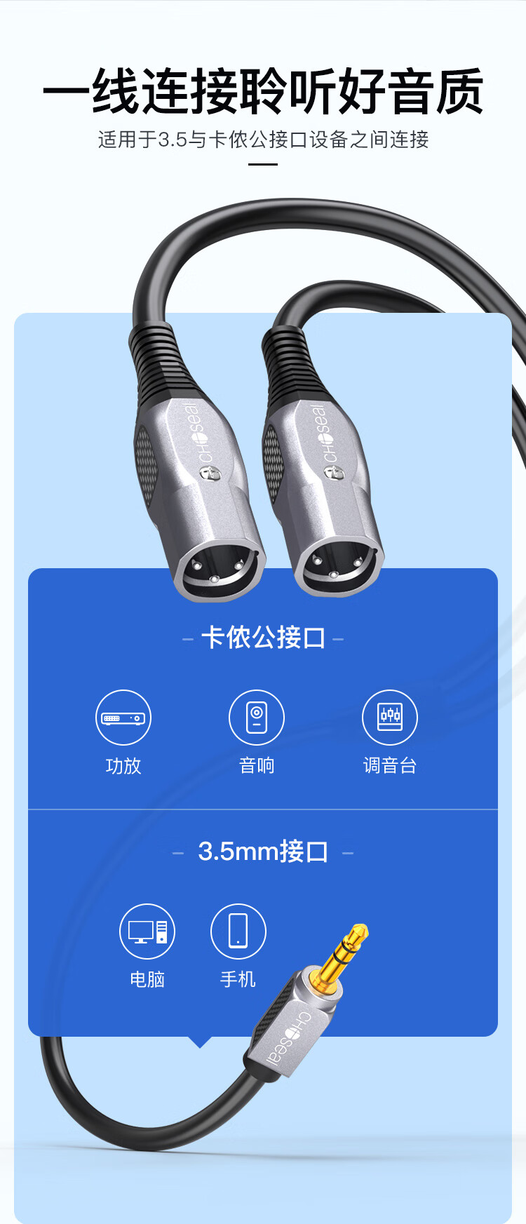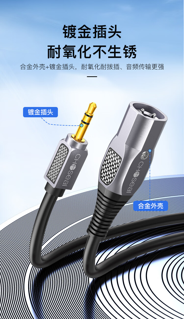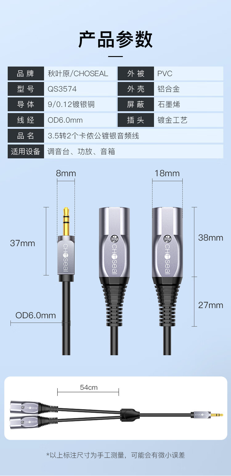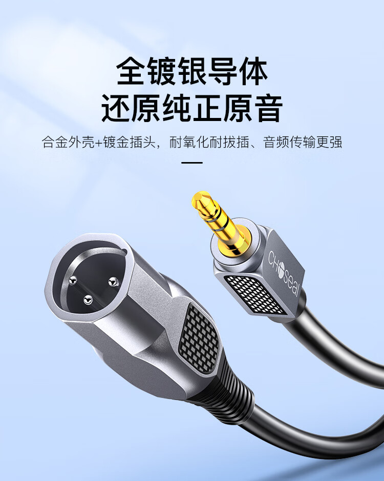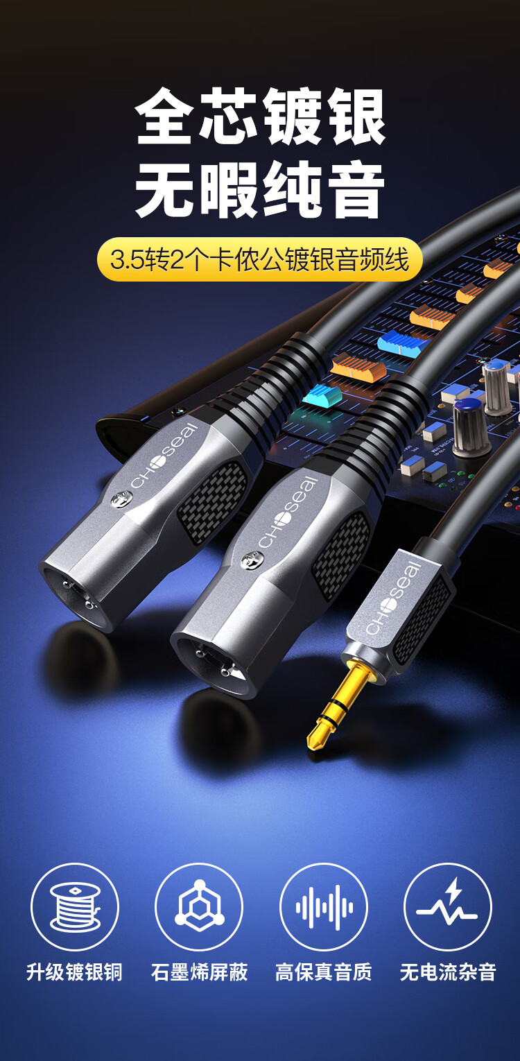 秋叶原(CHOSEAL)3.5mm转双卡侬公音频线 石墨烯屏蔽 镀银铜XLR卡农公 手机电脑转麦克风话筒调音台2米 QS3574T2