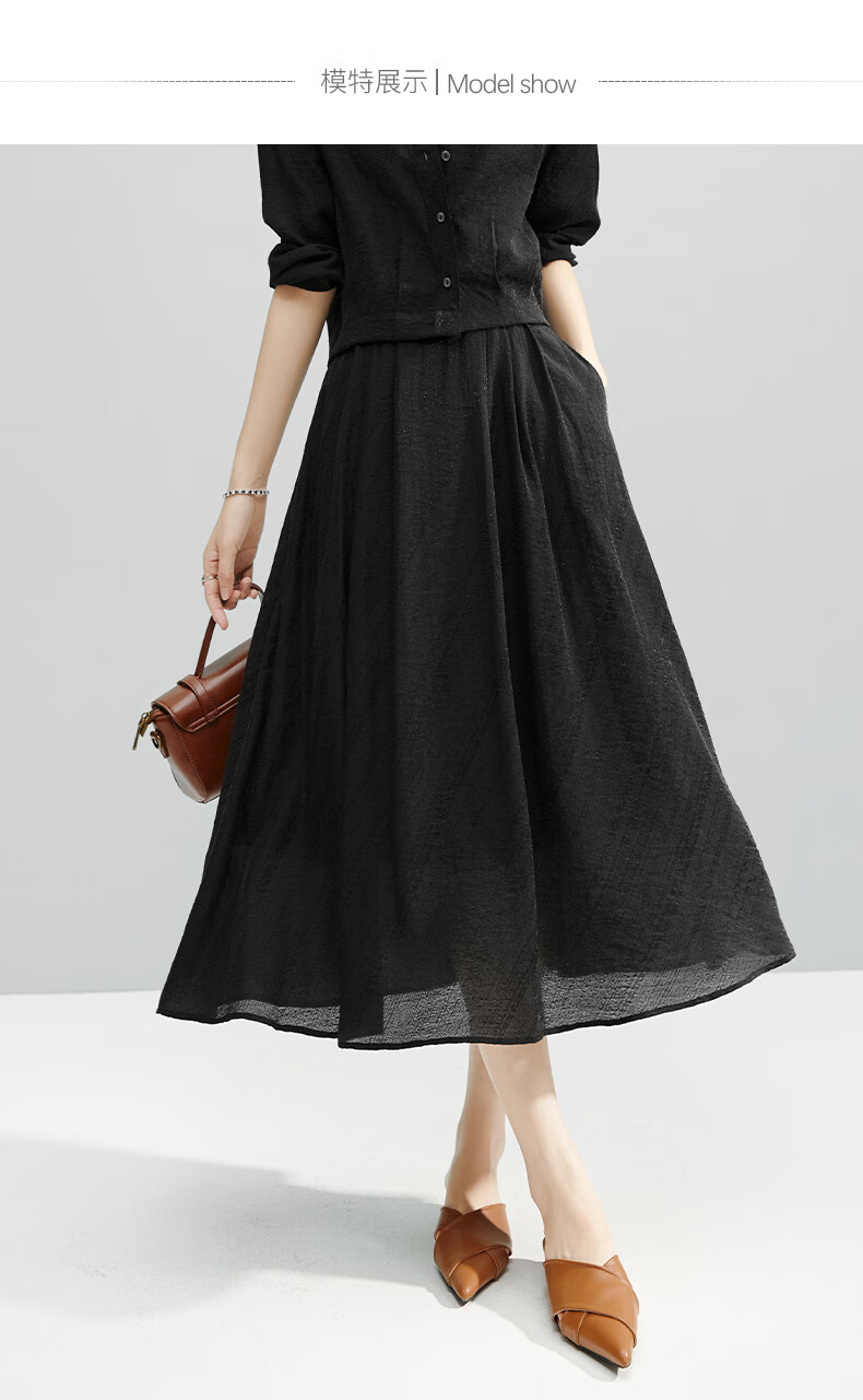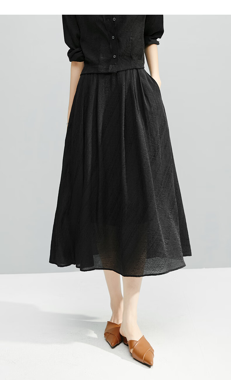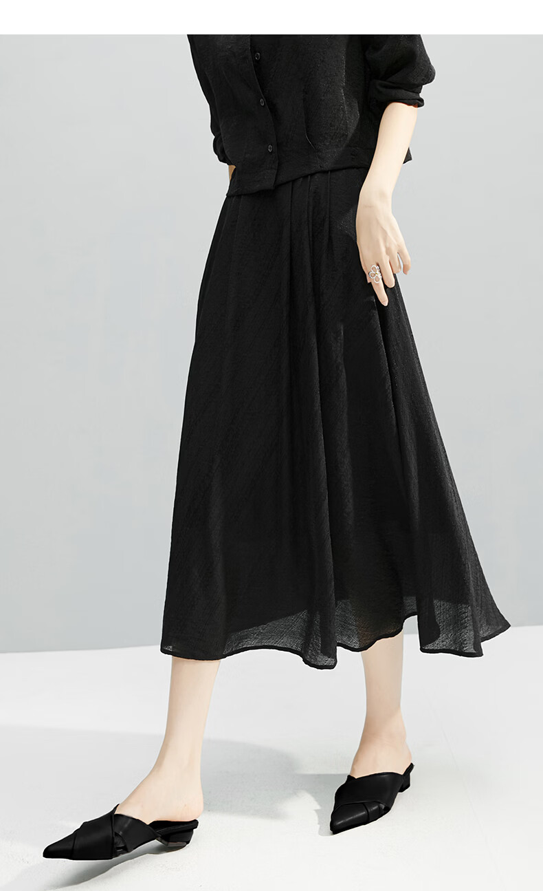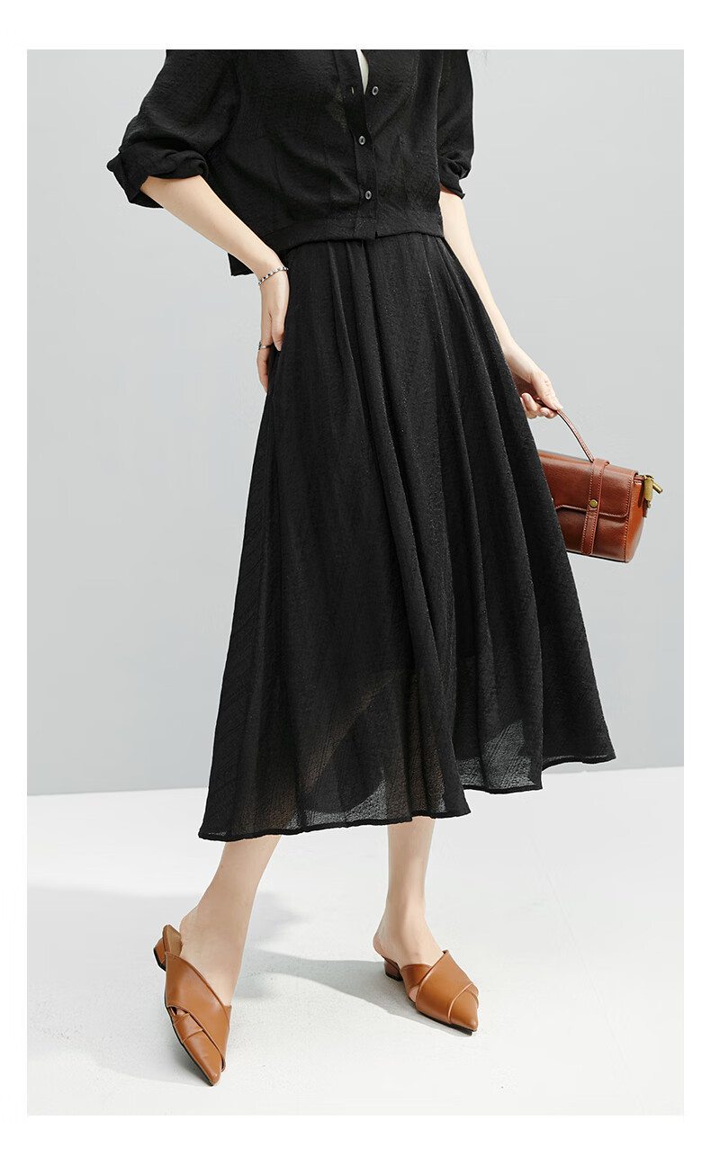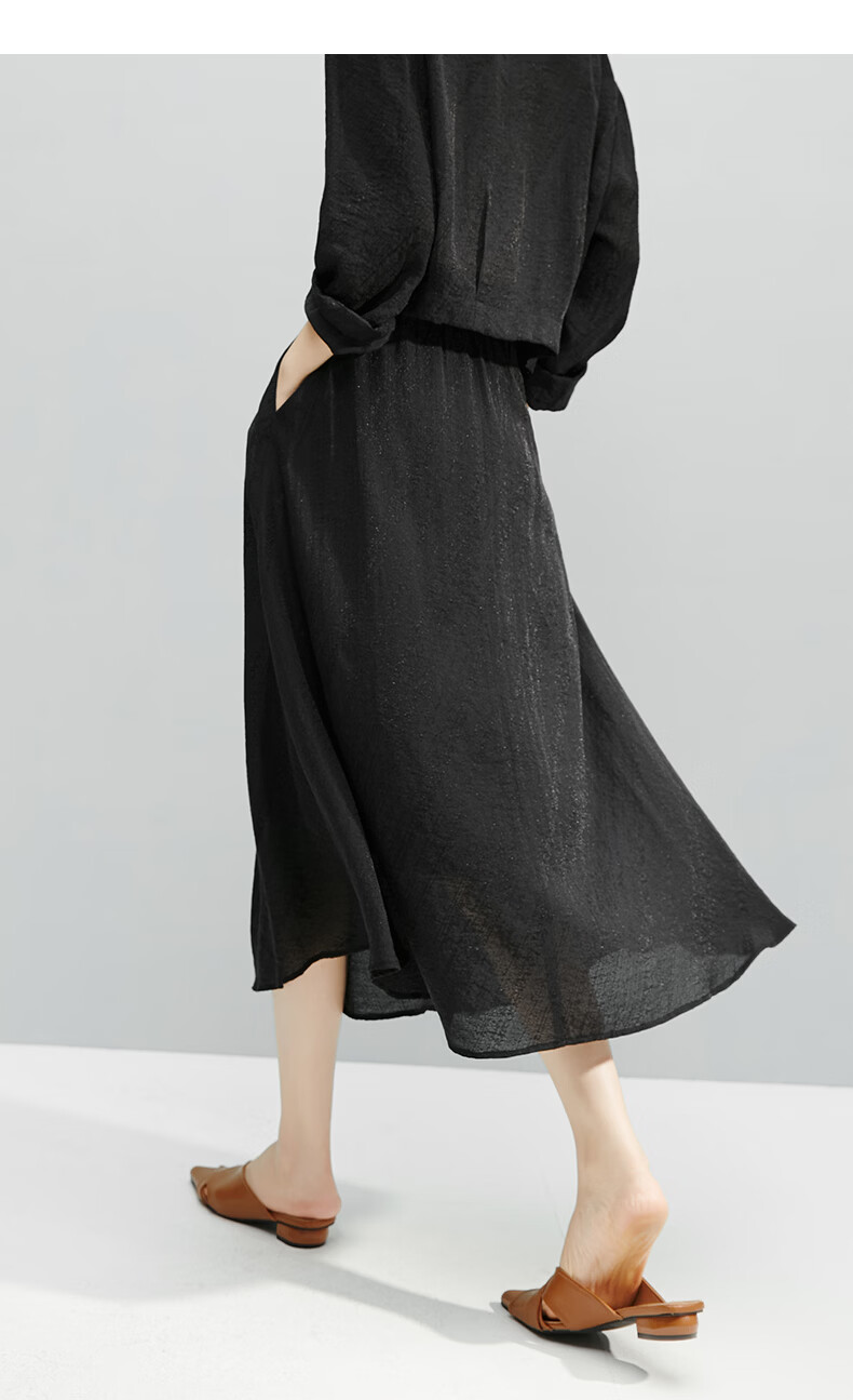 晚白【断码清仓】2026年春款时尚气质半裙休闲莱赛尔纯色A字半身裙 黑色 S