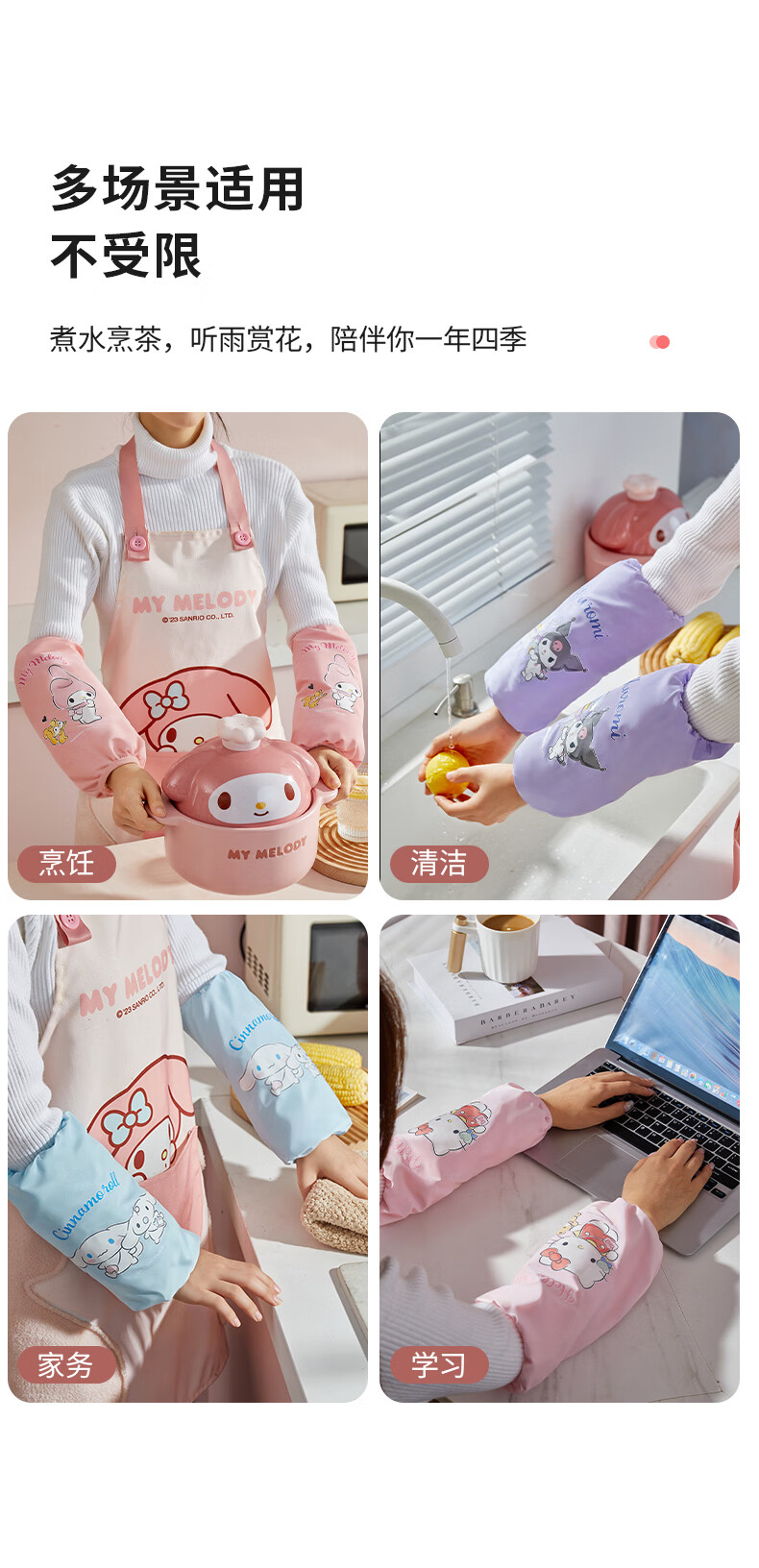 MARSICA三丽鸥袖套厨房防水溅护袖办公室防脏防污可爱小学生儿童成人通用 袖套长【官方正版美乐蒂】防污可爱