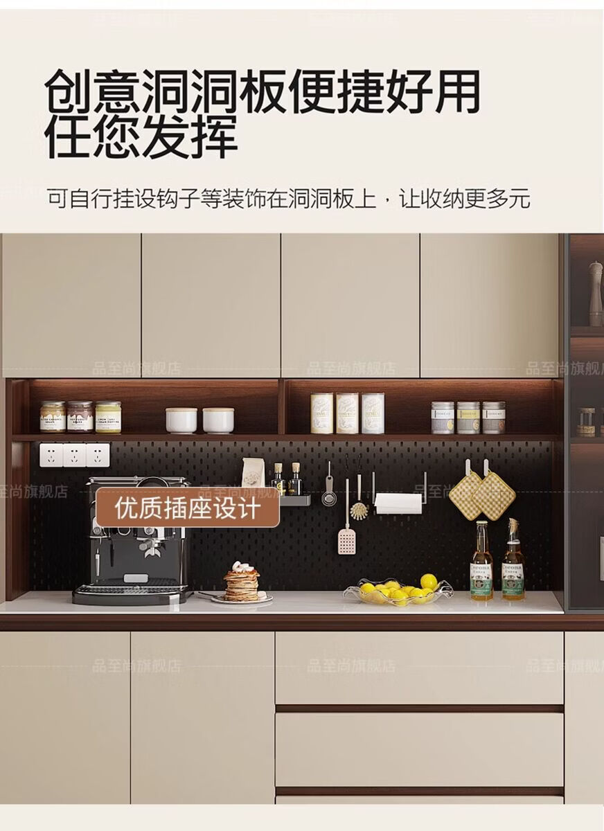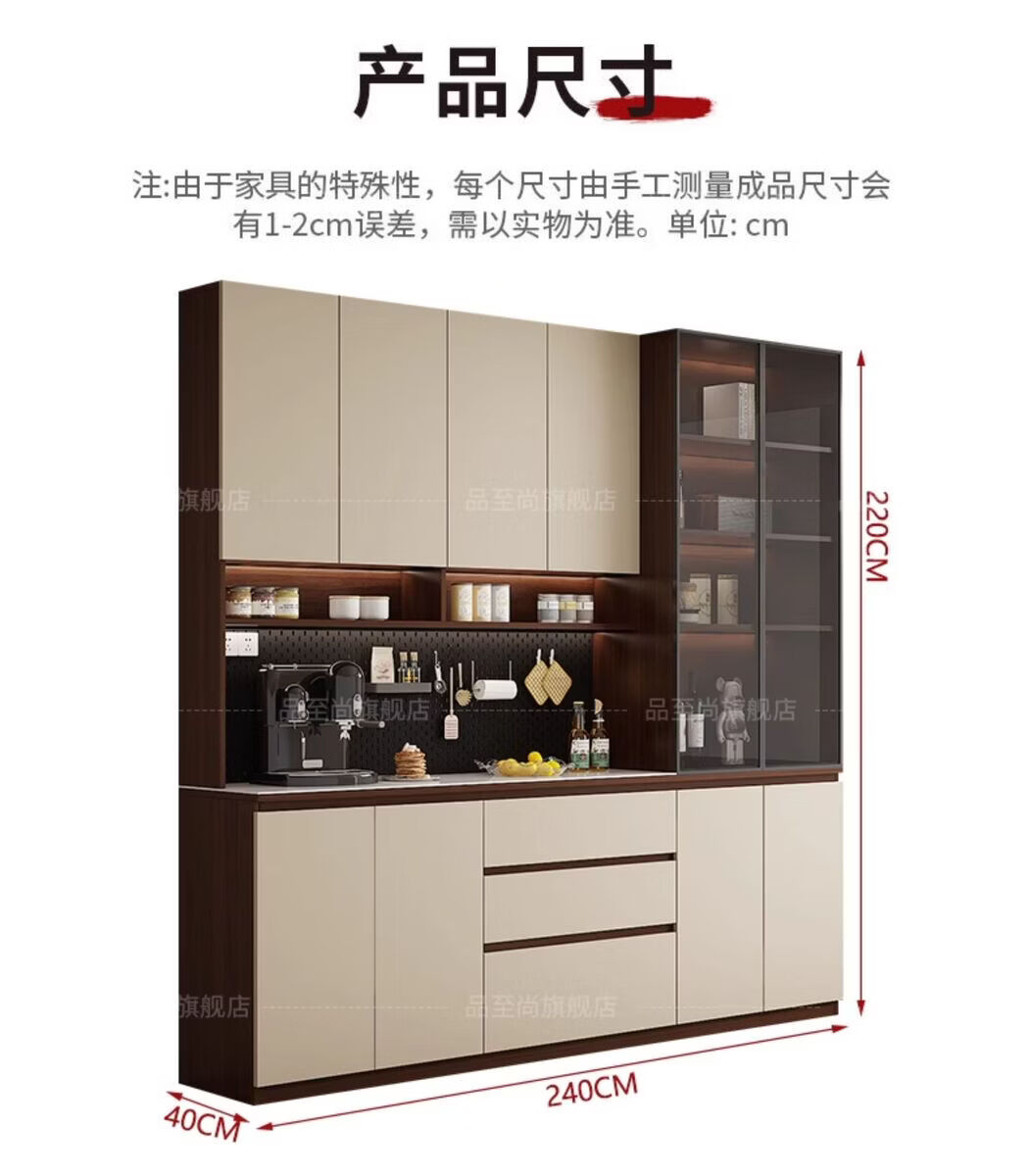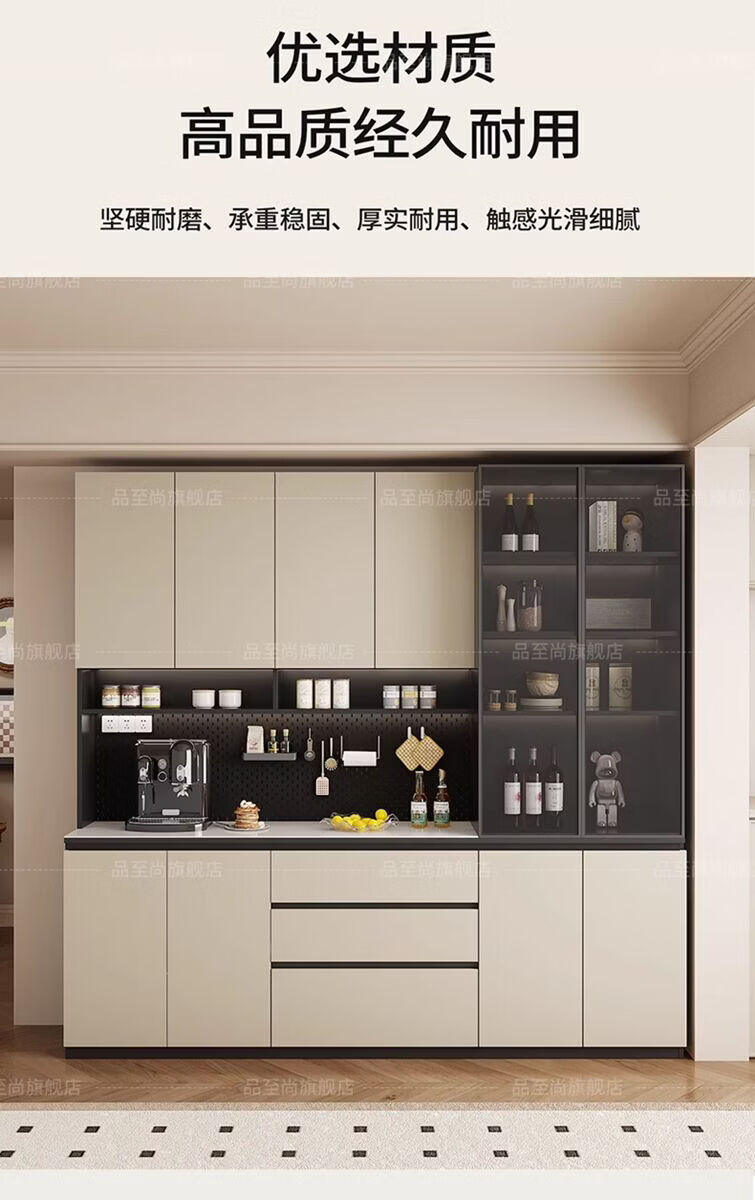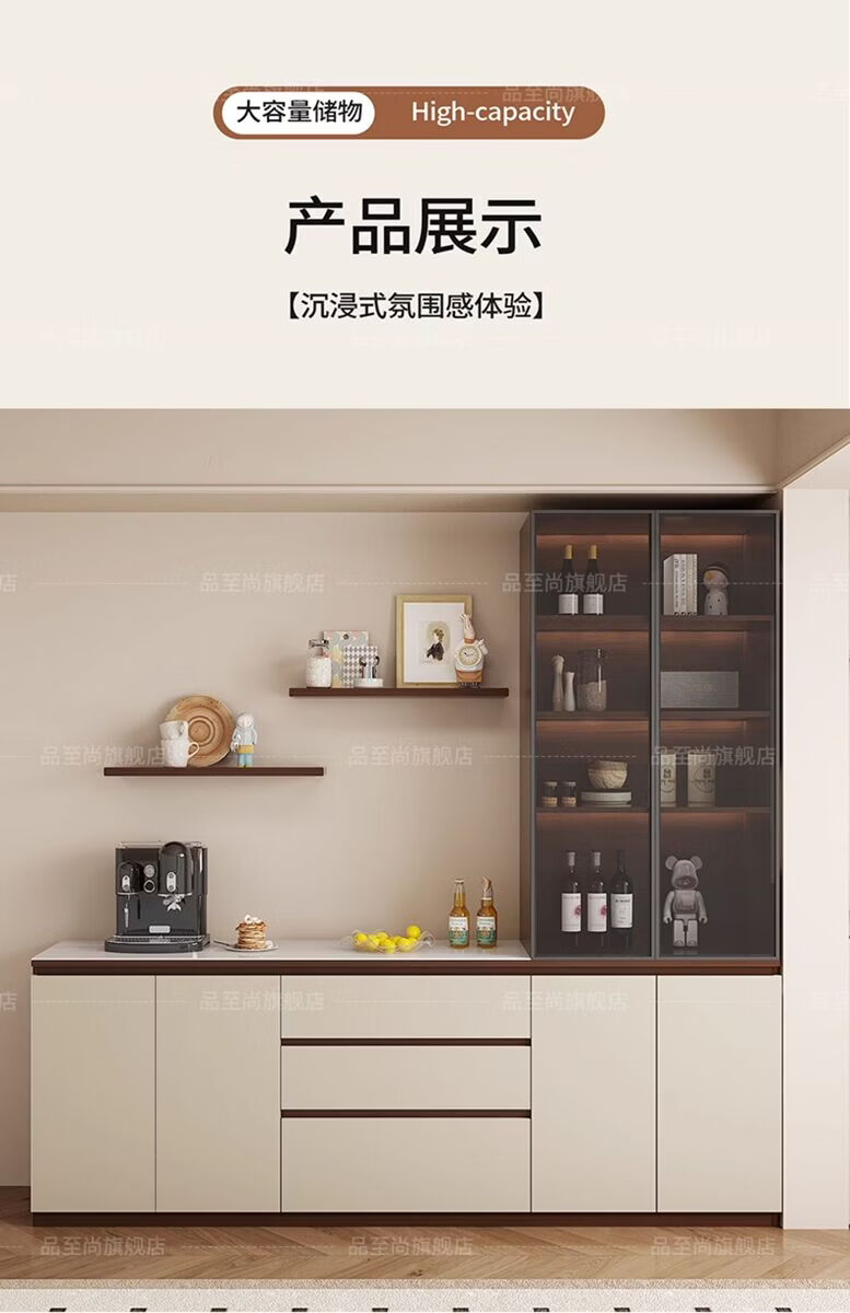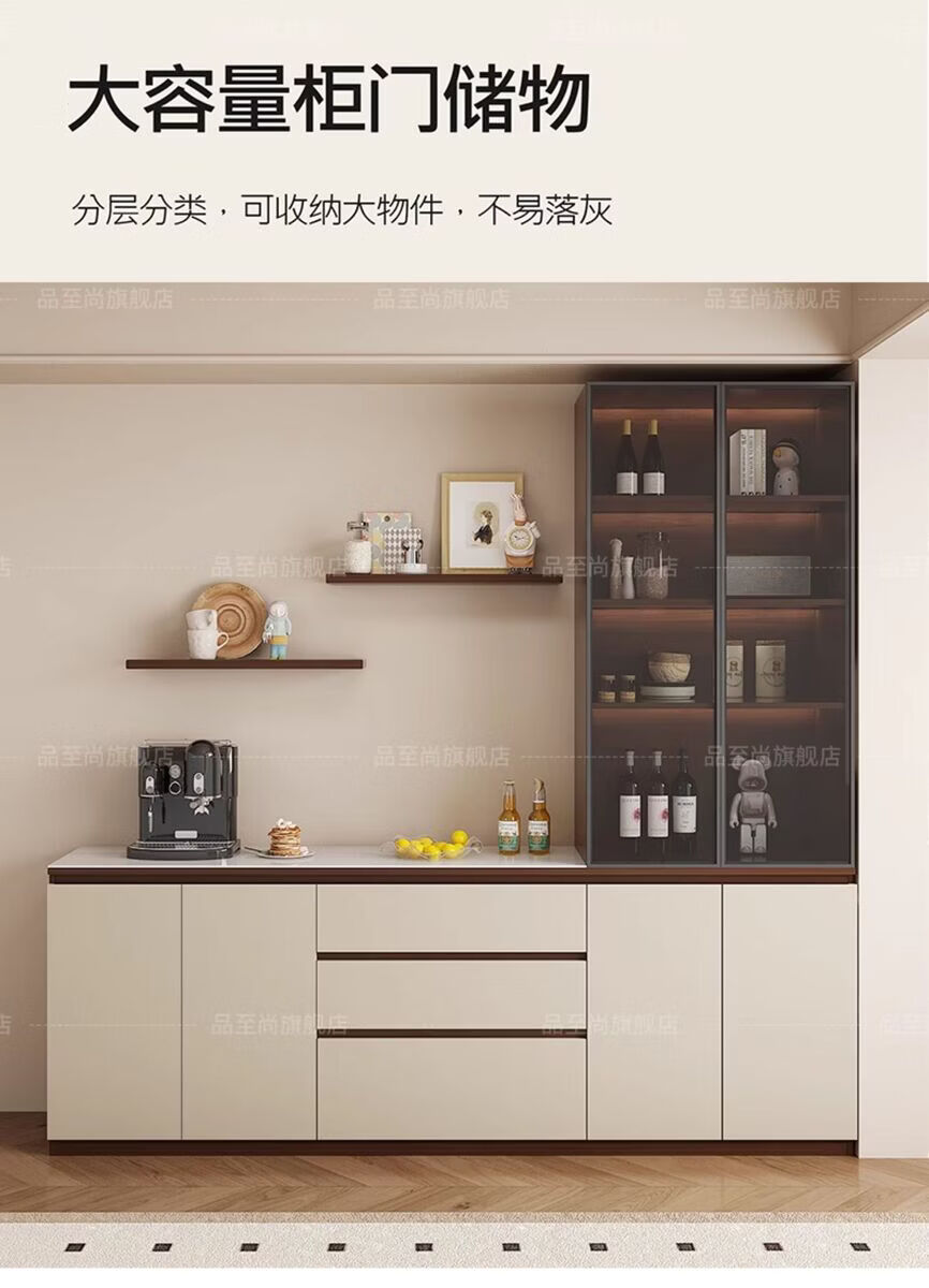溥畔实木餐边柜现代简约客厅酒柜茶水柜靠墙一体小户型家用厨房收纳柜 支持定制/ 请谘询客服