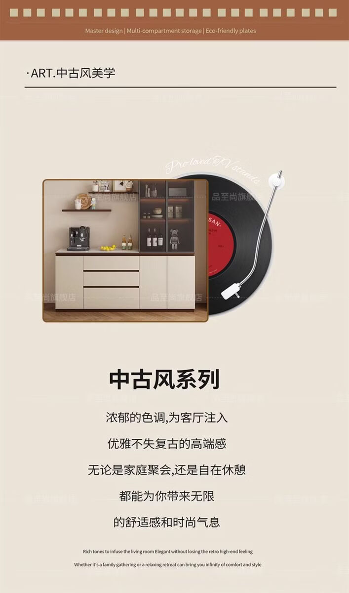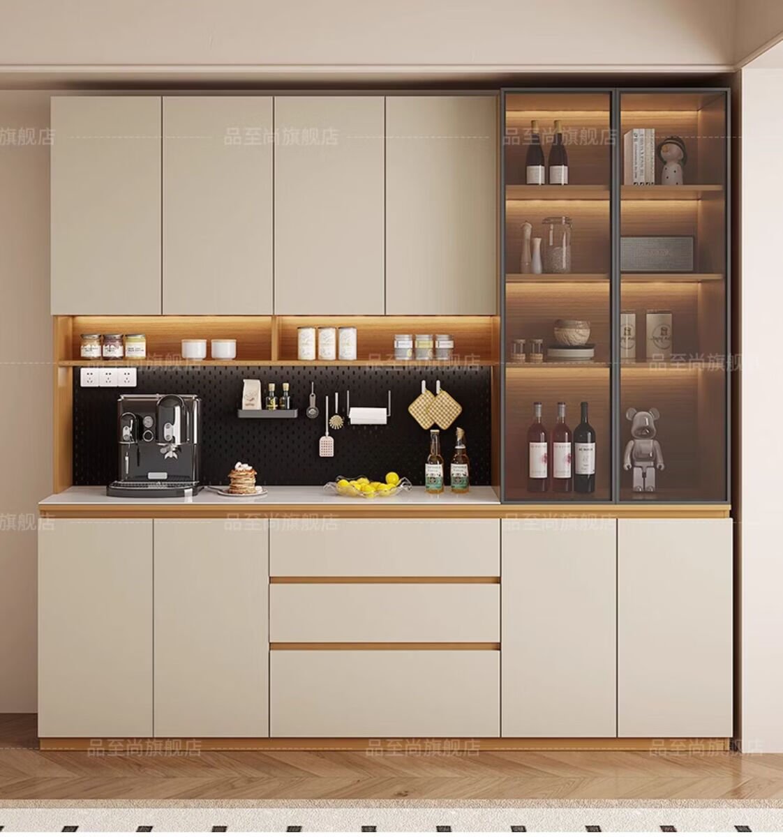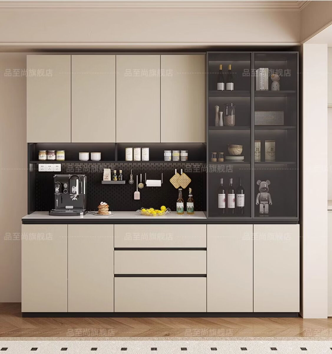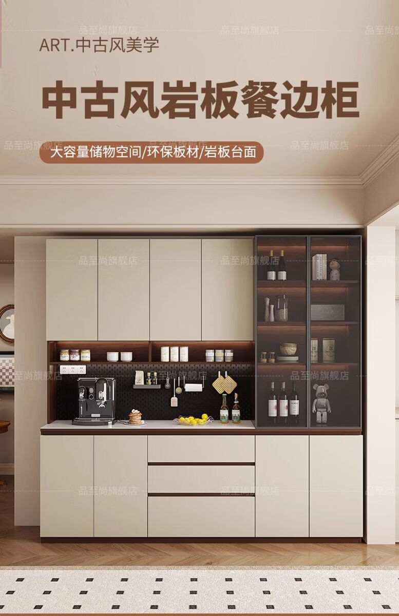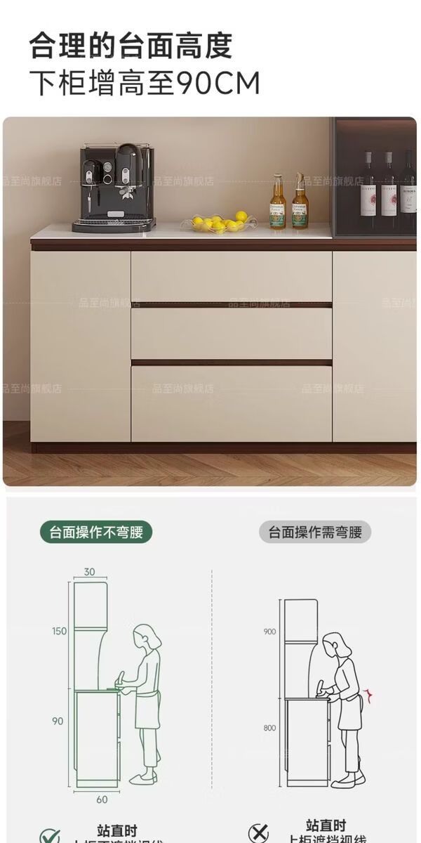 溥畔实木餐边柜现代简约客厅酒柜茶水柜靠墙一体小户型家用厨房收纳柜 支持定制/ 请谘询客服