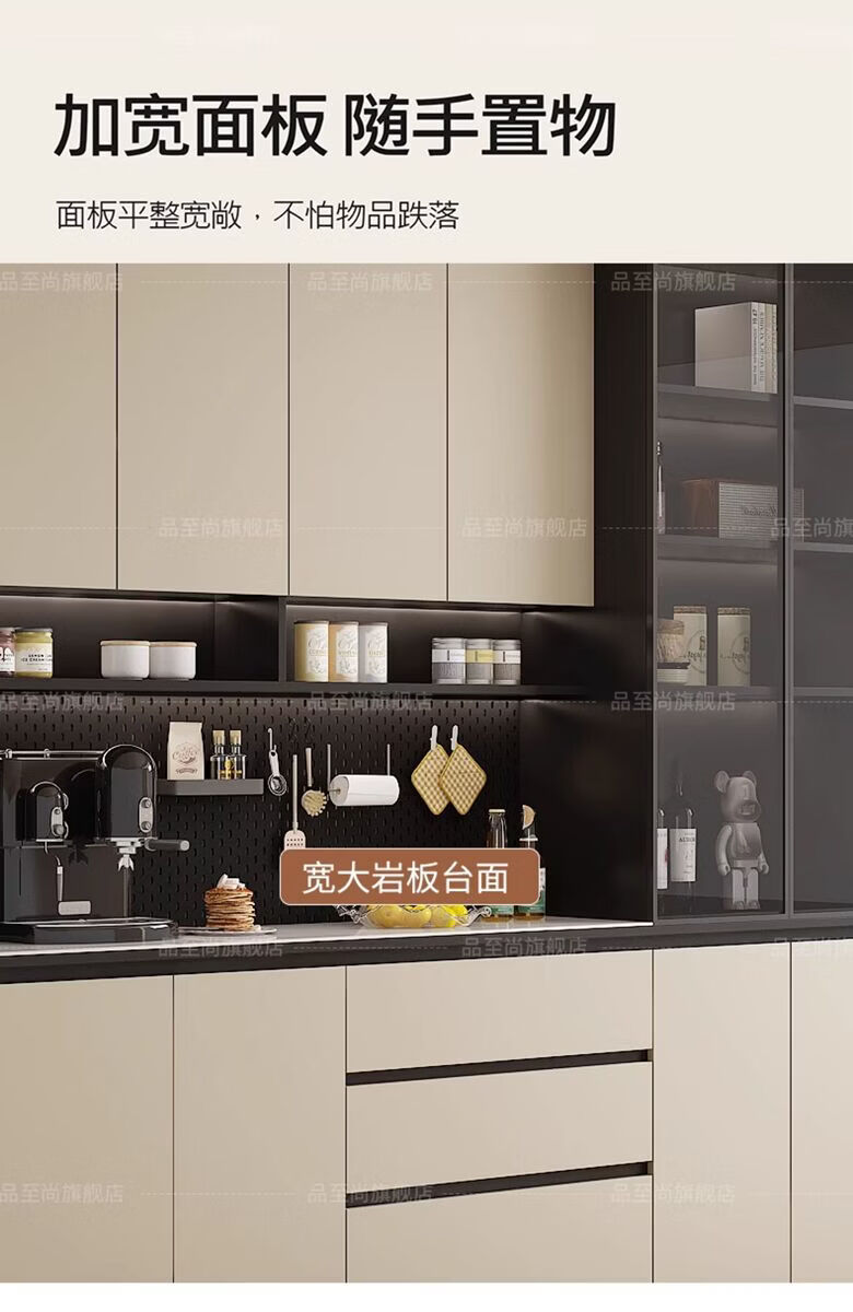 溥畔实木岩板餐柜置物靠墙一体储物收纳柜子客厅酒柜茶水咖啡柜吧台 [满墙柜]六门240x40x220