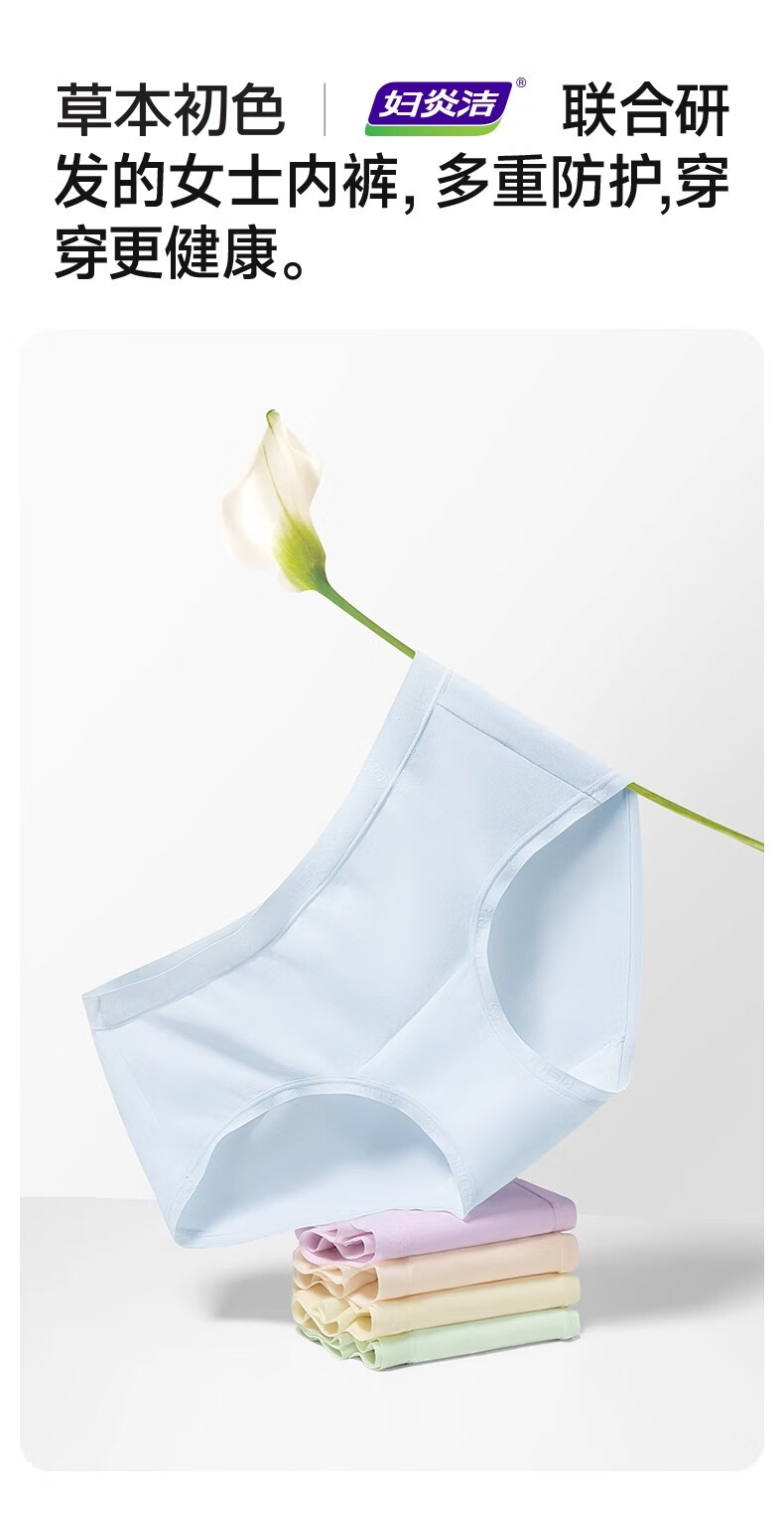 草本初色妇炎洁纯棉内裤女10A抗菌吸汗透气中腰加长裆三角裤短裤独立包装 活力黄+柔雾粉+葡萄紫 L 【101-120斤】 【妇炎洁联名款】