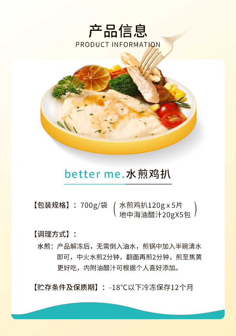 大成betterme水煎鸡扒700g 鸡排鸡胸肉 低脂高蛋白 轻食健身 经典原味700g*3