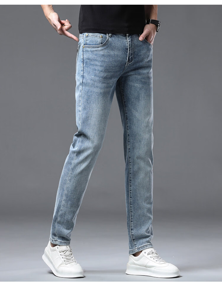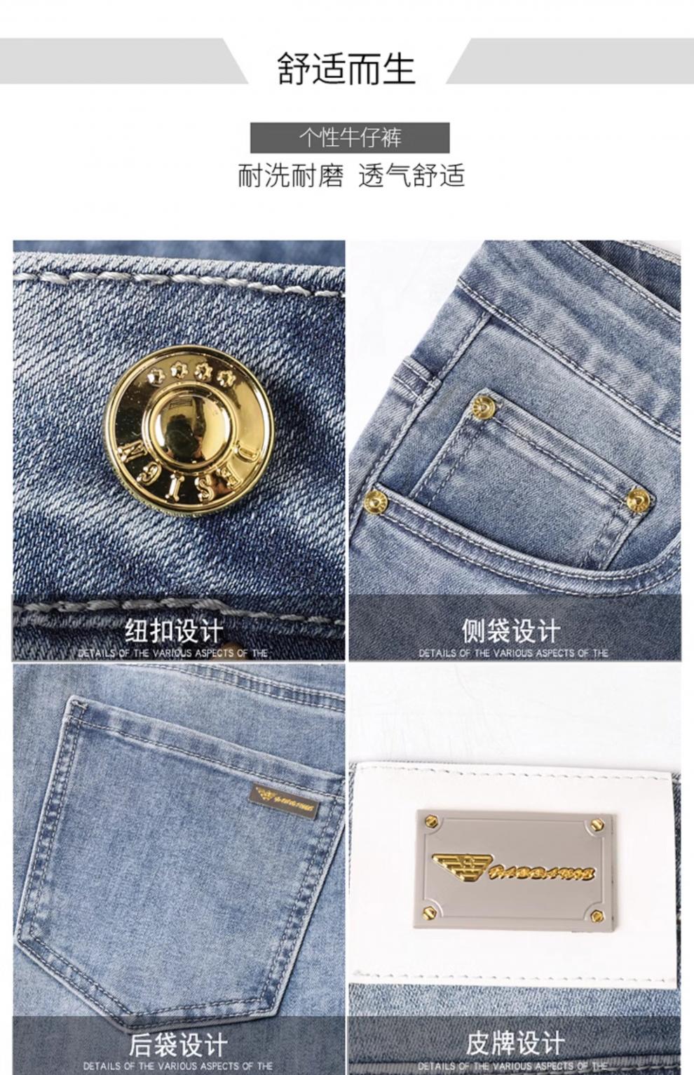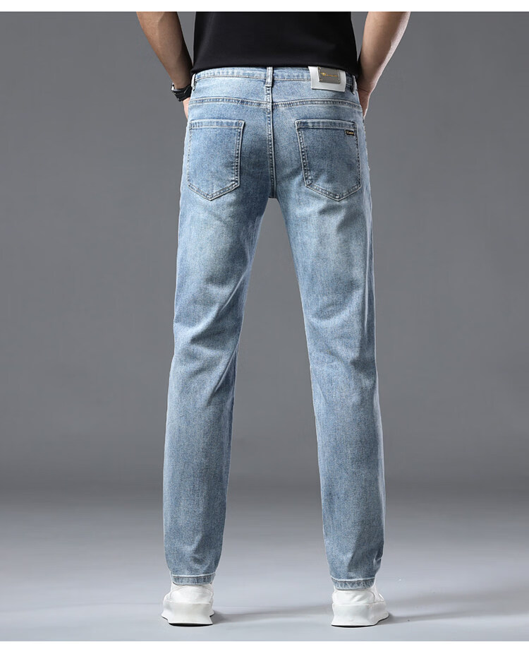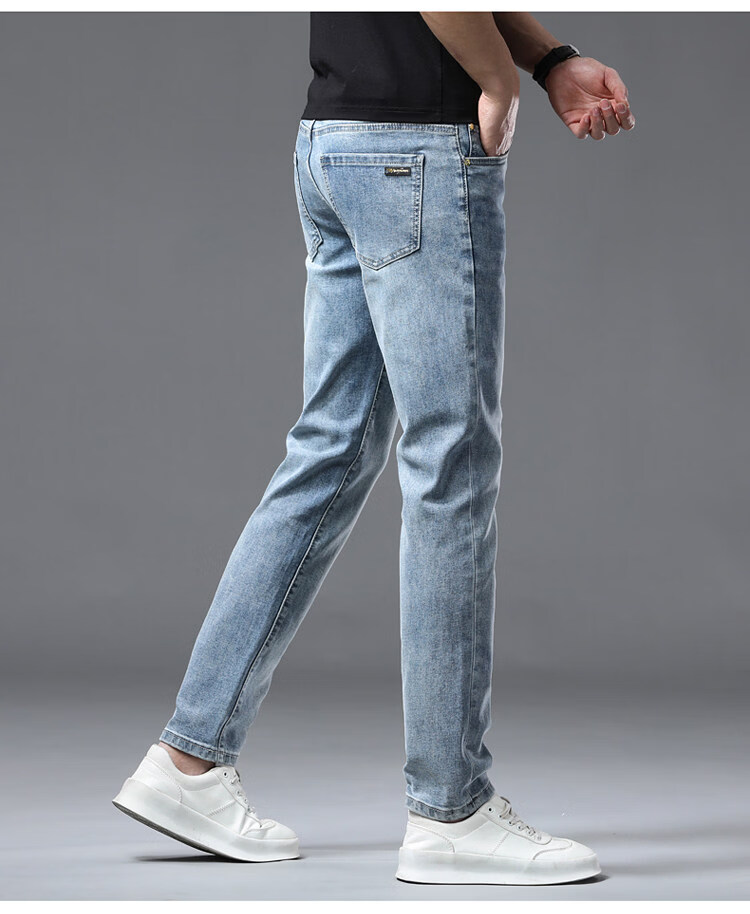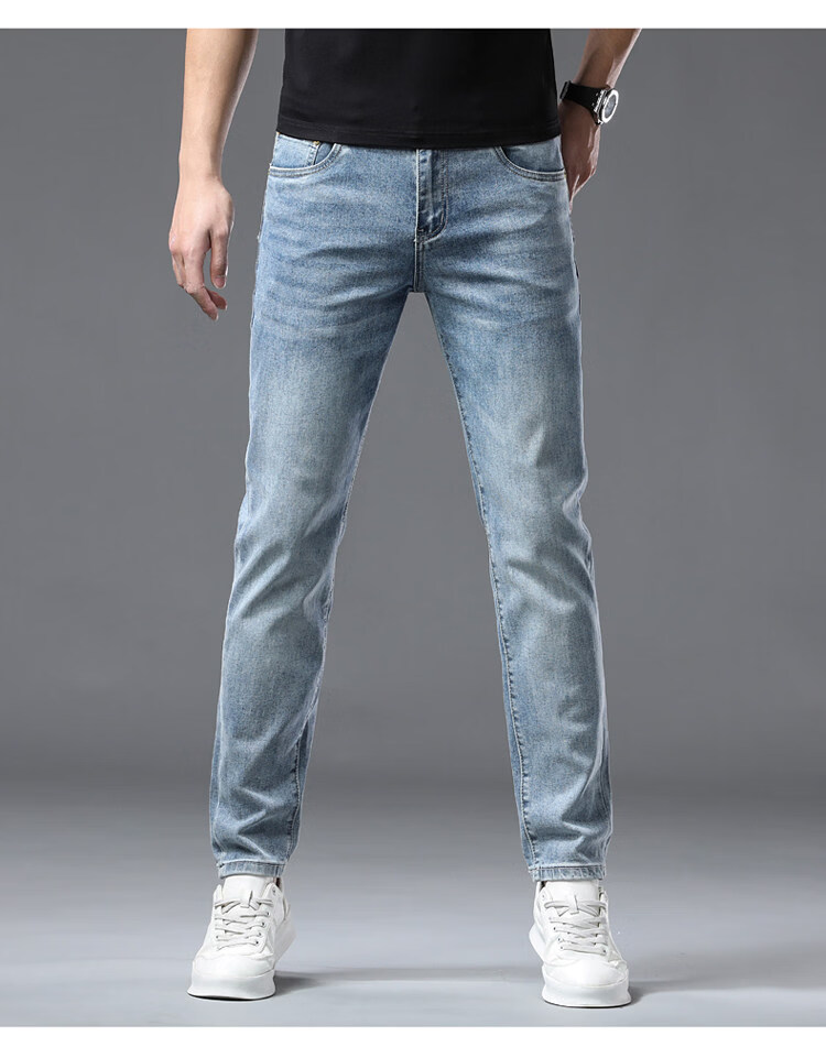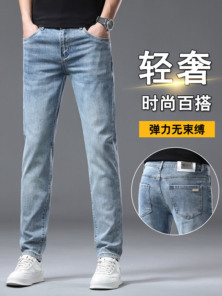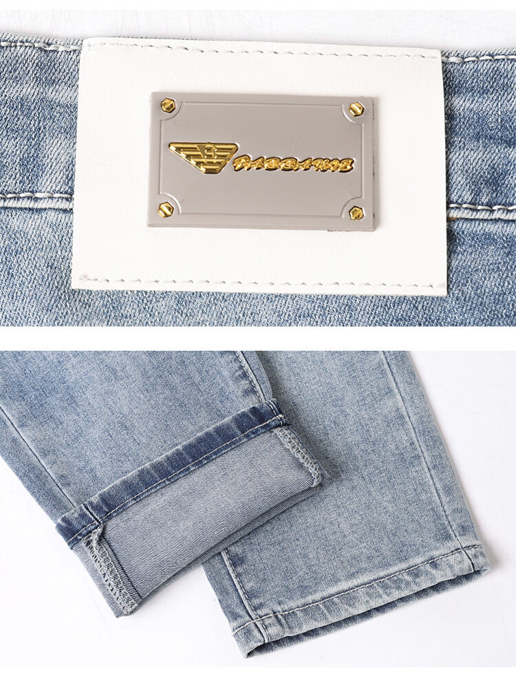 阿玛尼(ARMANI)2026新款男士牛仔裤修身小脚夏季薄款中腰弹力百搭裤子 浅蓝色 38