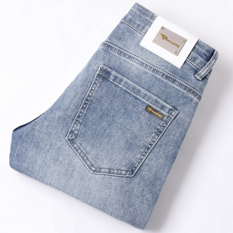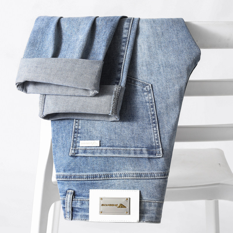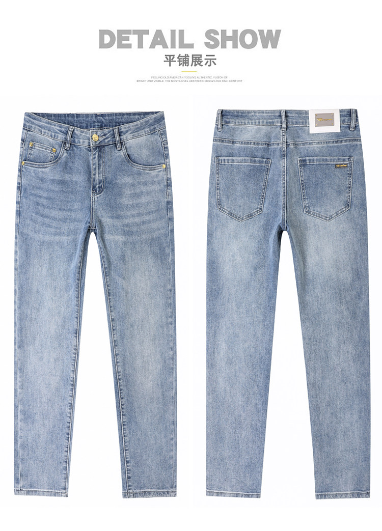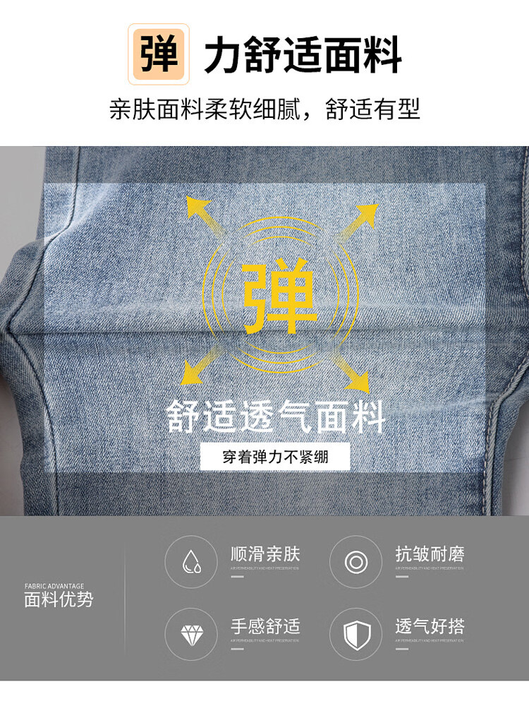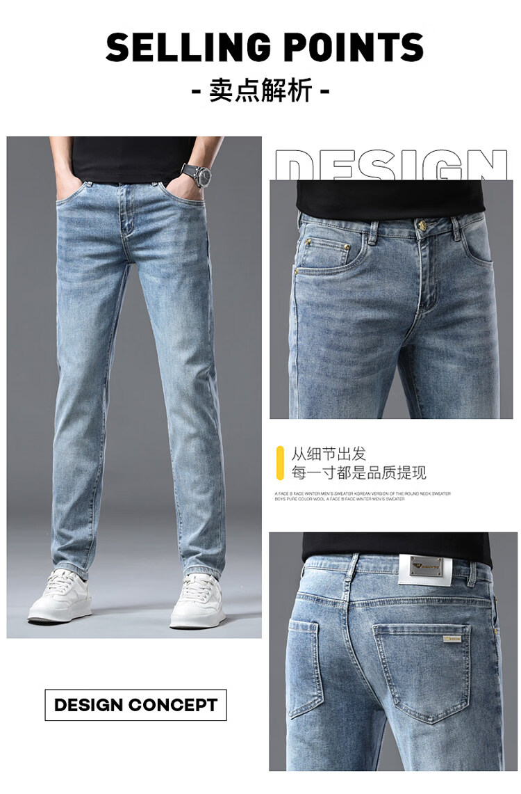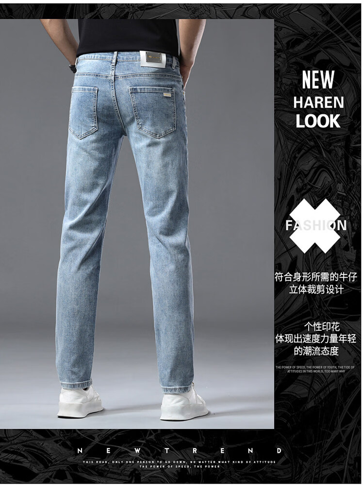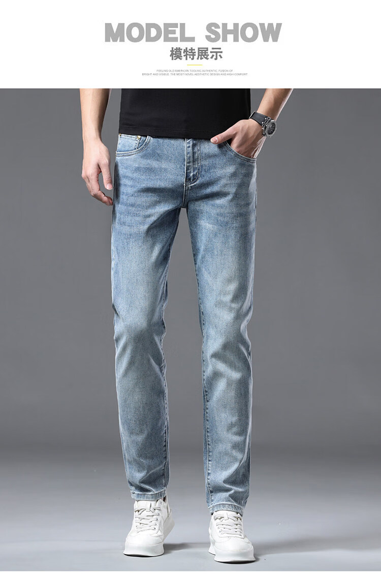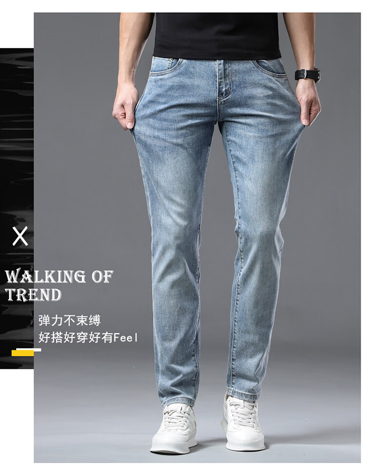 阿玛尼(ARMANI)2026新款男士牛仔裤修身小脚夏季薄款中腰弹力百搭裤子 浅蓝色 38