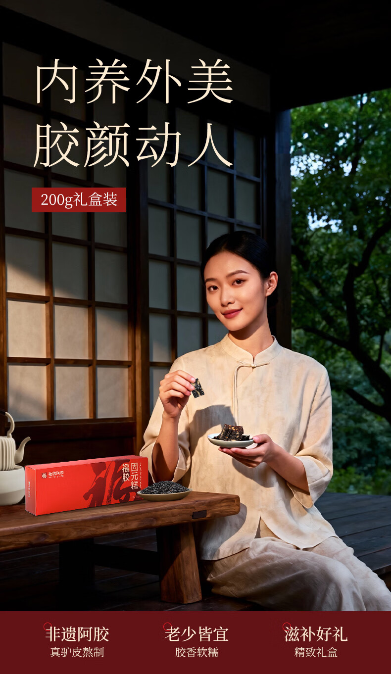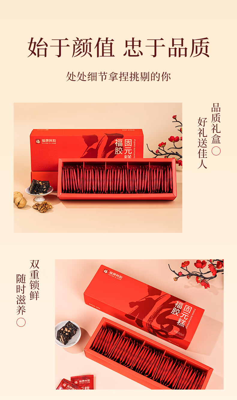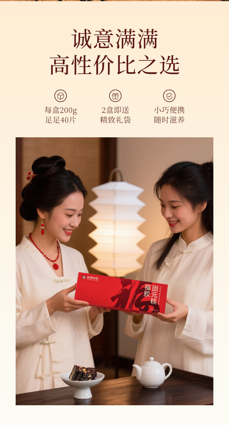 福牌阿胶 阿胶固元糕200g礼盒装送礼阿胶糕山东东阿镇送长辈母亲节礼物 200g*4盒 【送礼袋】