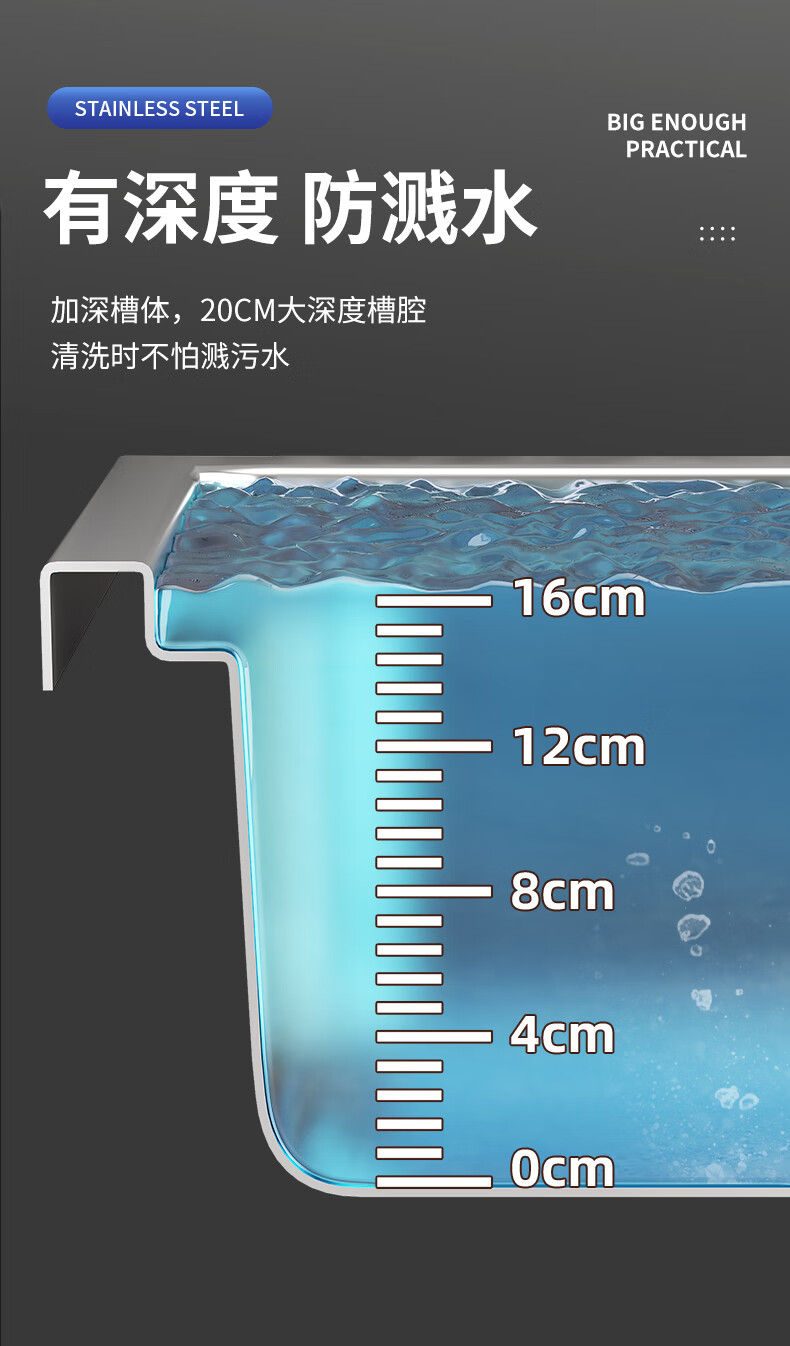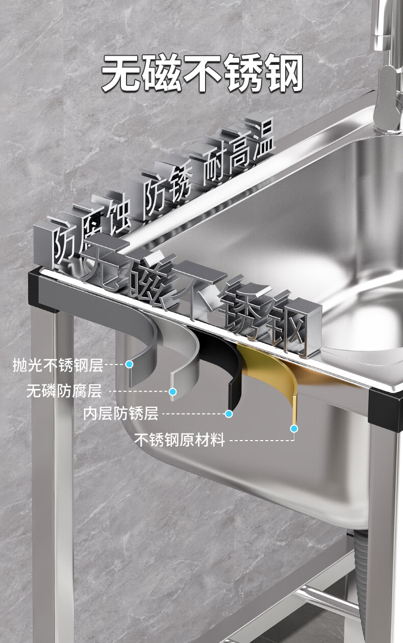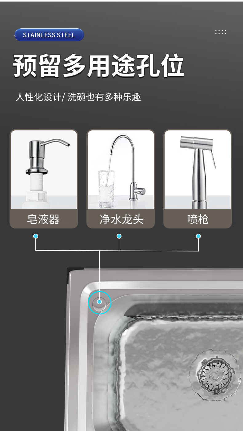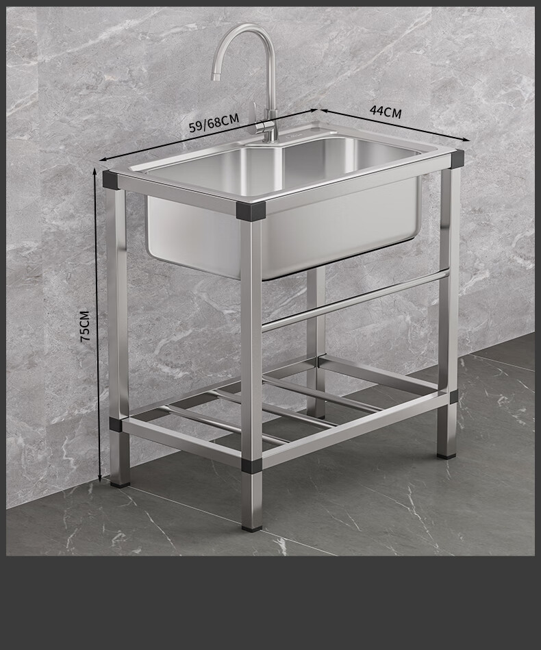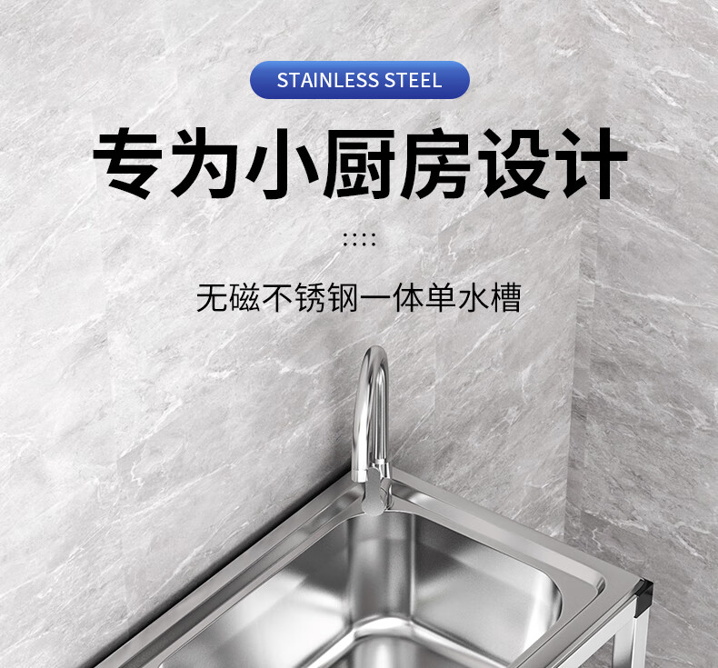 胖东来同款品质代购洗菜盆厨房J加厚简易304不锈钢水槽大单槽双槽 304钢53*38配冷热龙头