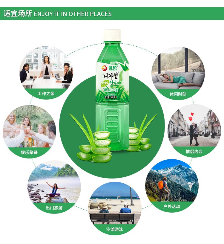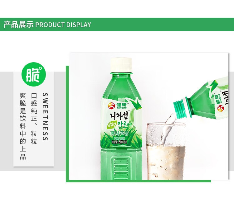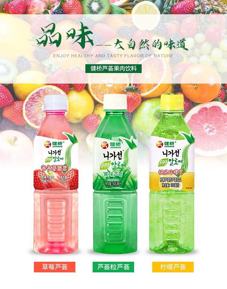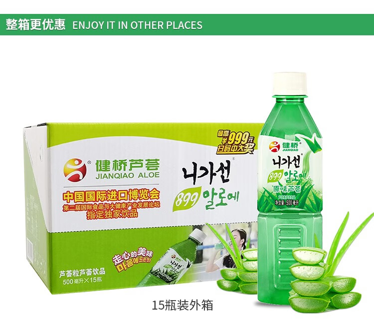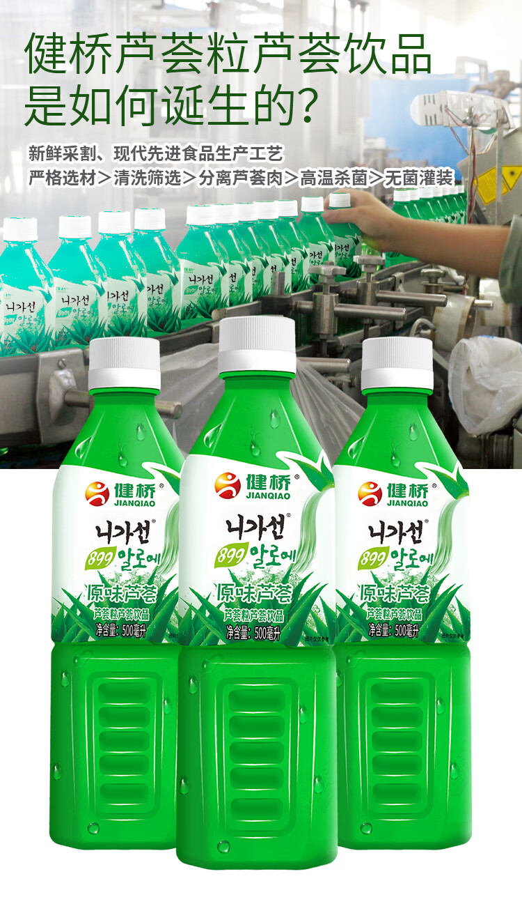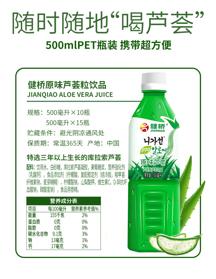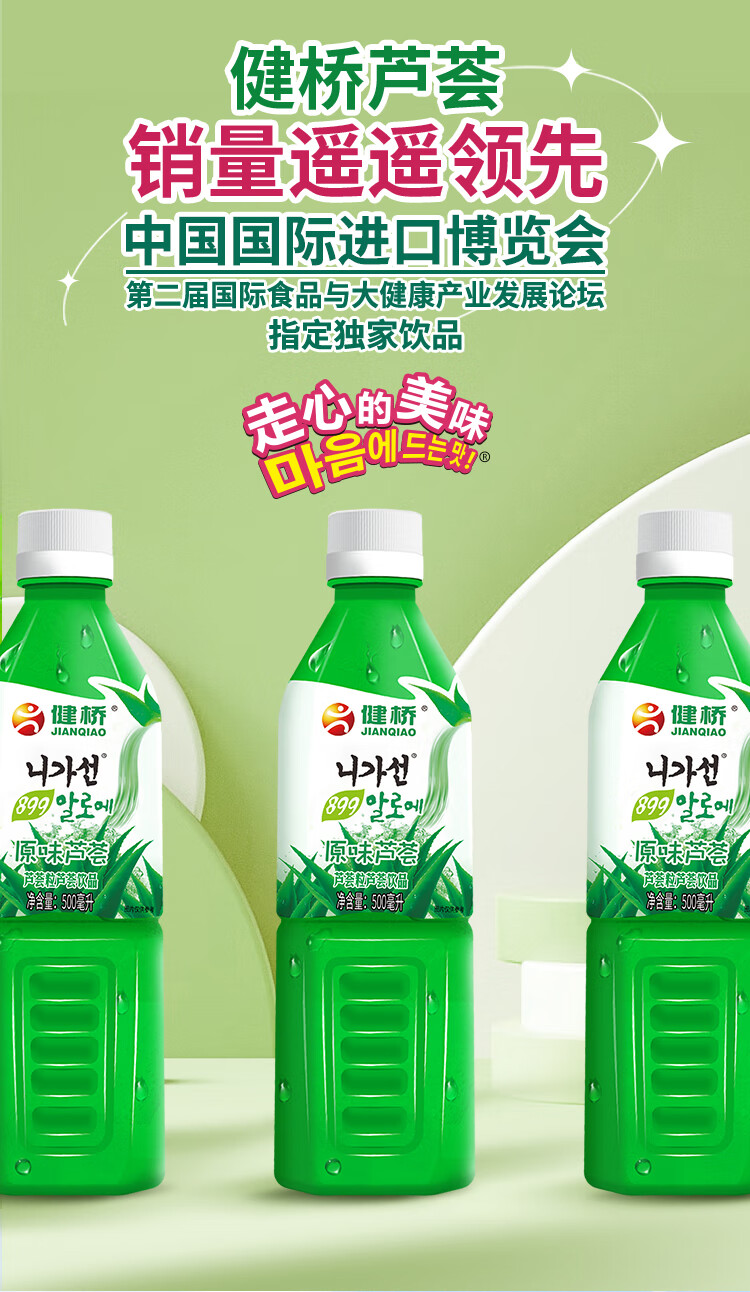 健桥 芦荟汁芦荟果粒饮料饮品零脂肪健康芦荟植物饮料饮品500ml/瓶 500mlX6瓶
