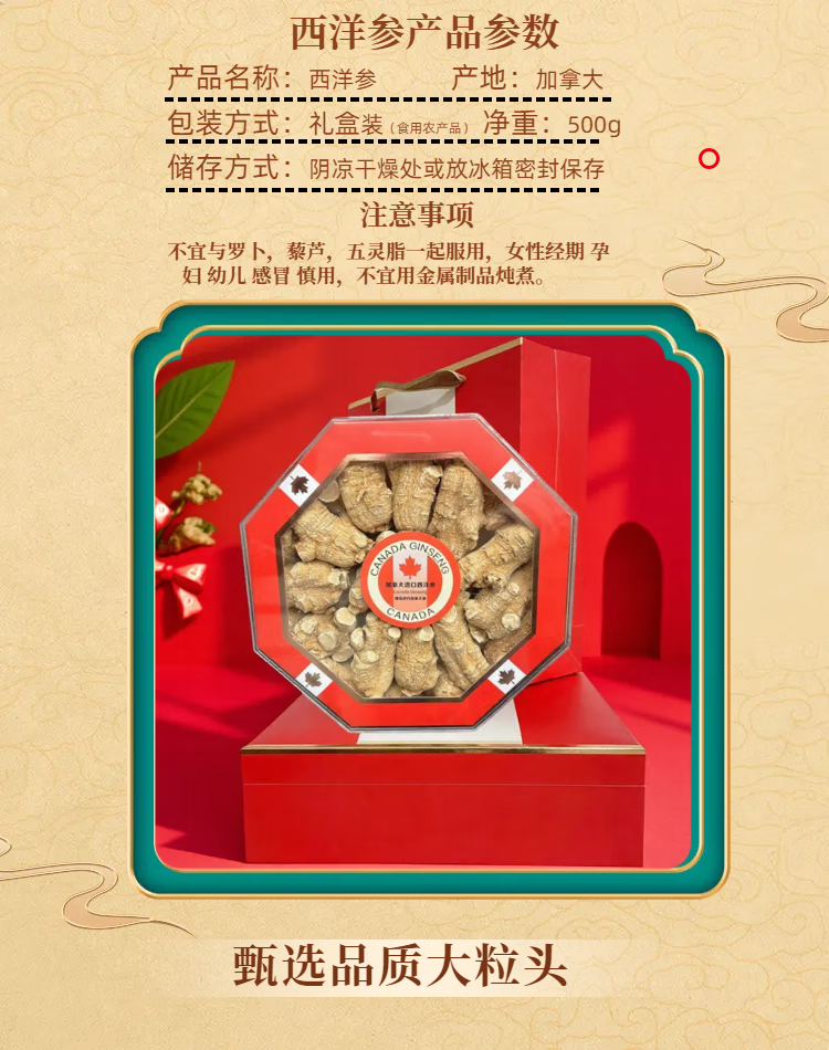 西洋参礼盒装正宗加拿大原装进口西洋参切片礼盒装送长辈高档礼品 加拿大西洋参约35g/粒 500g*1盒