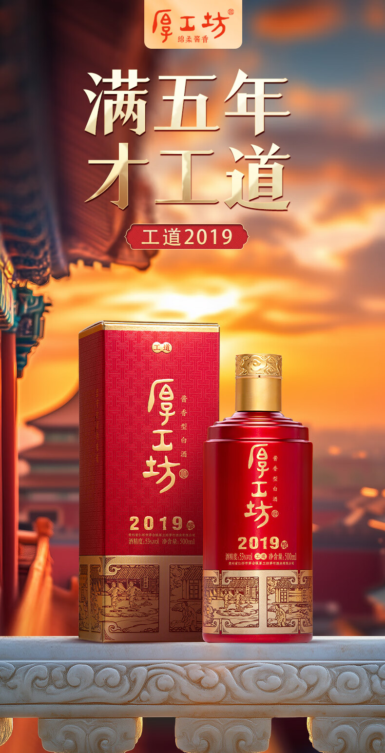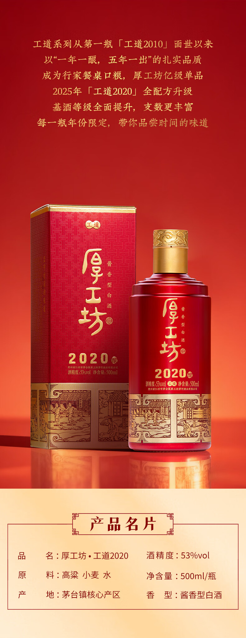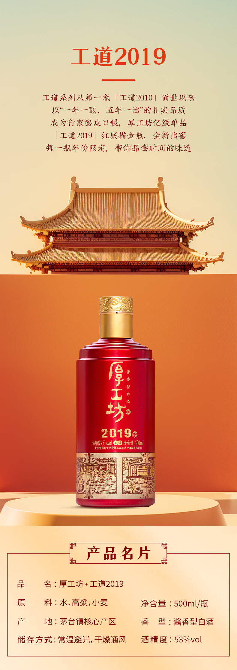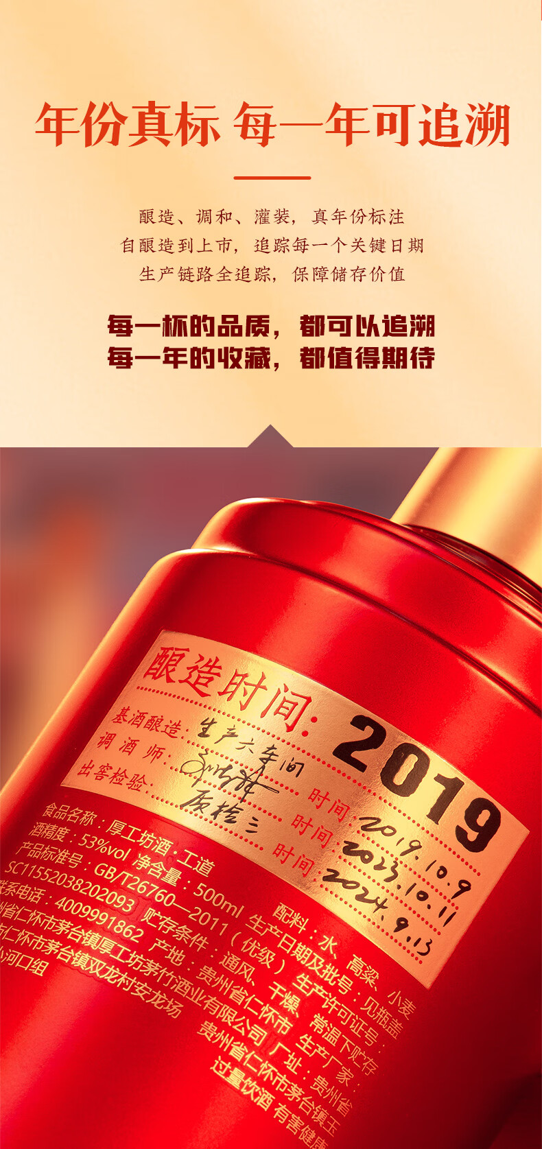 厚工坊【养酒必备】工道2020 酱香型53度白酒 贵州酱酒大曲坤沙酒纯粮酒 53度 500mL 6瓶 (工道19礼盒3套)