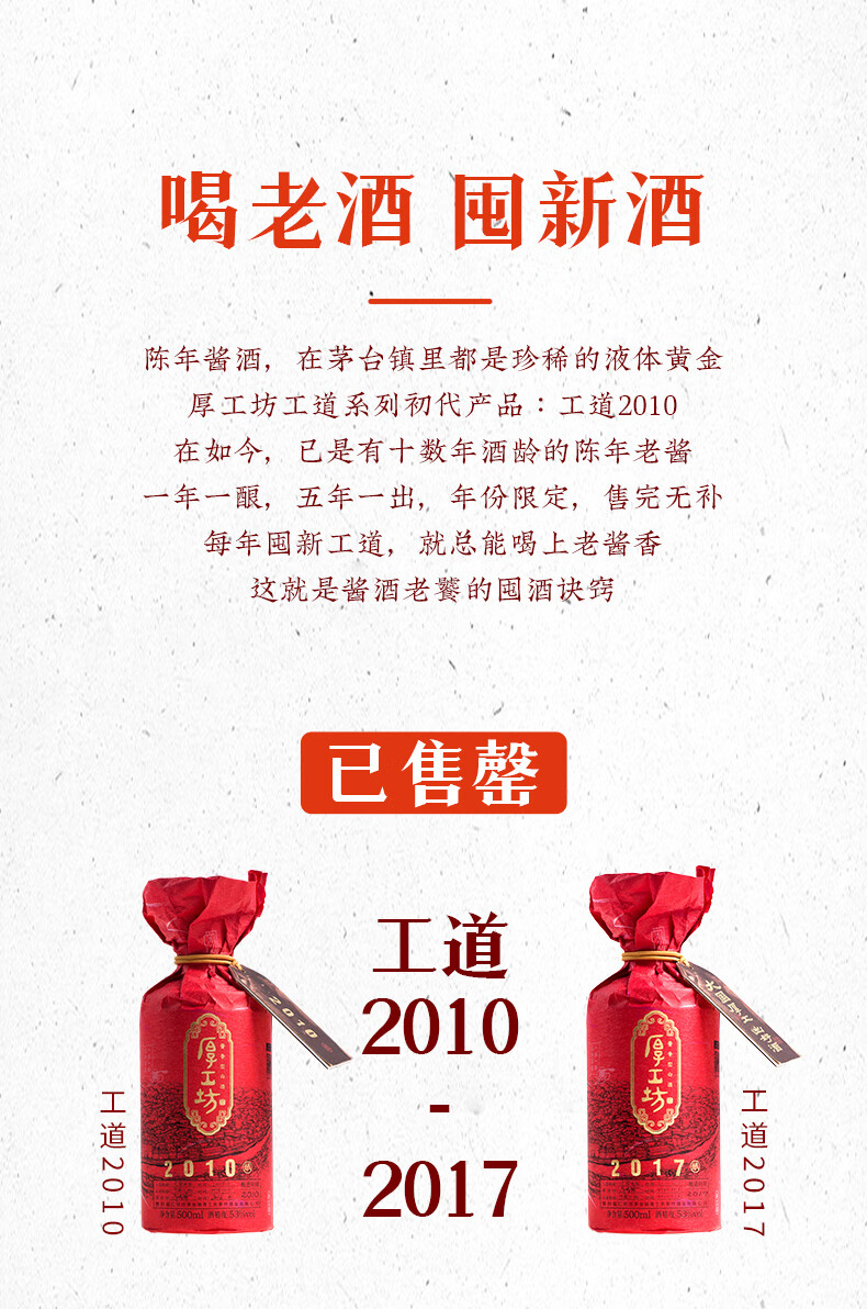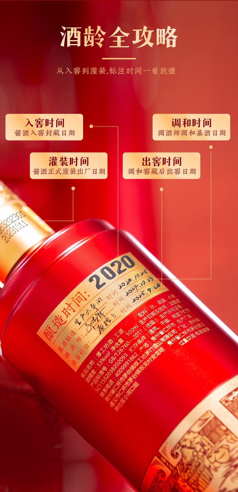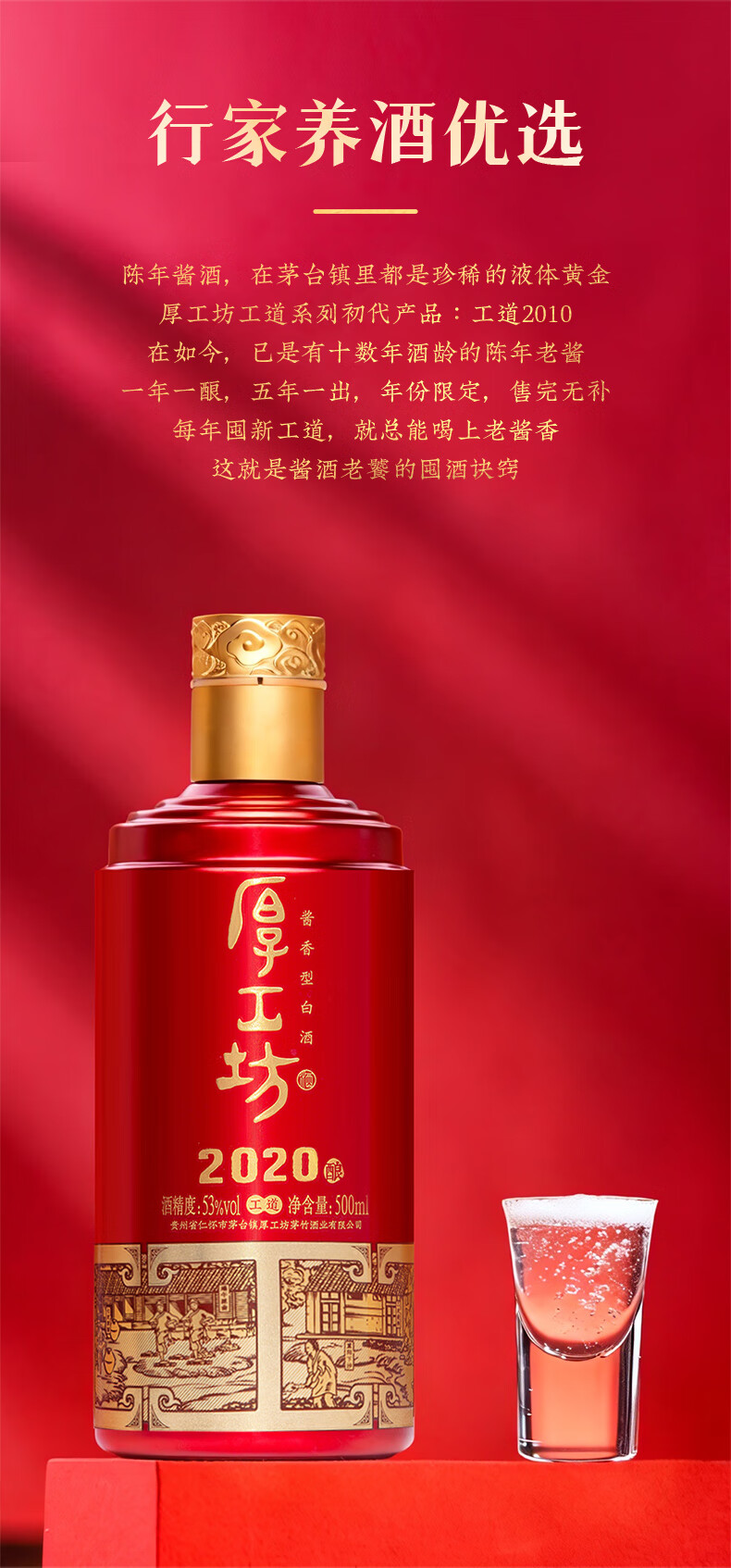厚工坊【养酒必备】工道2020 酱香型53度白酒 贵州酱酒大曲坤沙酒纯粮酒 53度 500mL 6瓶 (工道19礼盒3套)