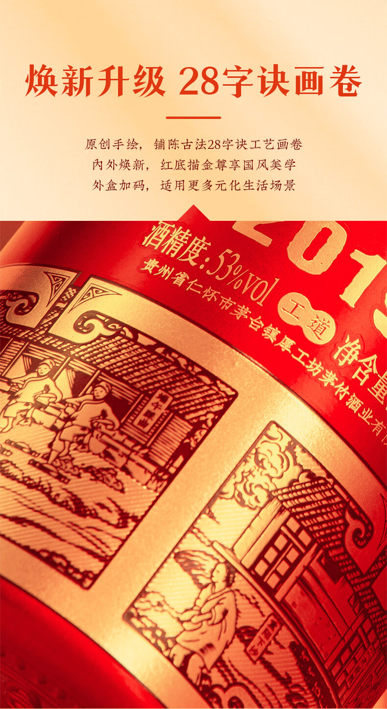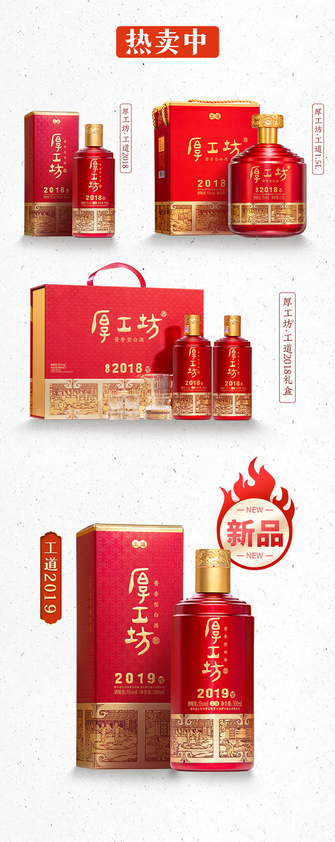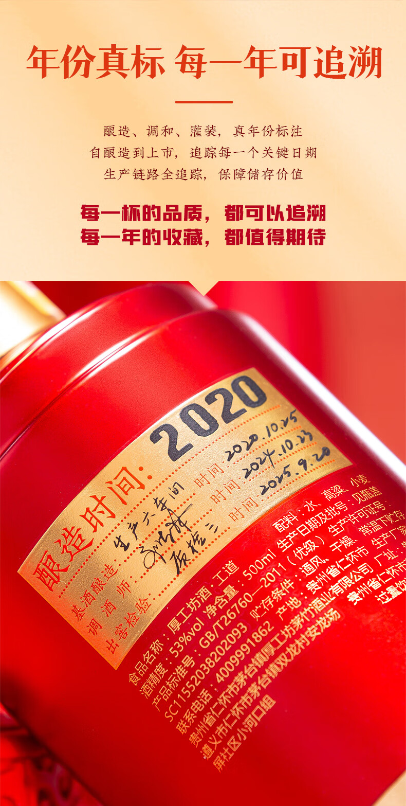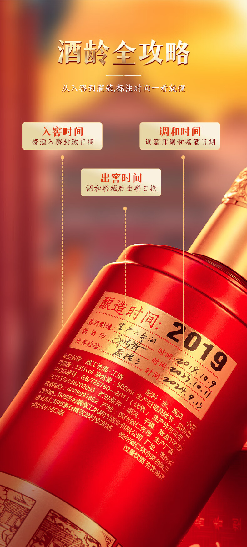厚工坊【养酒必备】工道2020 酱香型53度白酒 贵州酱酒大曲坤沙酒纯粮酒 53度 500mL 6瓶 (工道19礼盒3套)