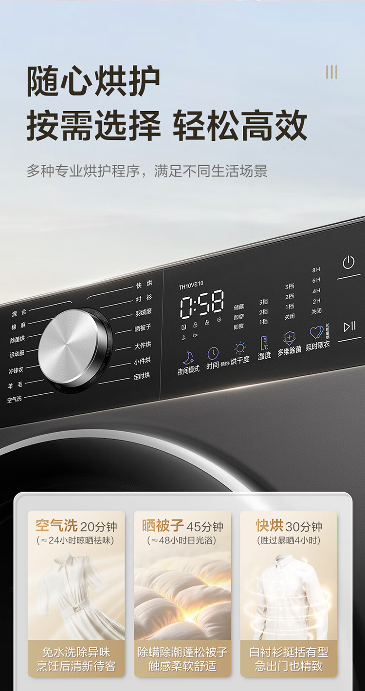 小天鹅(LittleSwan)小乌梅3.0轻享版 10KG热泵烘干机 变频 羊毛蓝标 除菌除螨 多重过滤 TH10VE10 以旧换新 京东自营