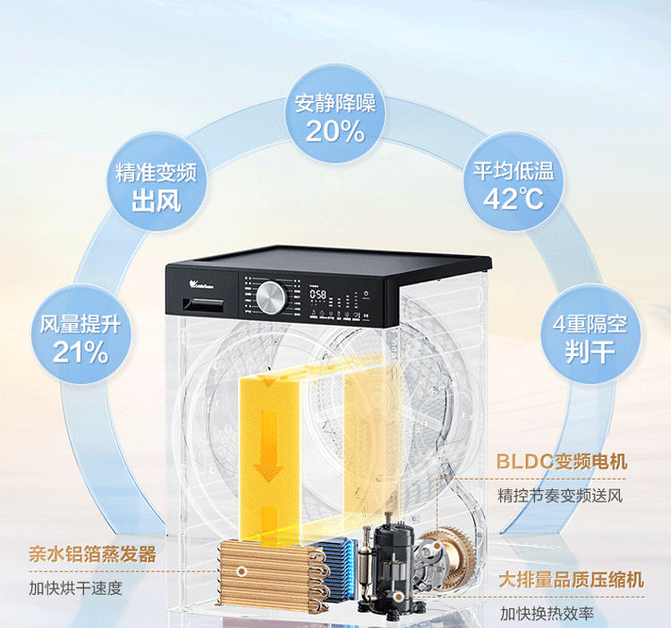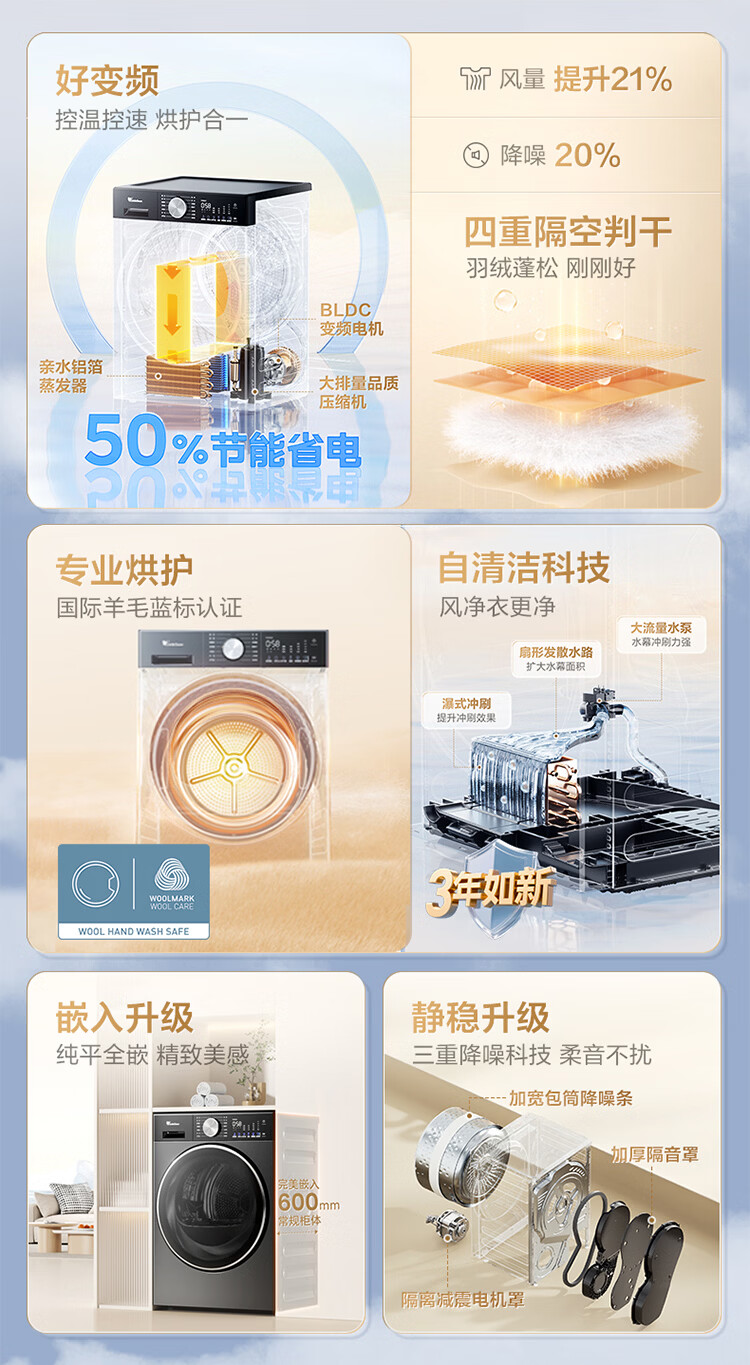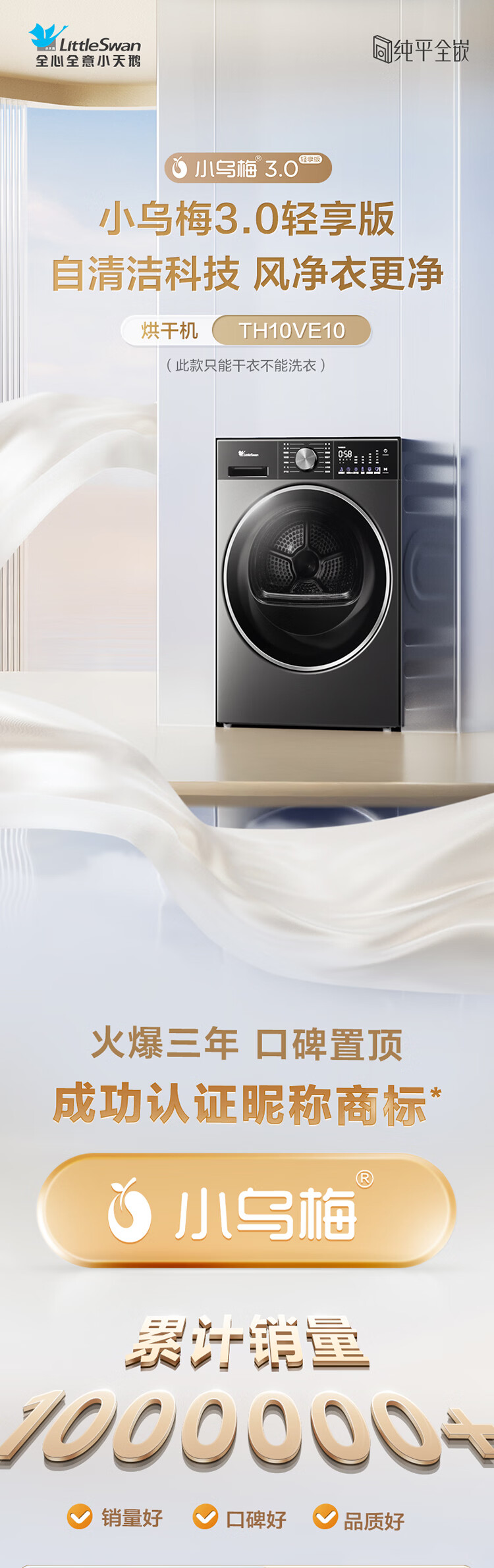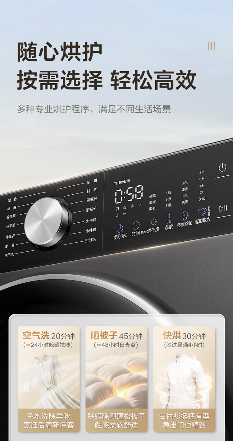 小天鹅(LittleSwan)小乌梅3.0轻享版 热泵烘干机家用烘衣服 10KG变频 羊毛蓝标 除菌螨 静音 AI判干 TH10VE10京东自营