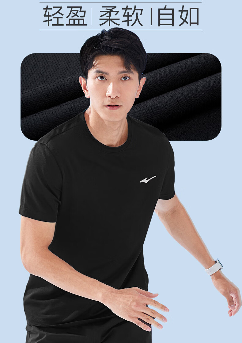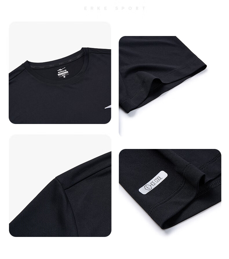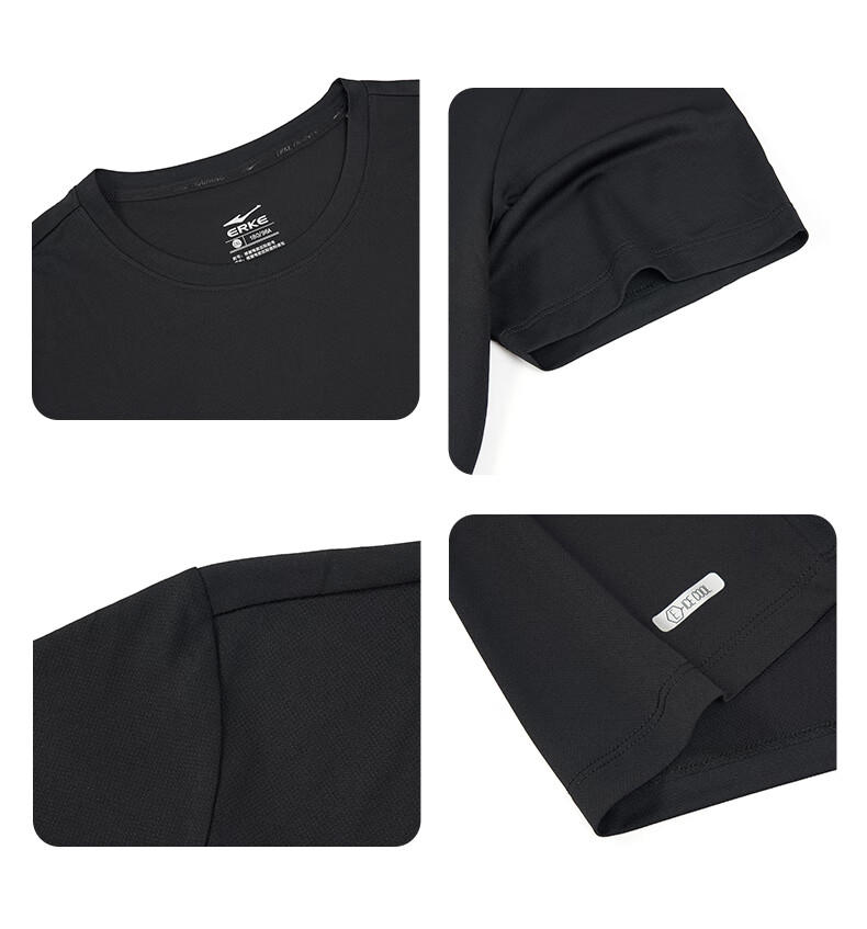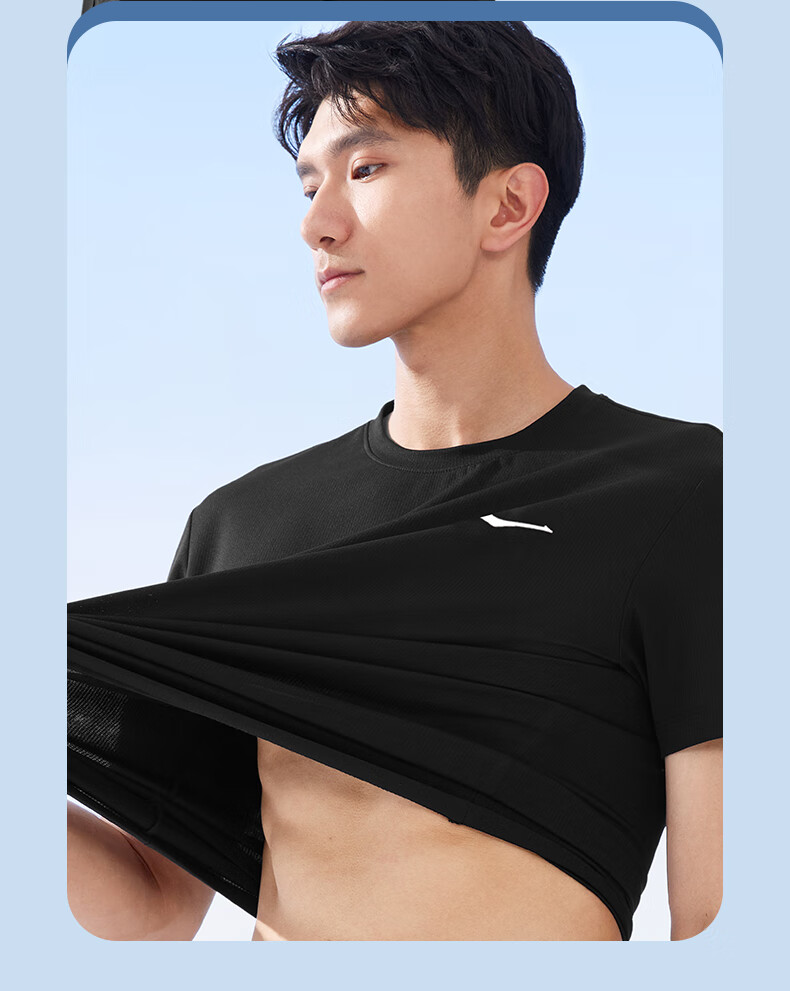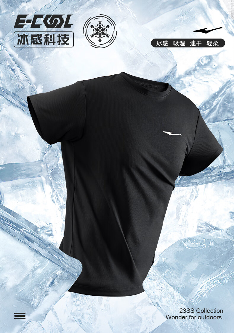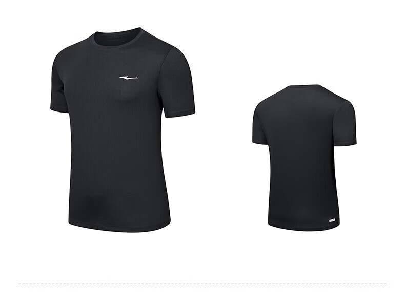 鸿星尔克t恤男夏季新款透气冰感吸汗跑步健身运动男士T恤衫速干上衣短袖男 【速干短T】正黑 XL