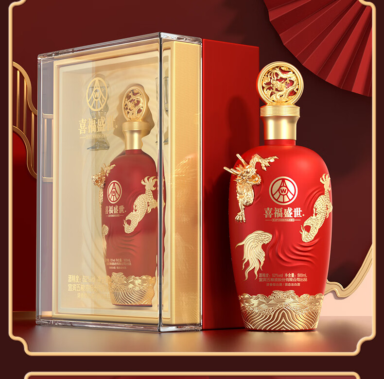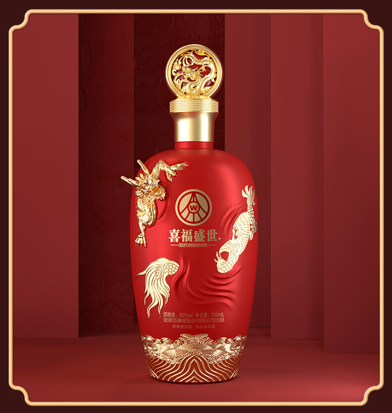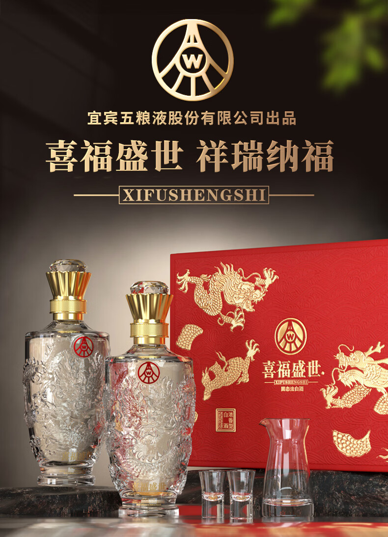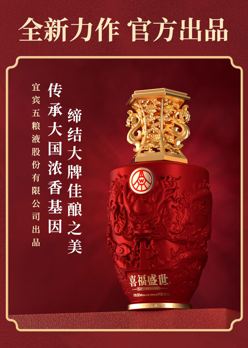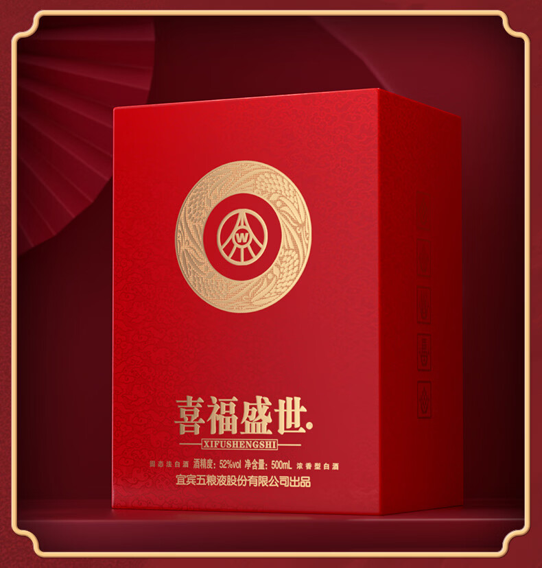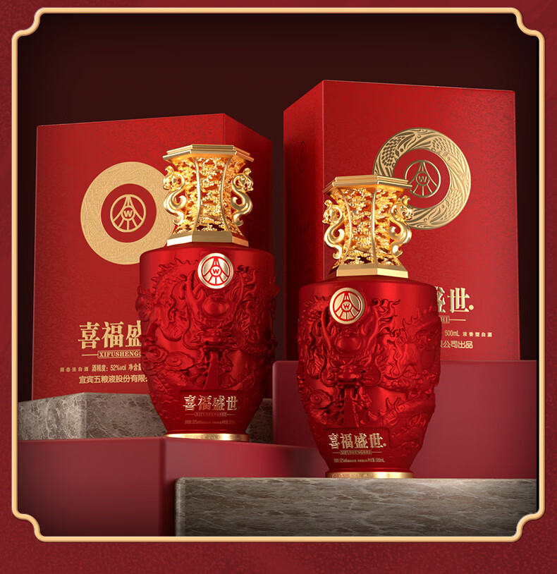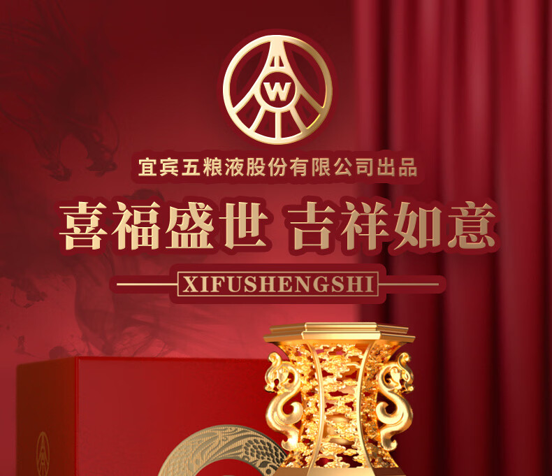 五粮浓香五粮液股份出品 官方授权 浓香型优级白酒 喜福盛世 52度 500mL 2瓶 吉祥如意双支装