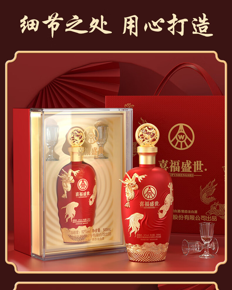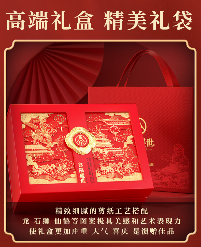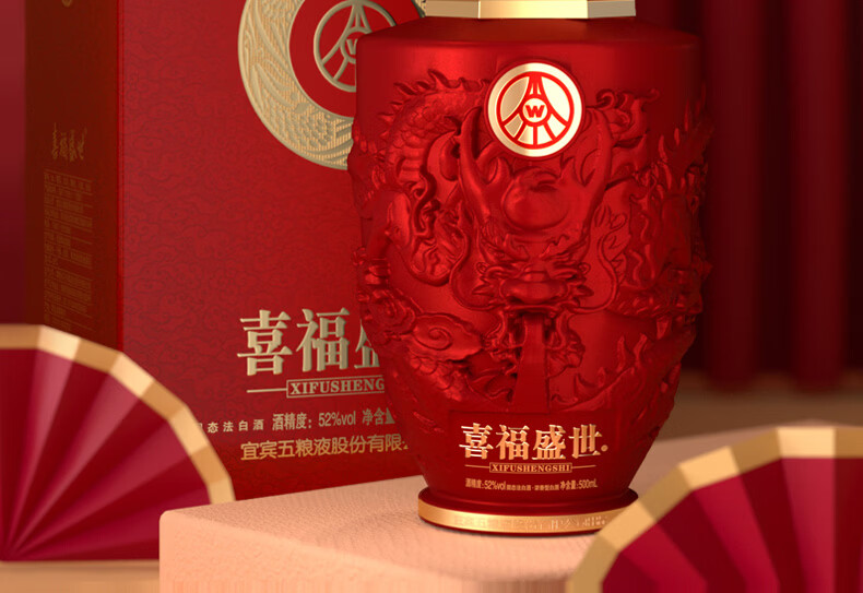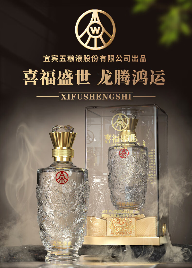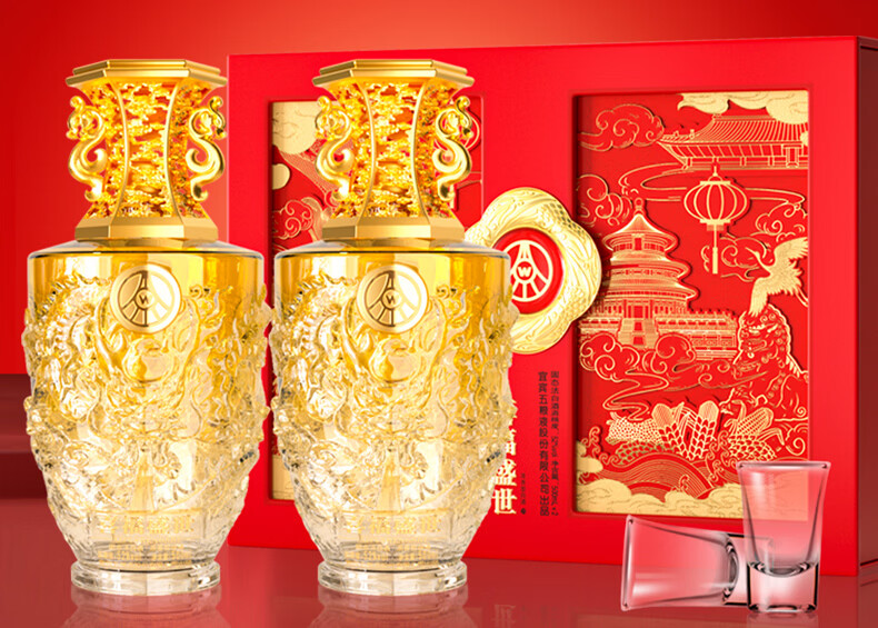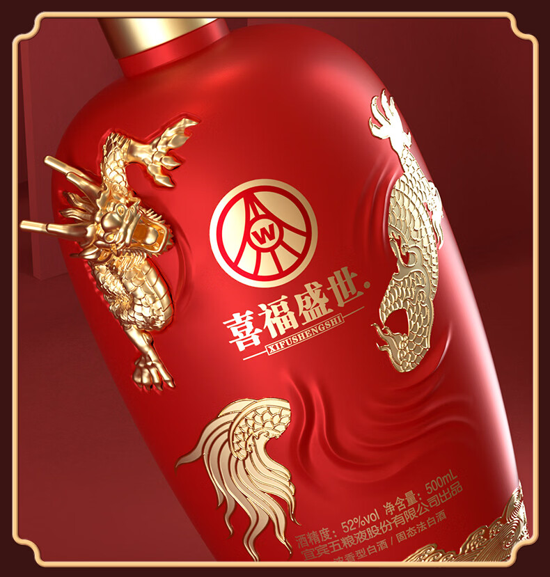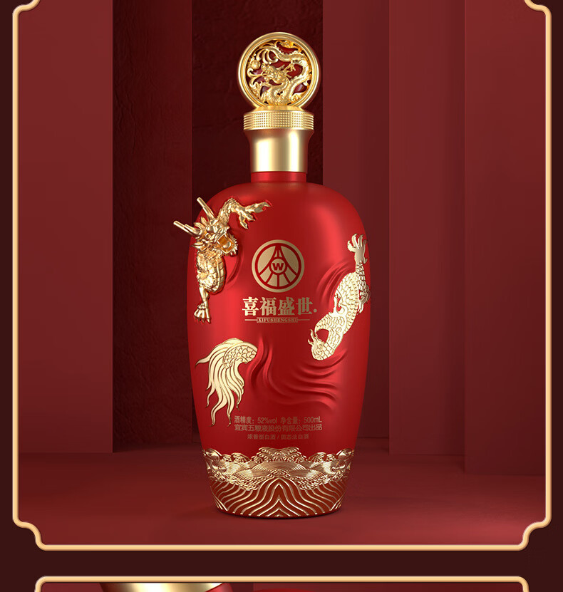 五粮浓香五粮液股份出品 官方授权 浓香型优级白酒 喜福盛世 52度 500mL 2瓶 吉祥如意双支装