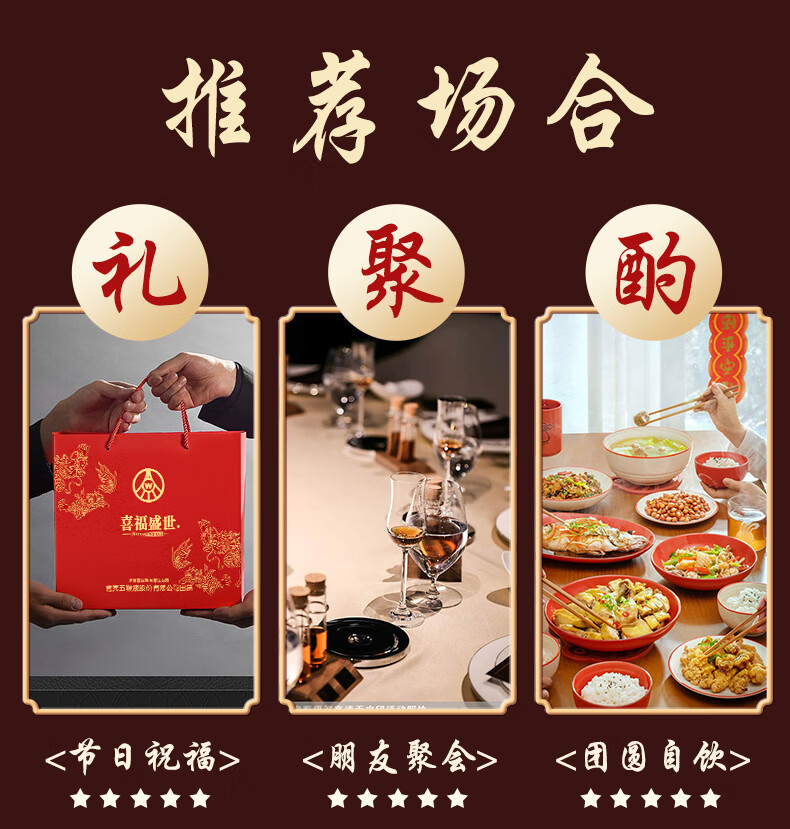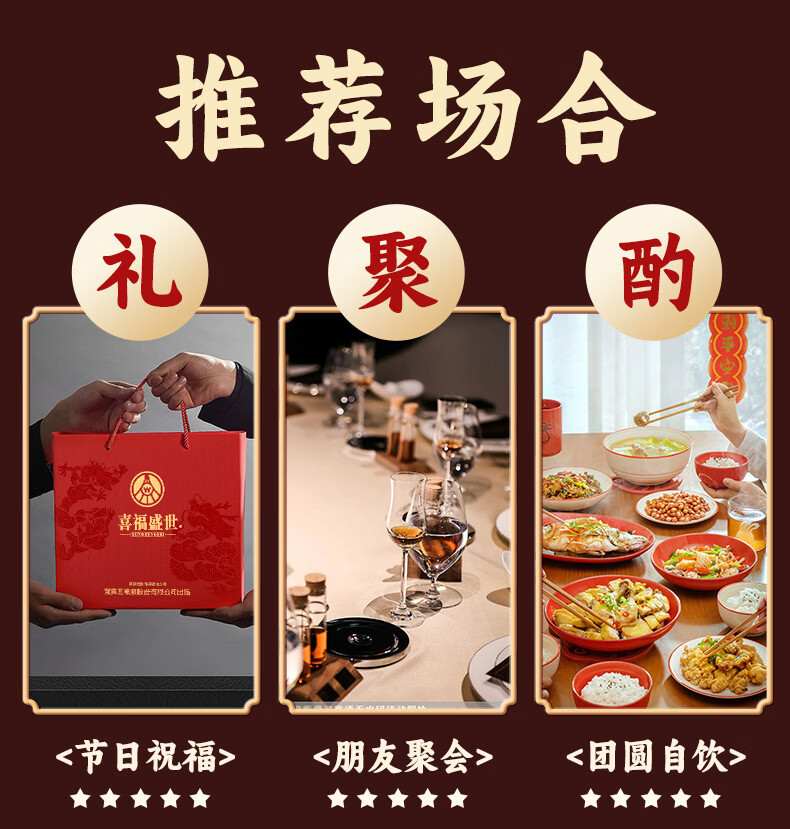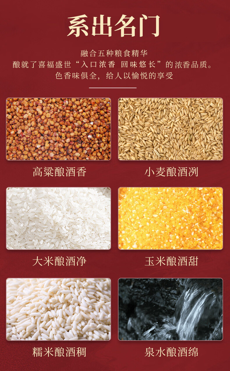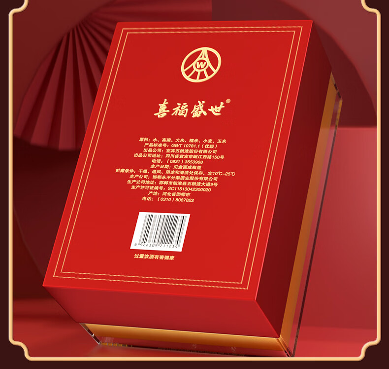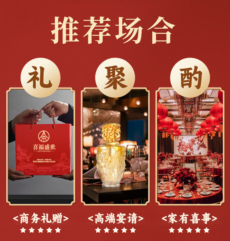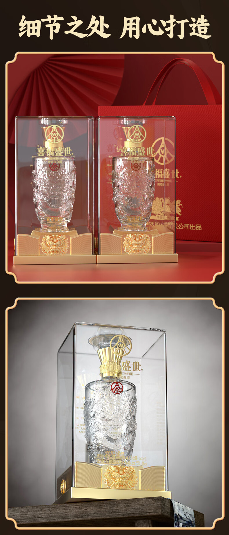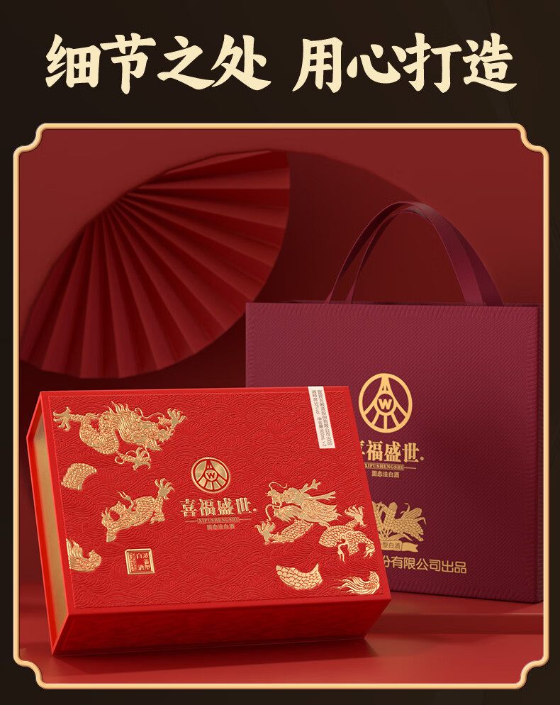 五粮浓香五粮液股份出品 官方授权 浓香型优级白酒 喜福盛世 52度 500mL 2瓶 吉祥如意双支装