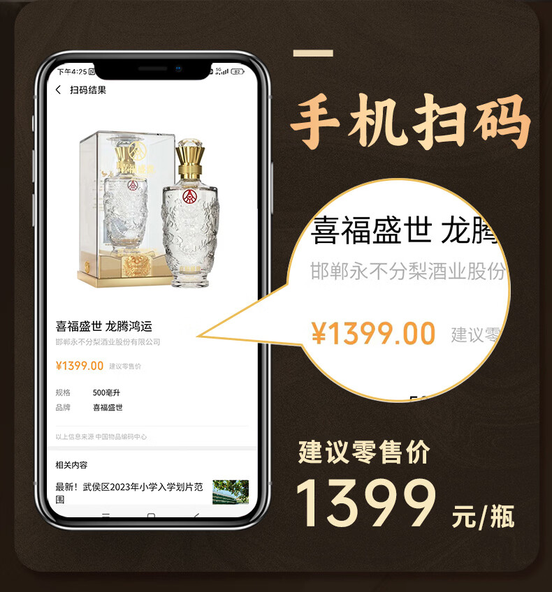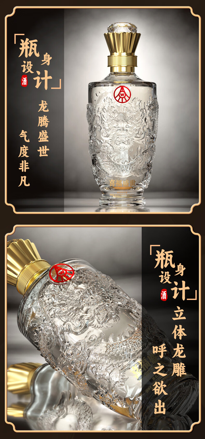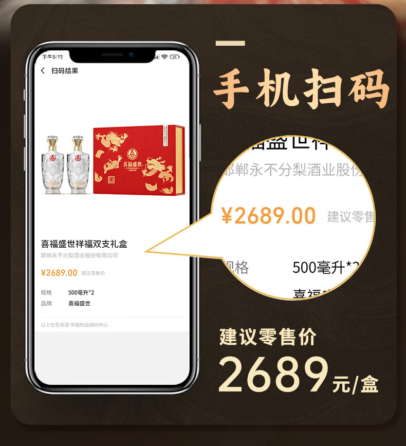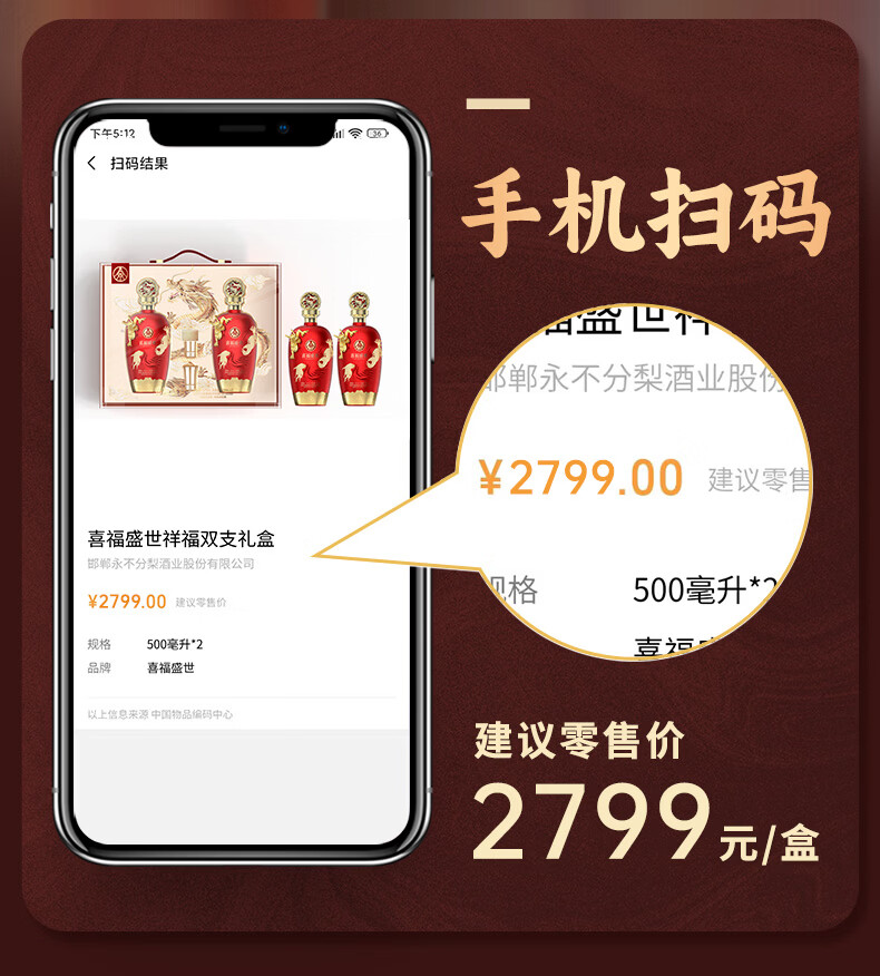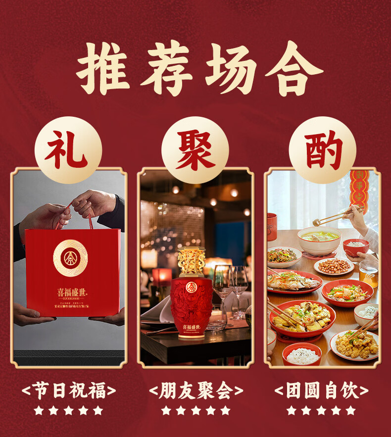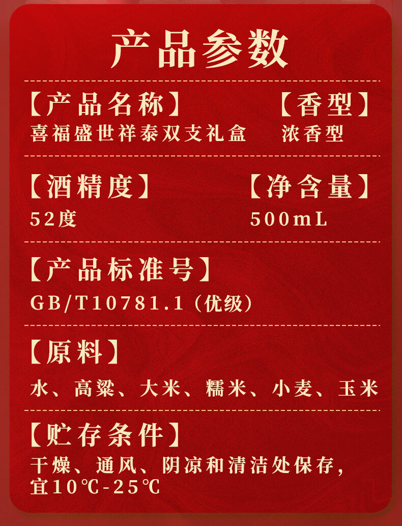 五粮浓香五粮液股份出品 官方授权 浓香型优级白酒 喜福盛世 52度 500mL 2瓶 吉祥如意双支装