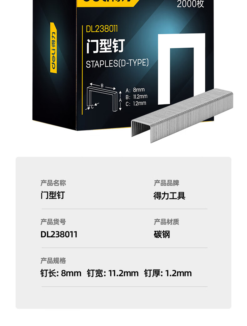 得力(deli)码钉枪门型钉直钉T型钉U型钉I型钉子画框木工2000枚/盒