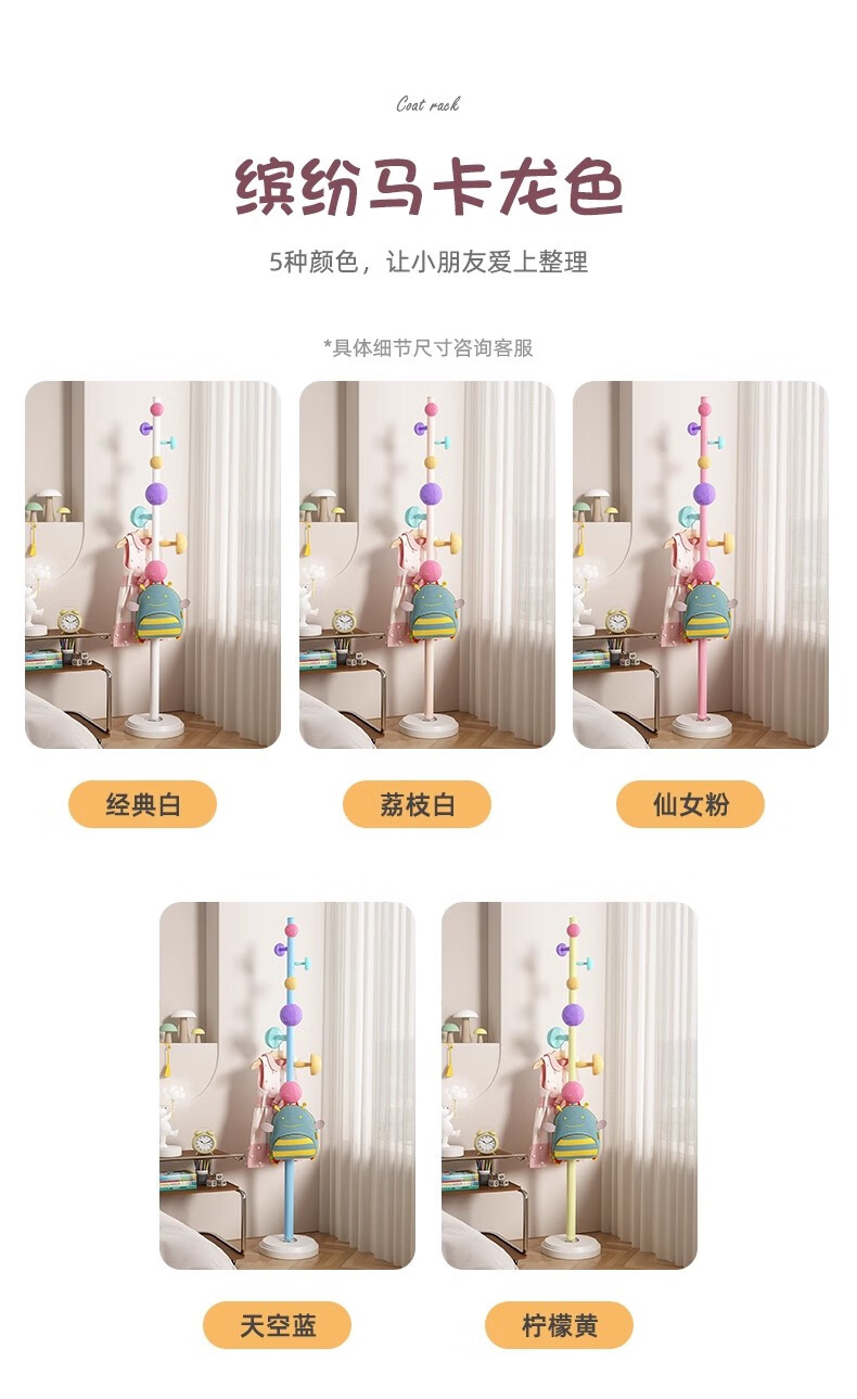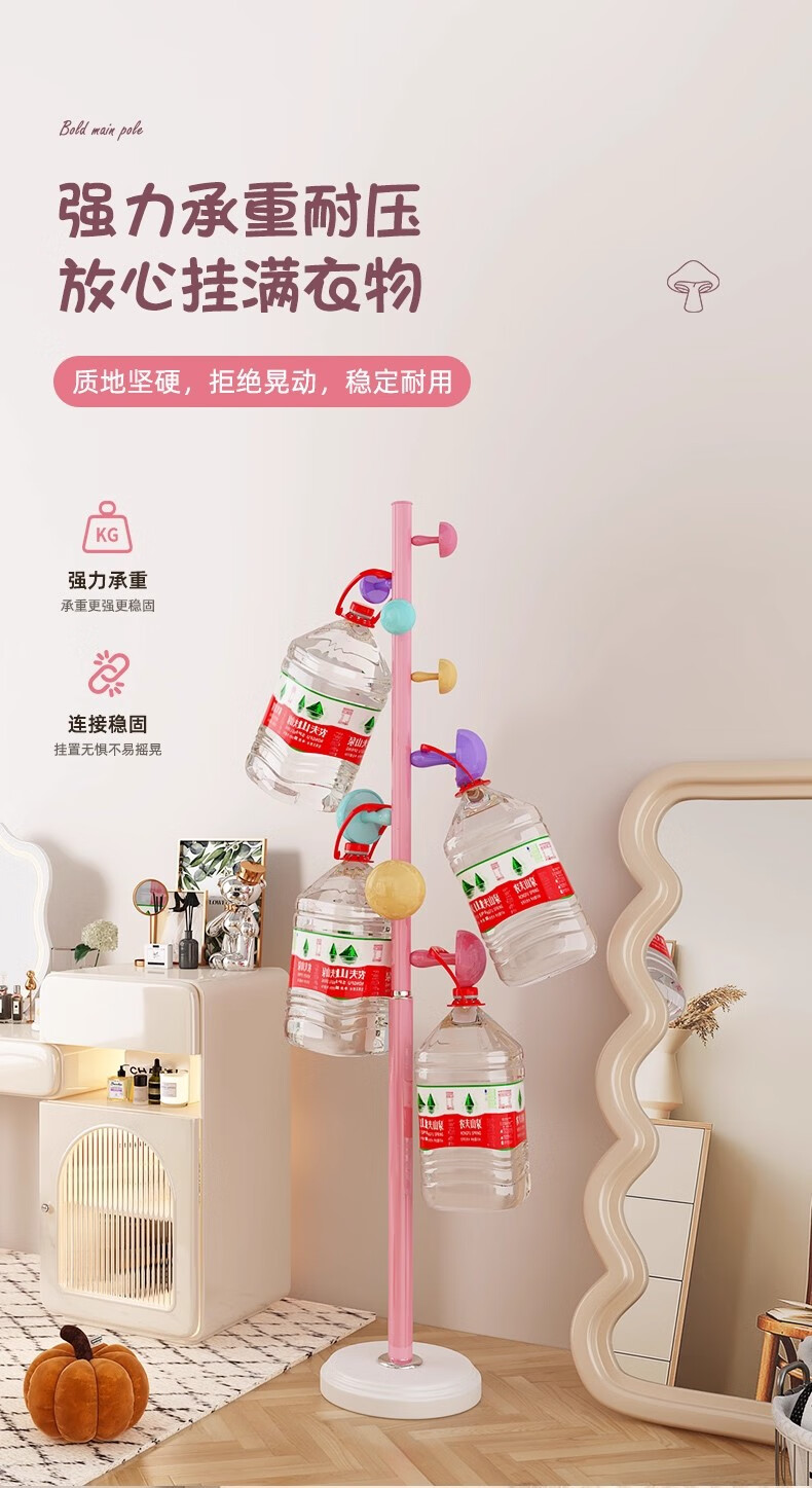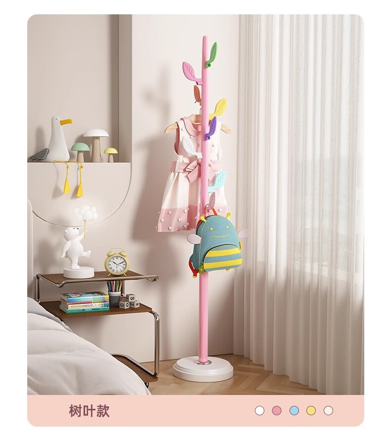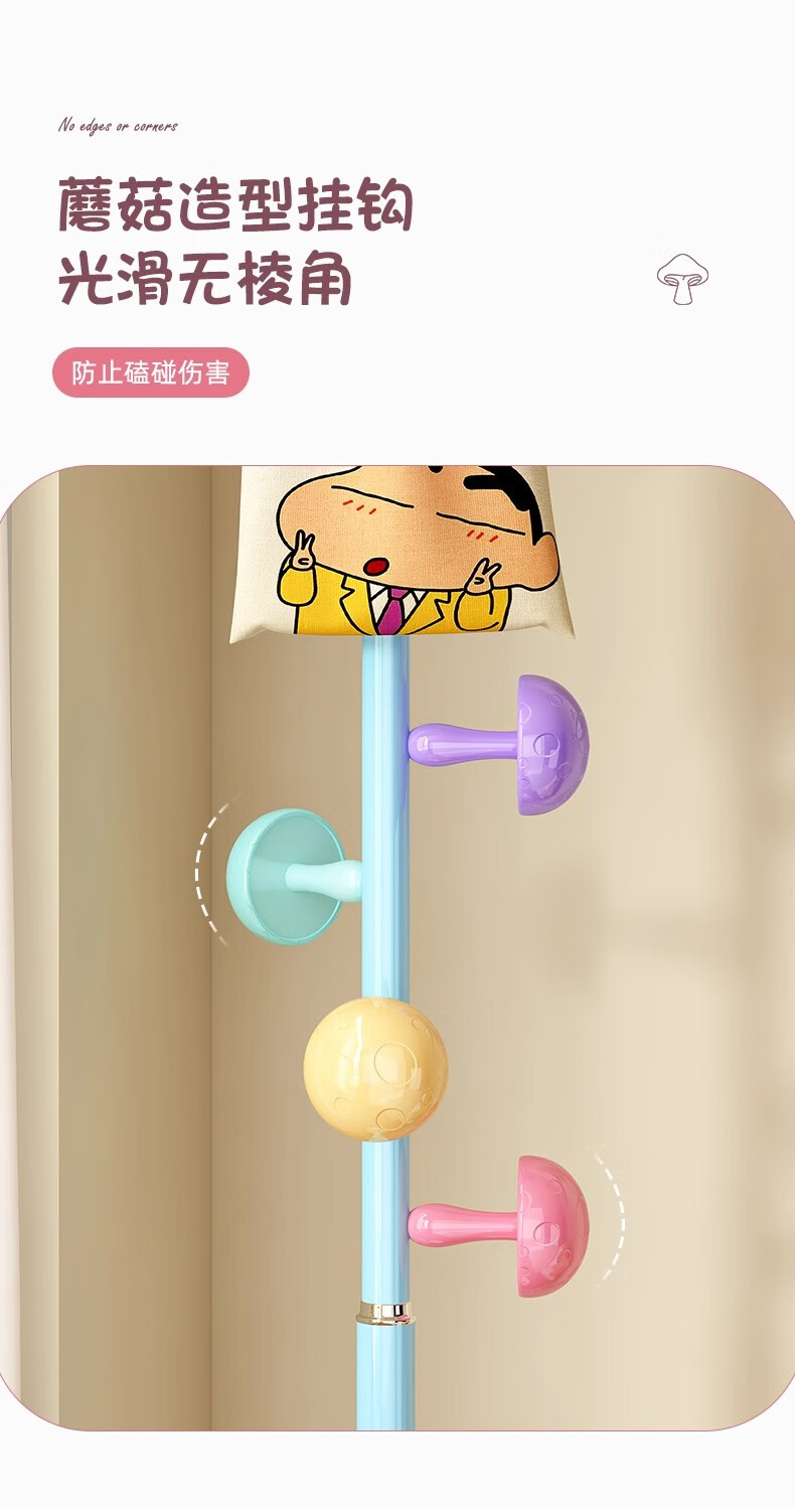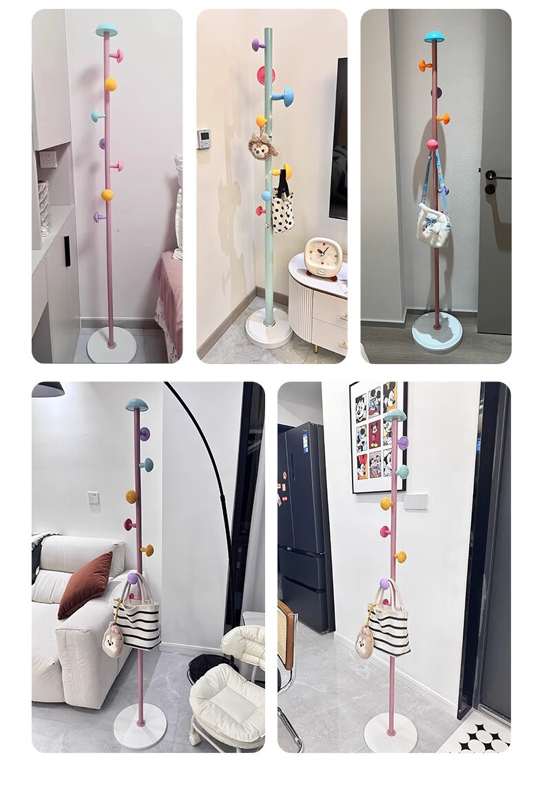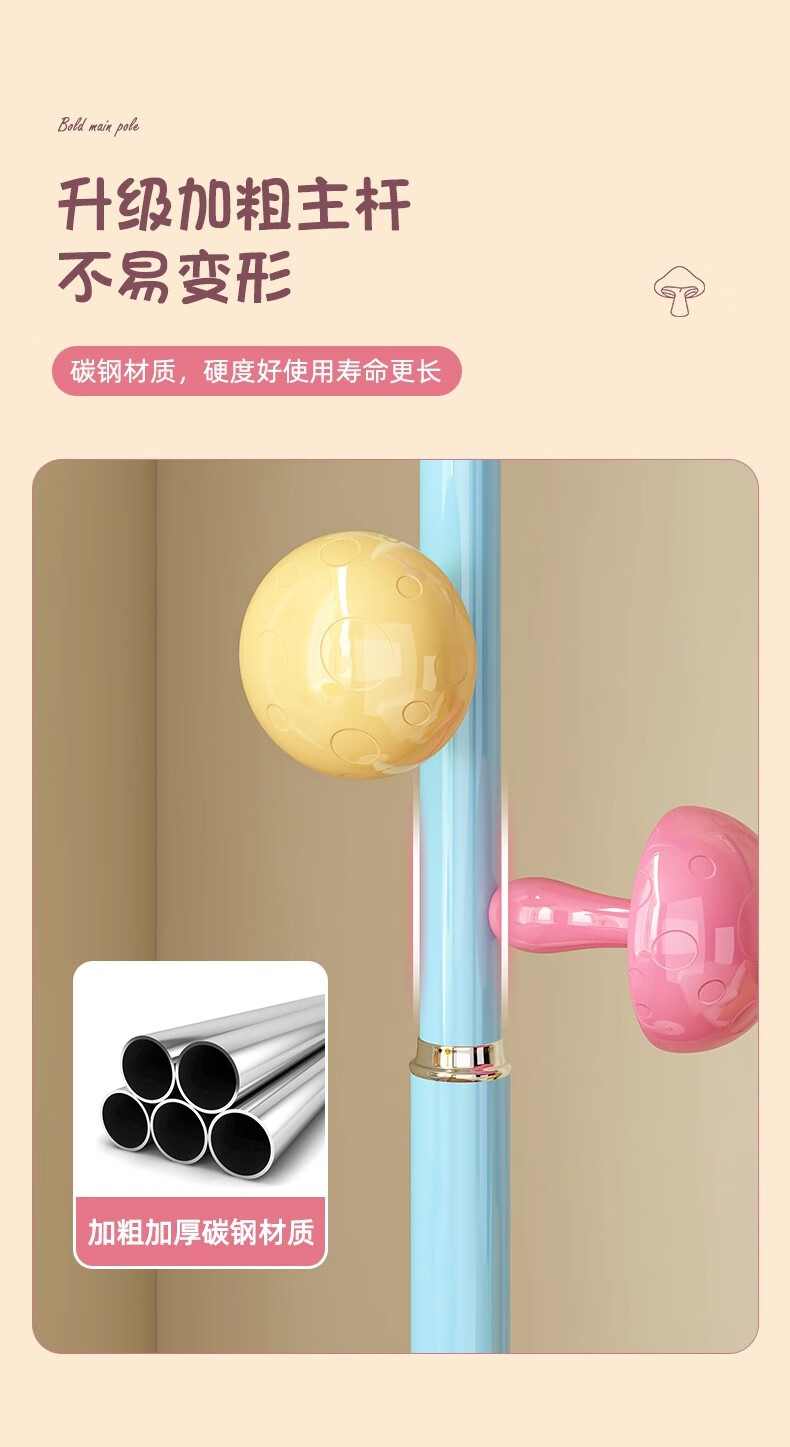 彩色儿童房衣帽架家用卧室衣架落地立式简约网红蘑菇挂衣服收纳架 白色蘑菇衣架 1层