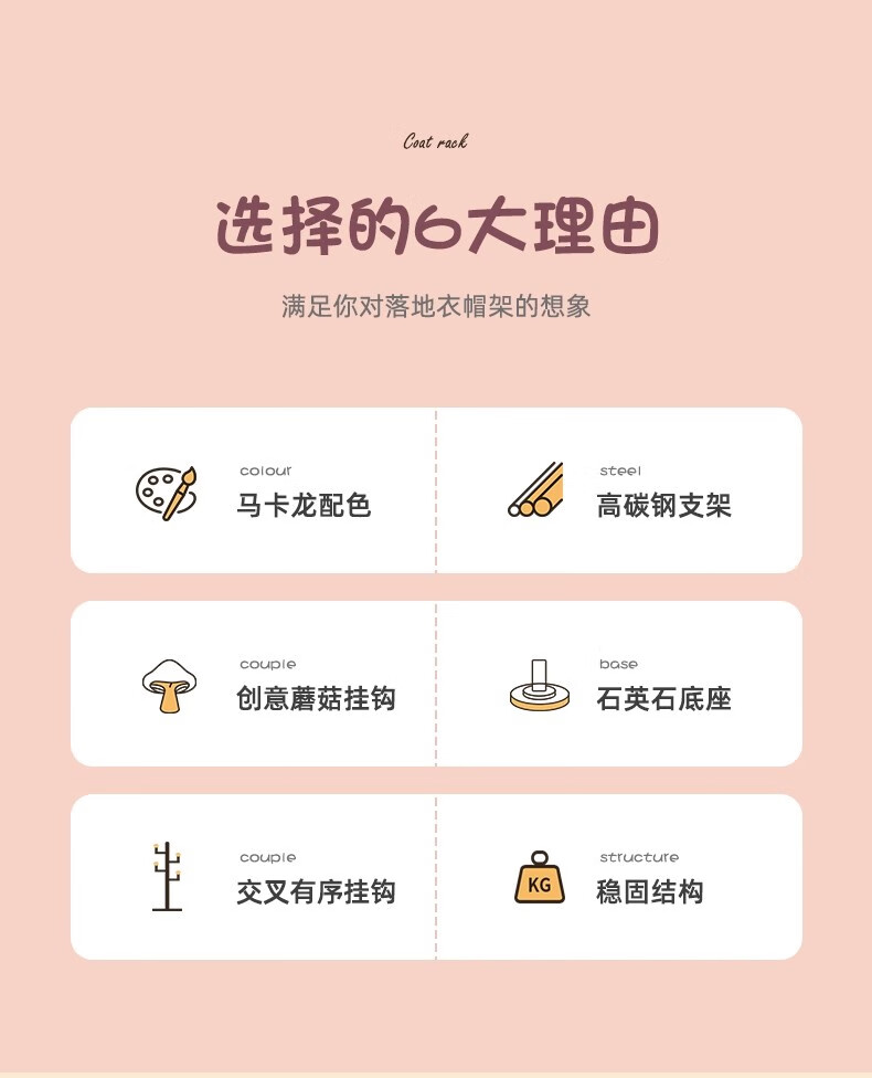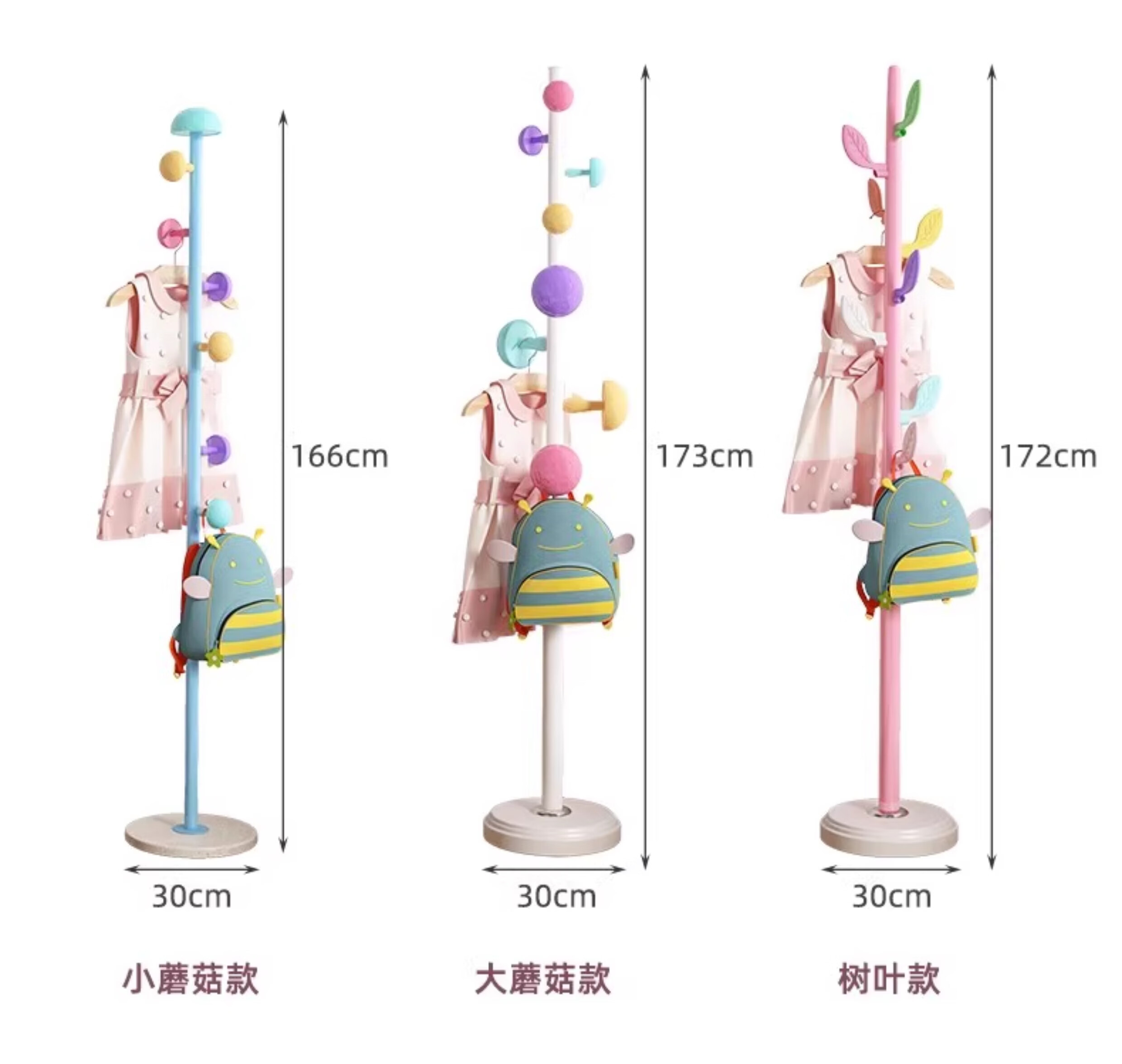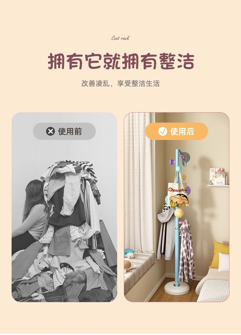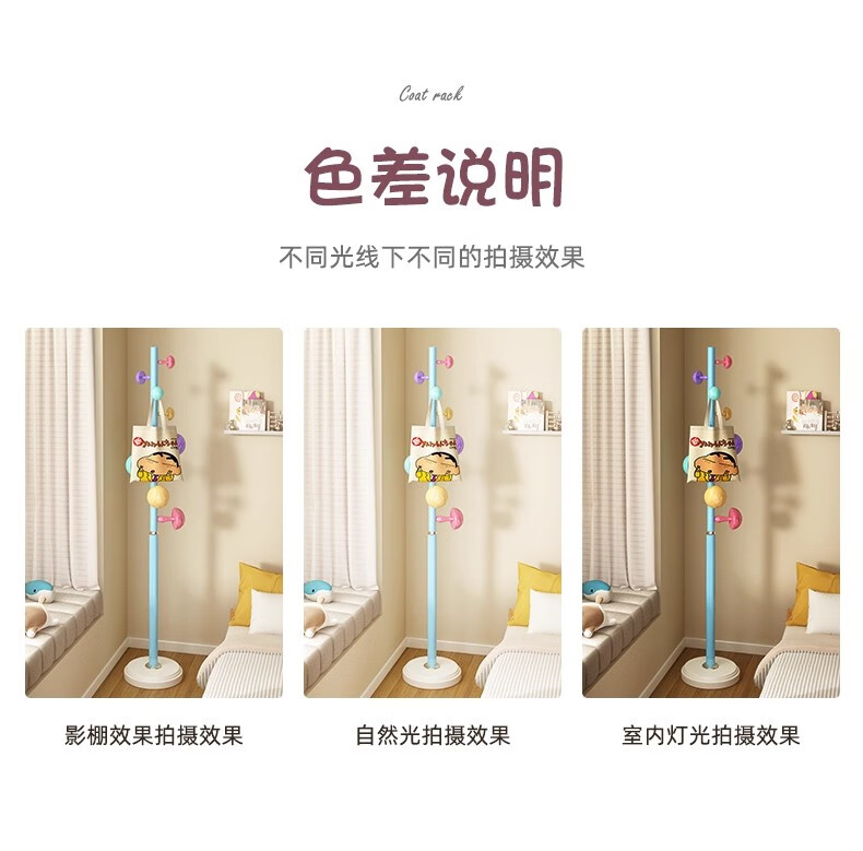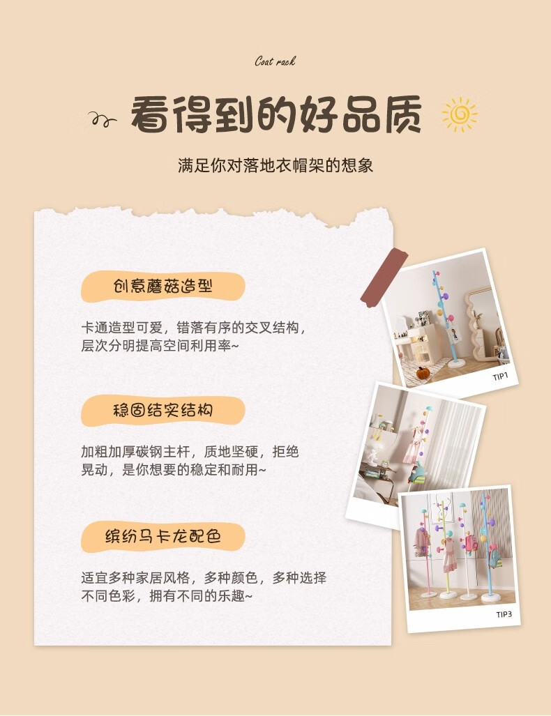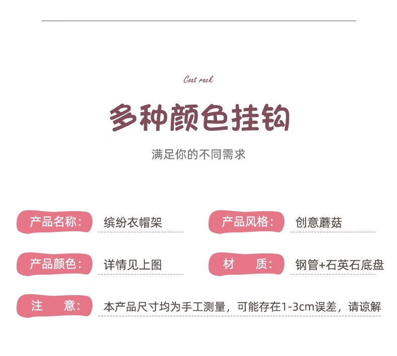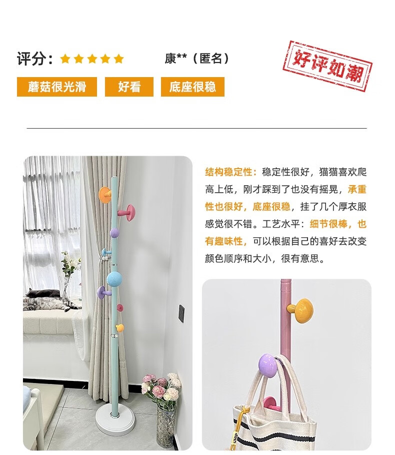 彩色儿童房衣帽架家用卧室衣架落地立式简约网红蘑菇挂衣服收纳架 白色蘑菇衣架 1层