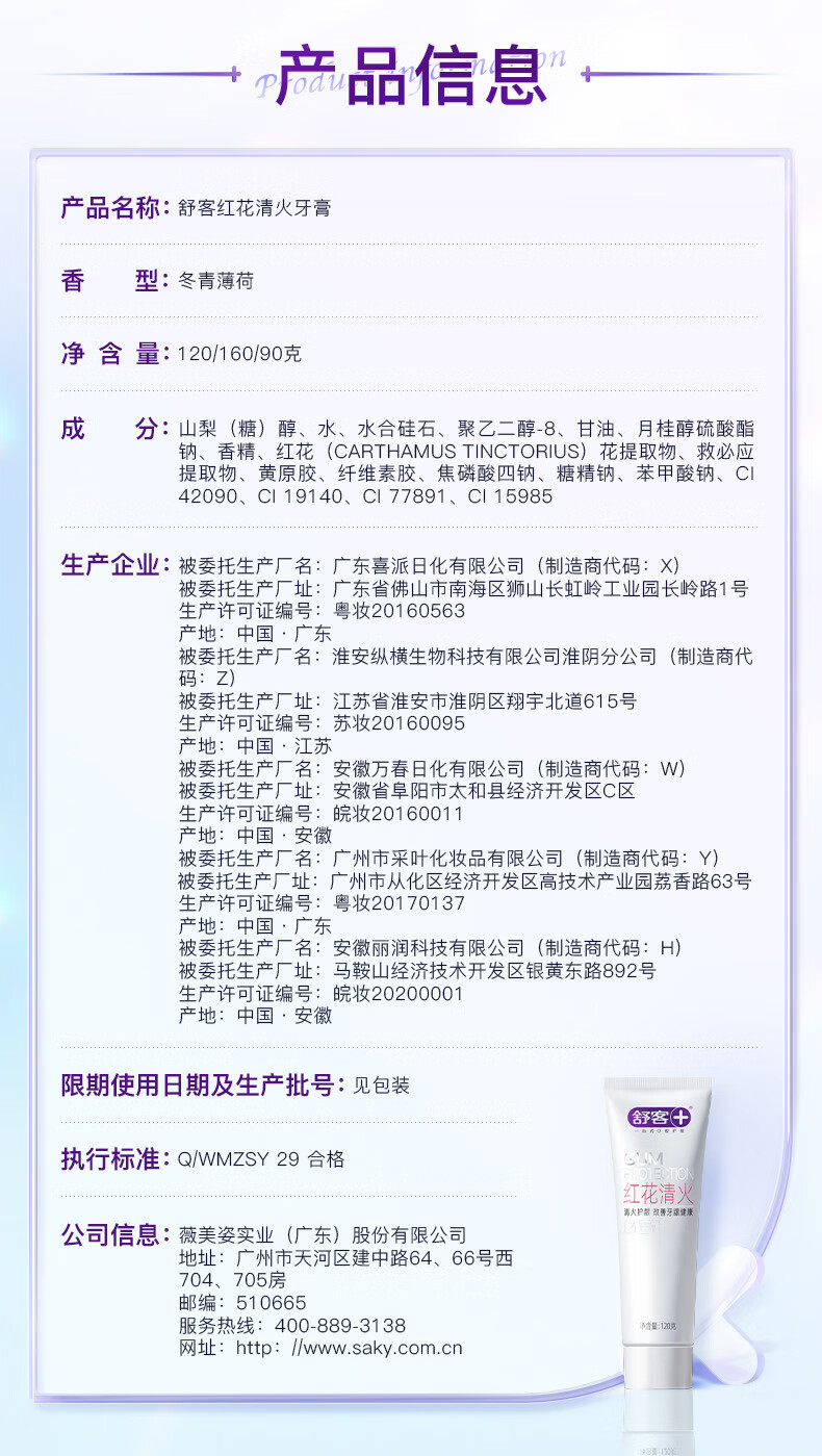 舒客【肖战同款】舒客牙膏含氟美白去黄清新口气女男专用非口臭正品 140g*1支+ 120g*3支