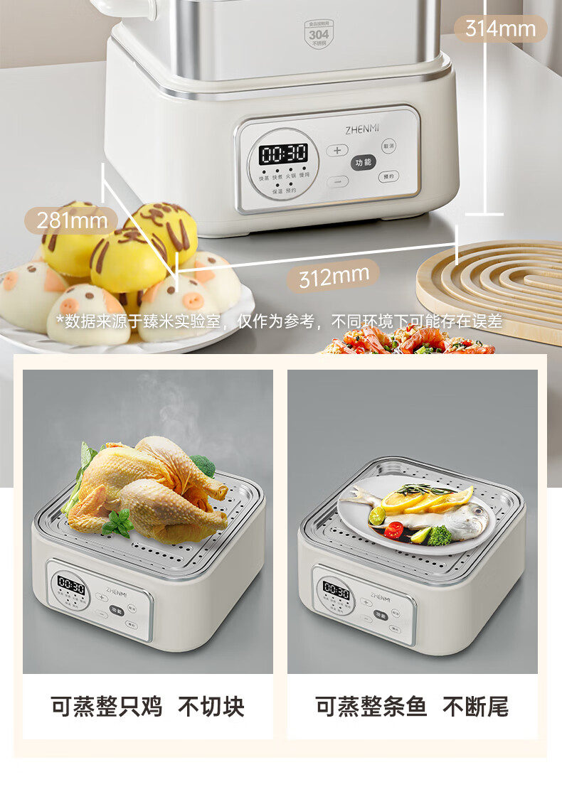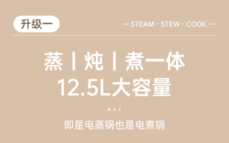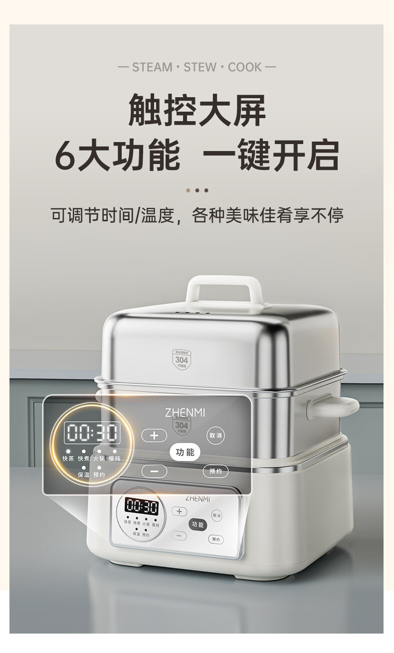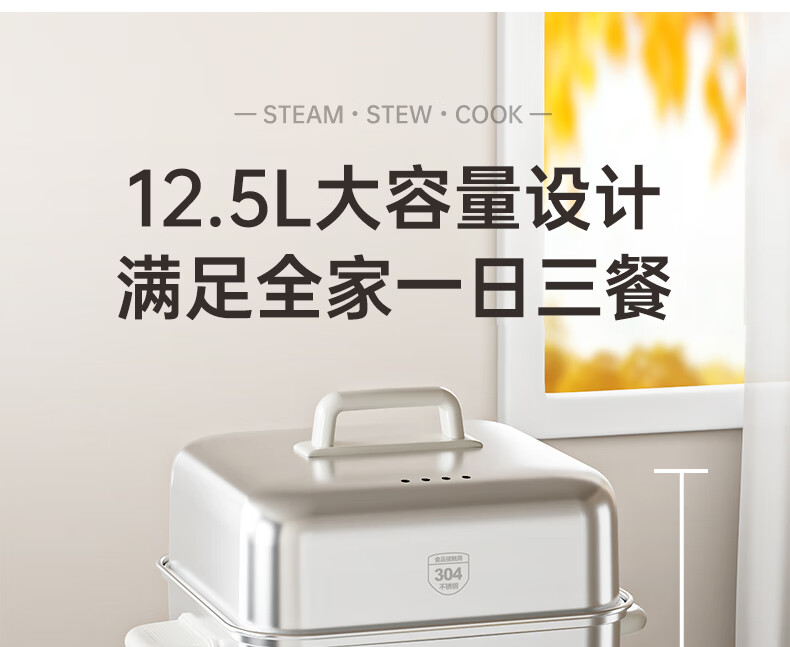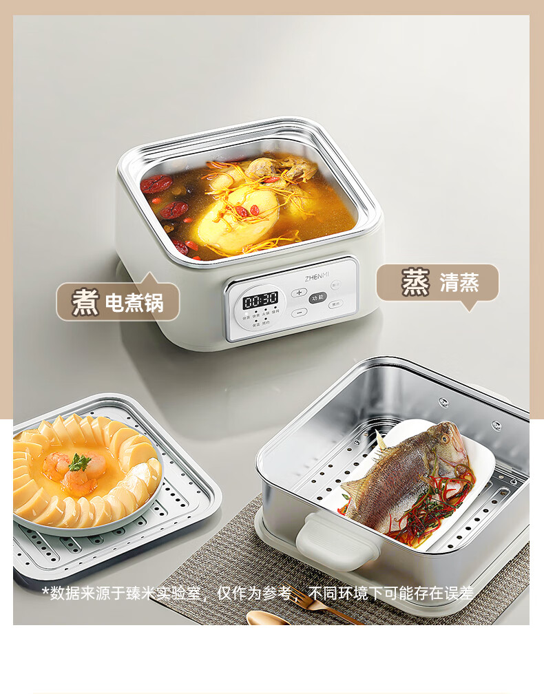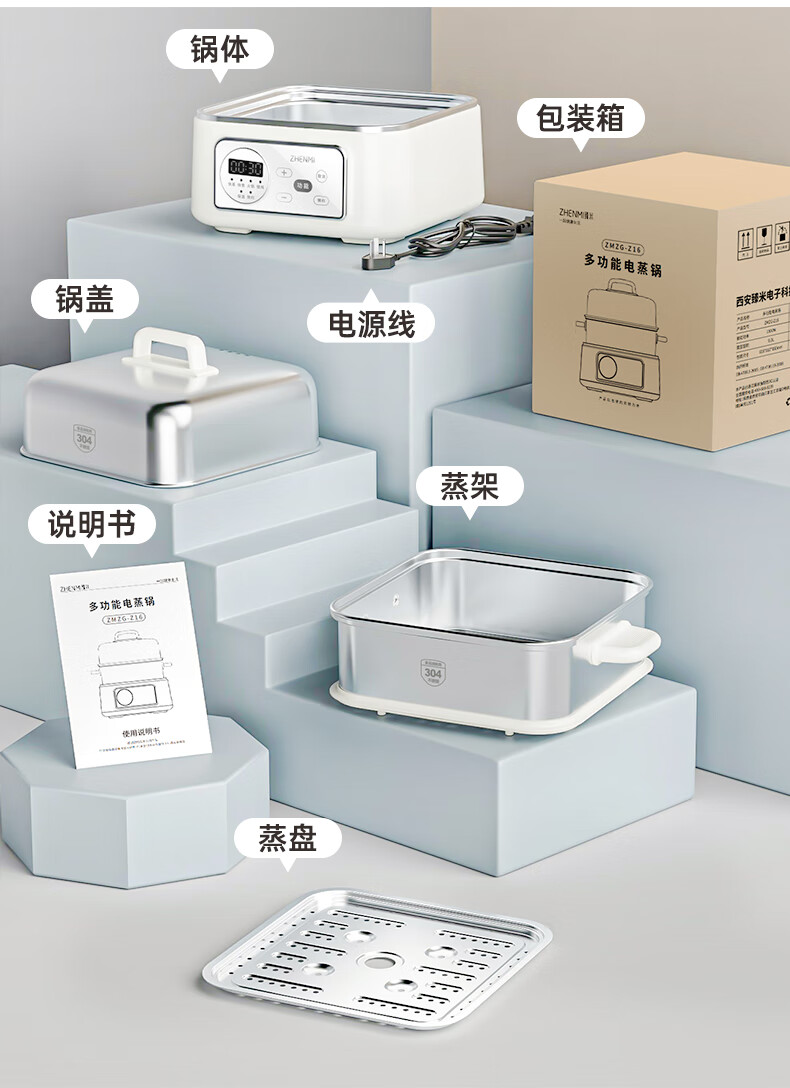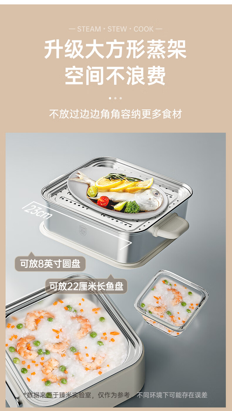 臻米电蒸锅炖蒸煮一体多功能锅双层大容量0涂层304不锈钢材质蒸笼电煮锅