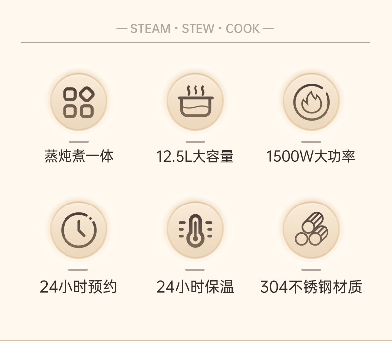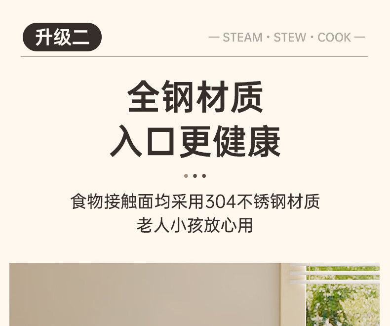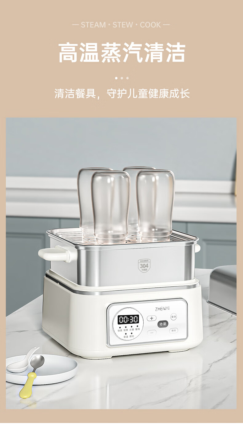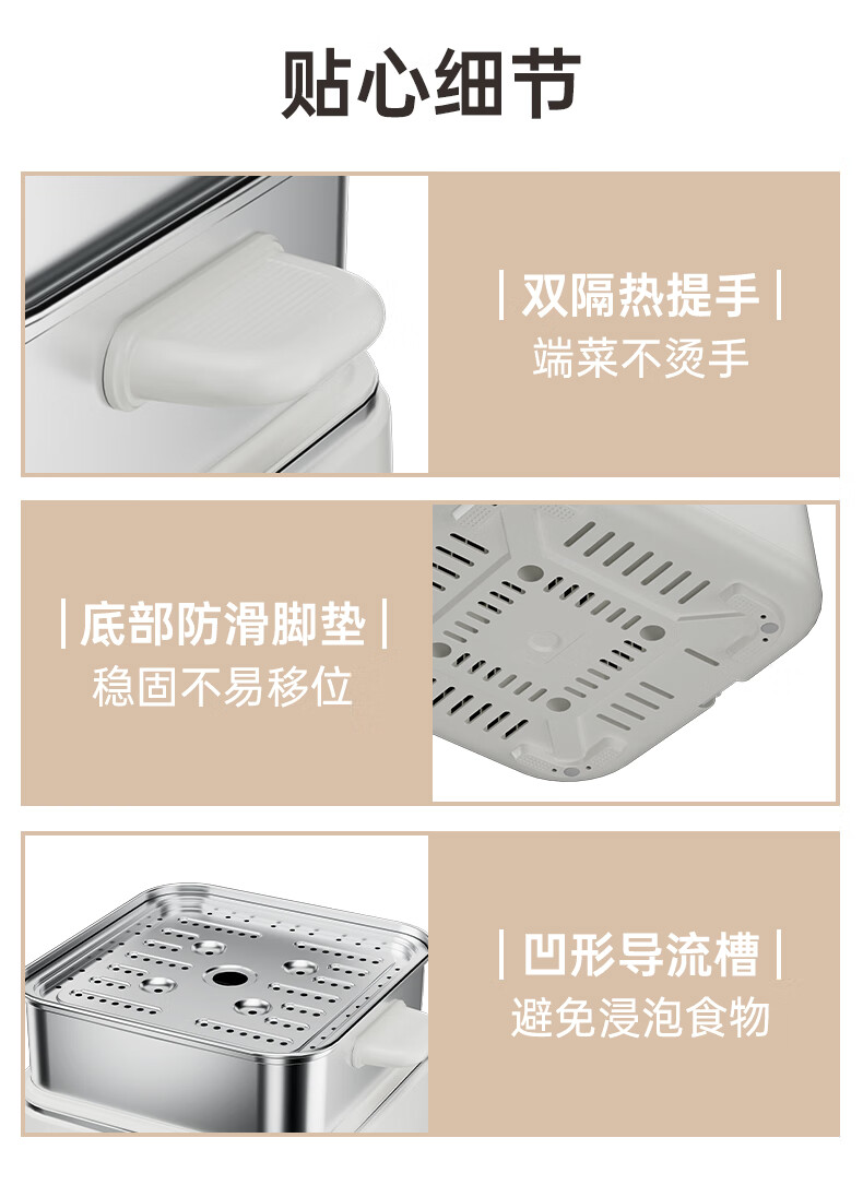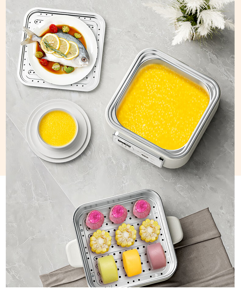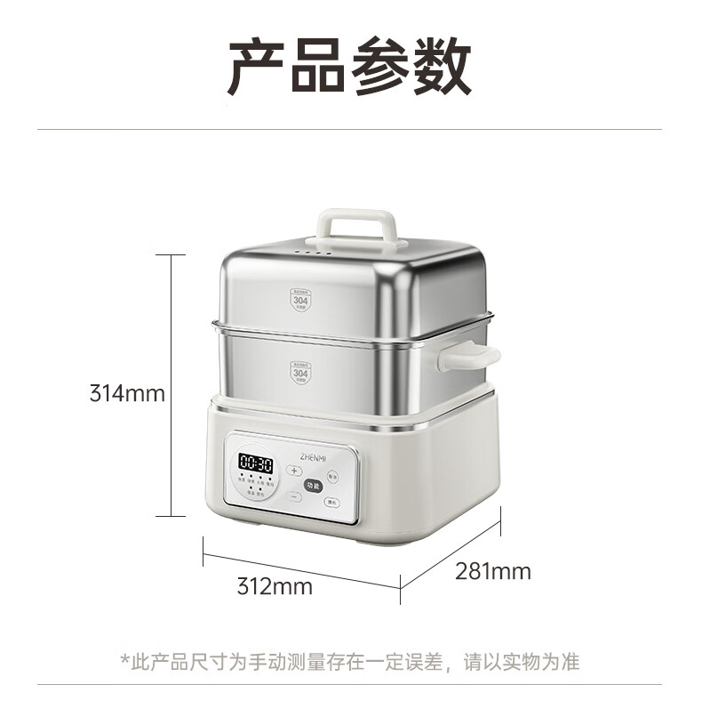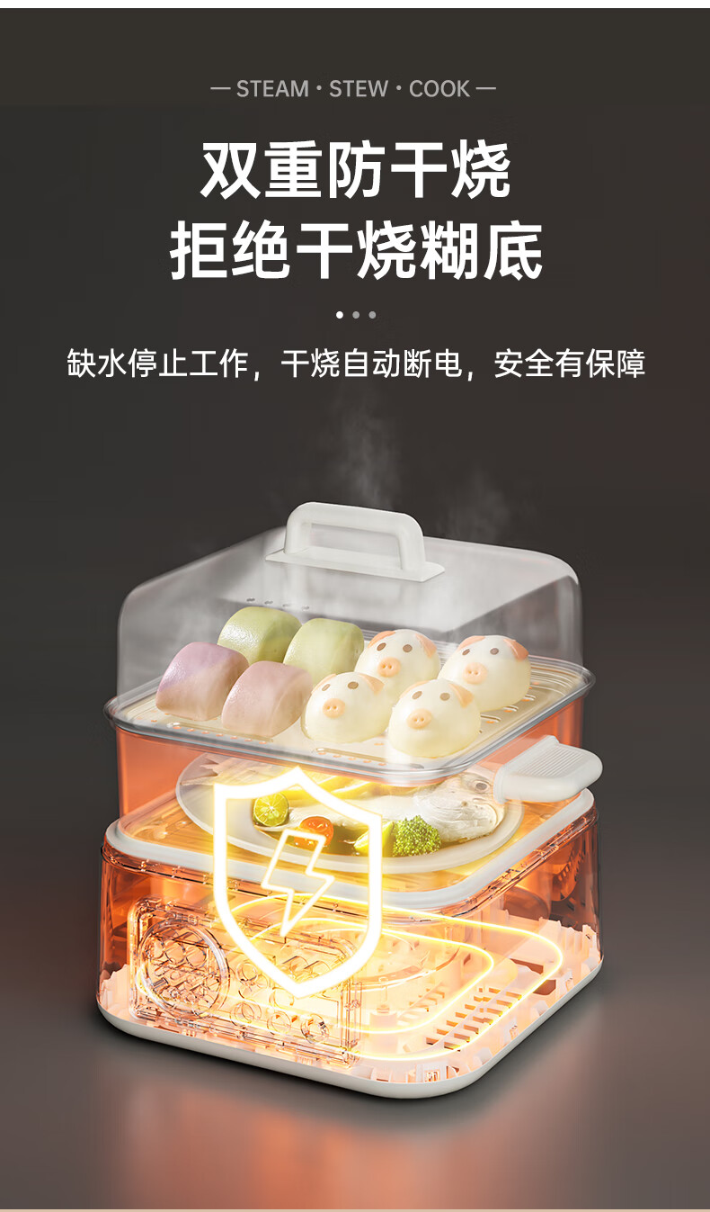 臻米电蒸锅炖蒸煮一体多功能锅双层大容量0涂层304不锈钢材质蒸笼电煮锅