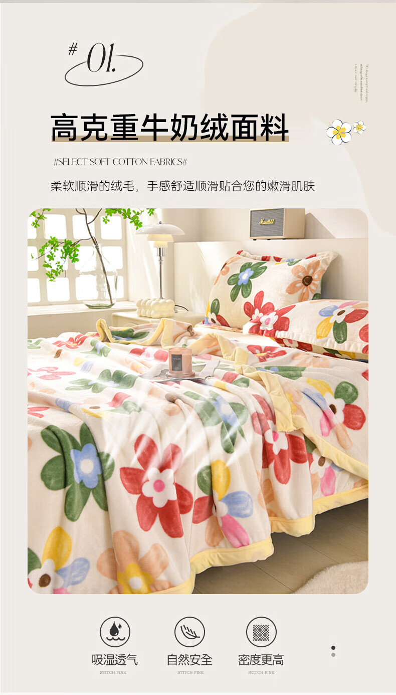 无印良品冬季牛奶绒床上四件套 法兰绒1.8米双面绒床品双人被套200*230cm床单