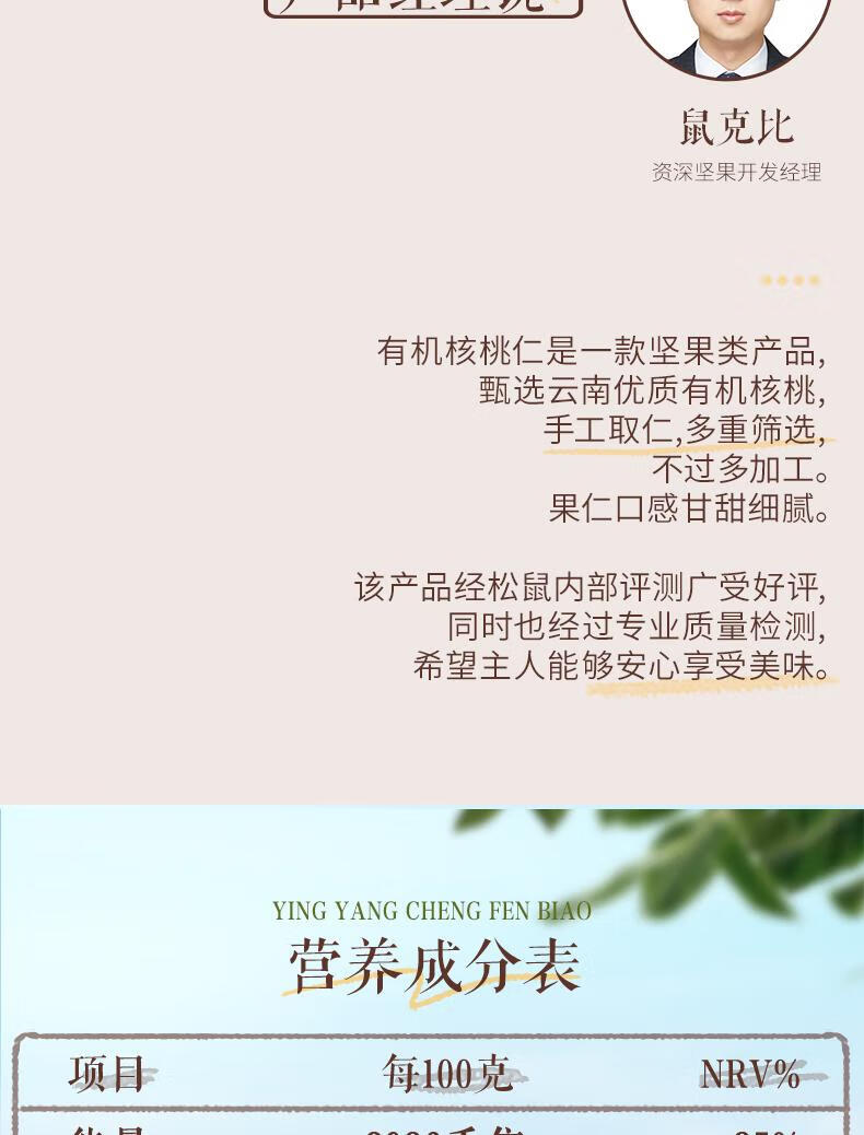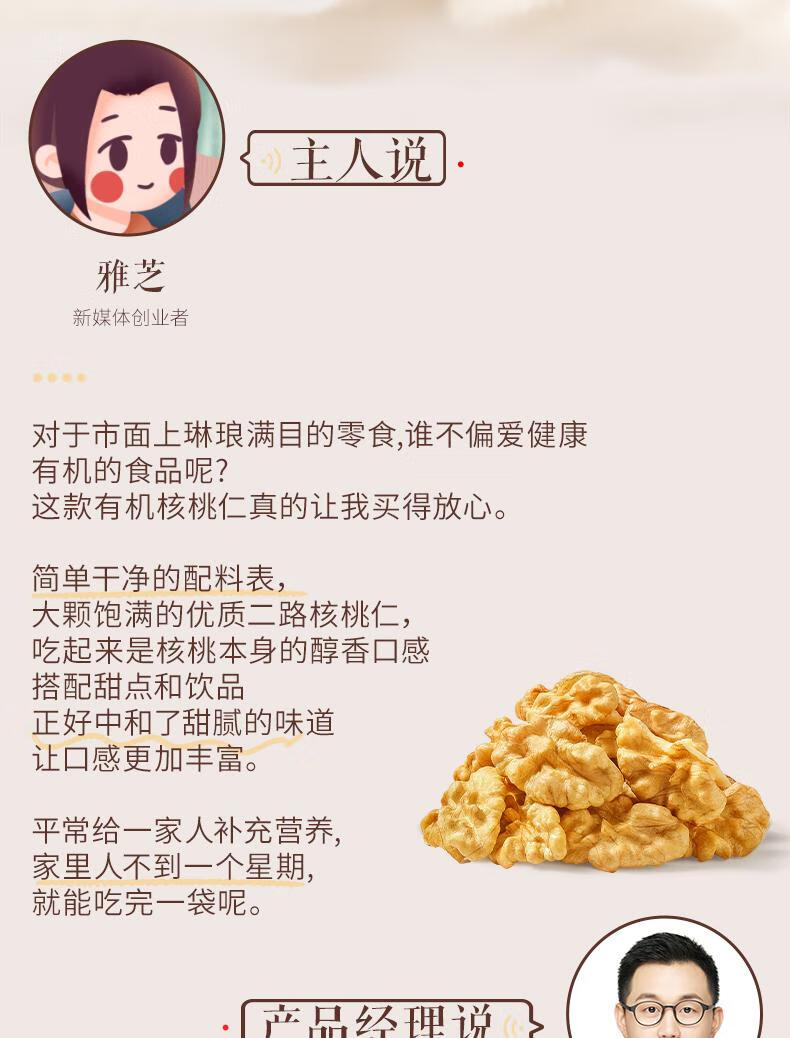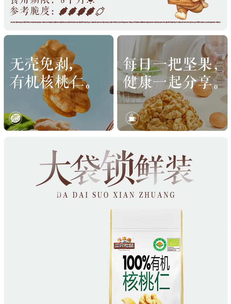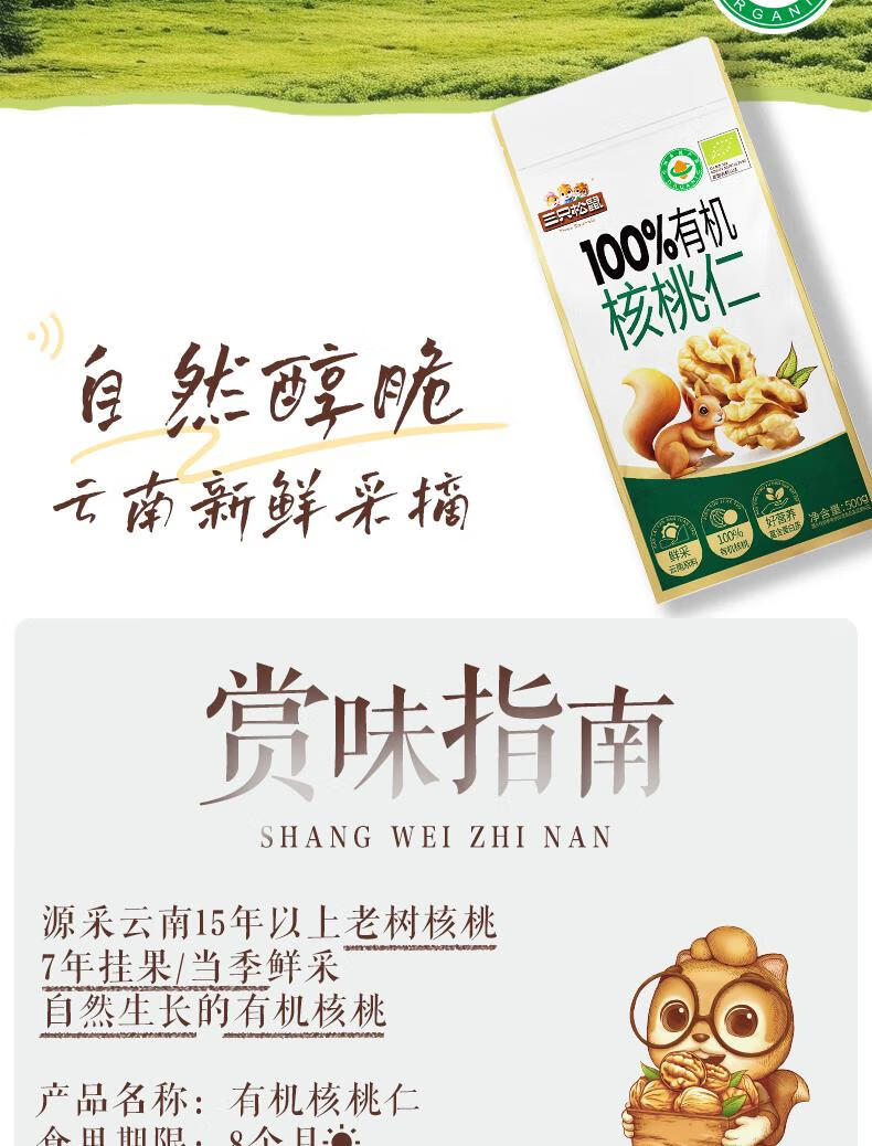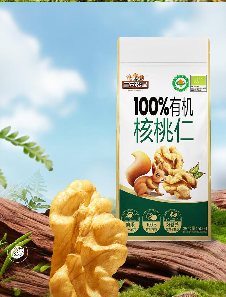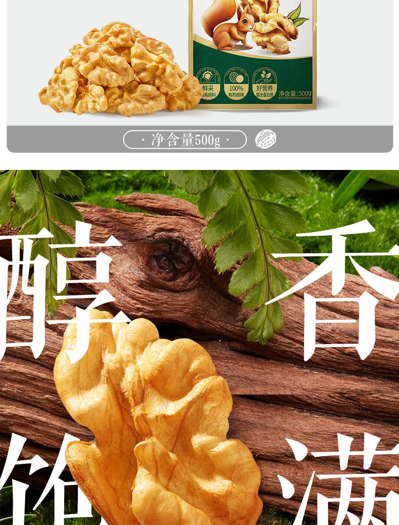 三只松鼠有机核桃仁500g/袋 云南特产每日坚果炒货免剥果仁休闲零食